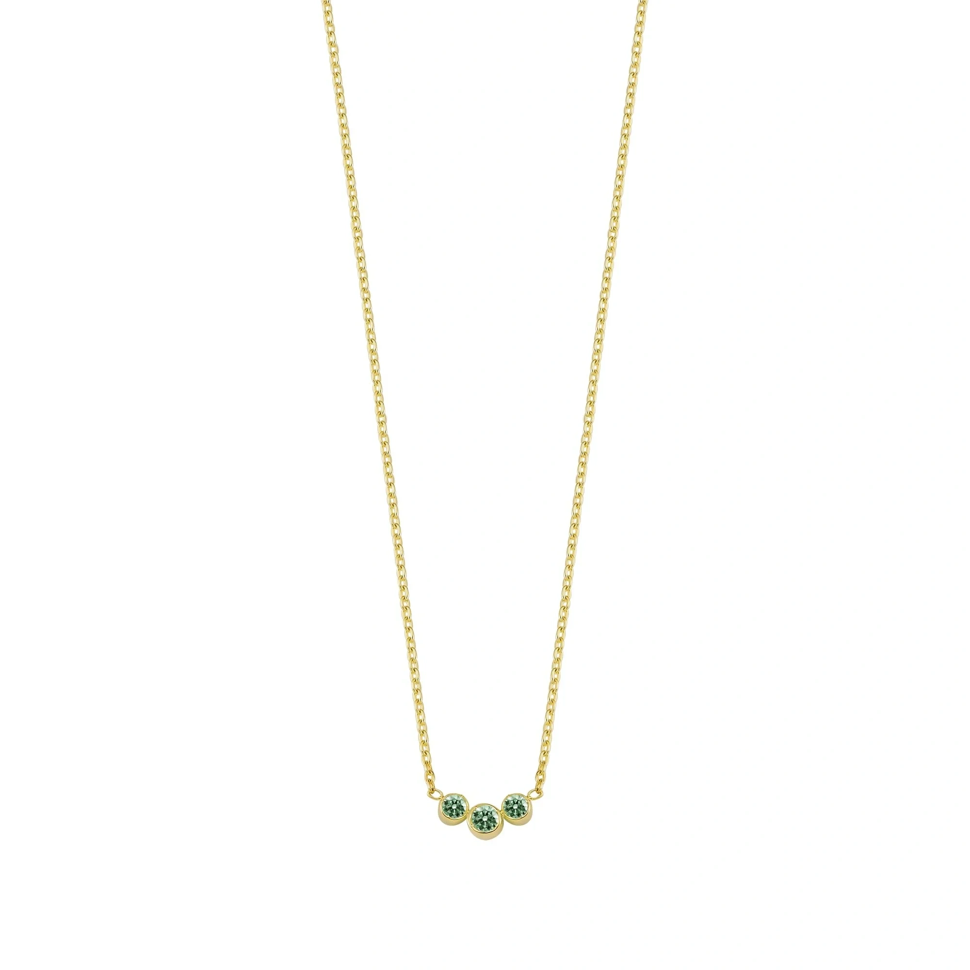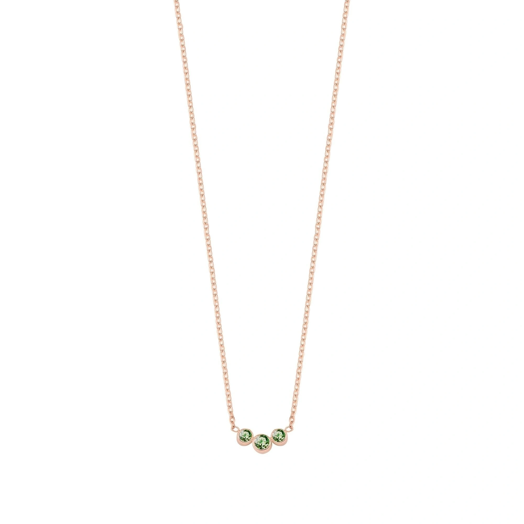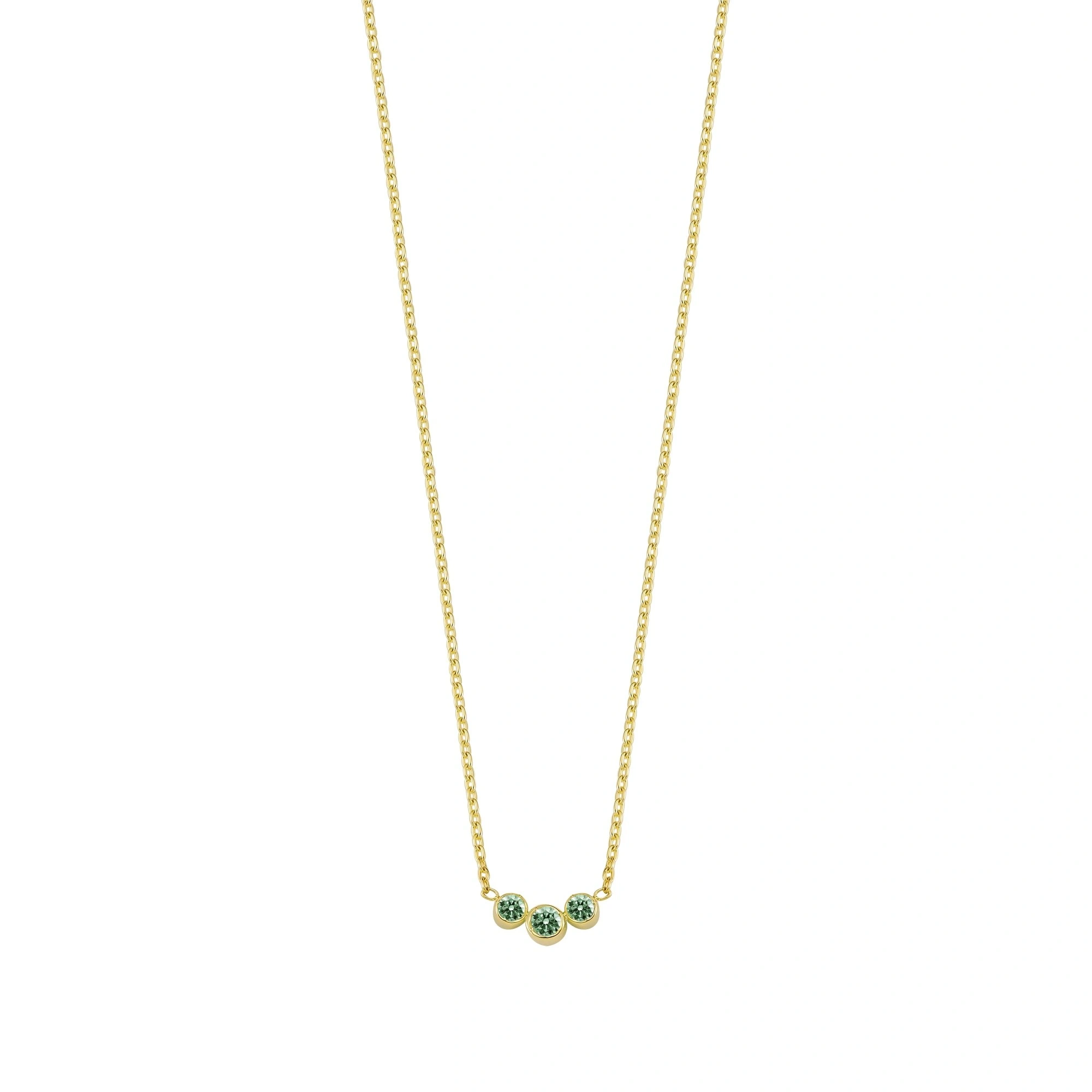 3 Taşlı Yeşil Rengarenk Altın Kolye