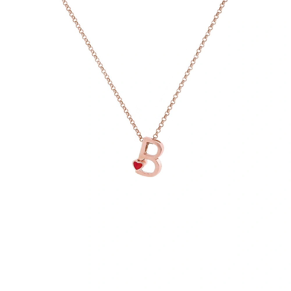 B Harfi Kalpli Gümüş Kolye