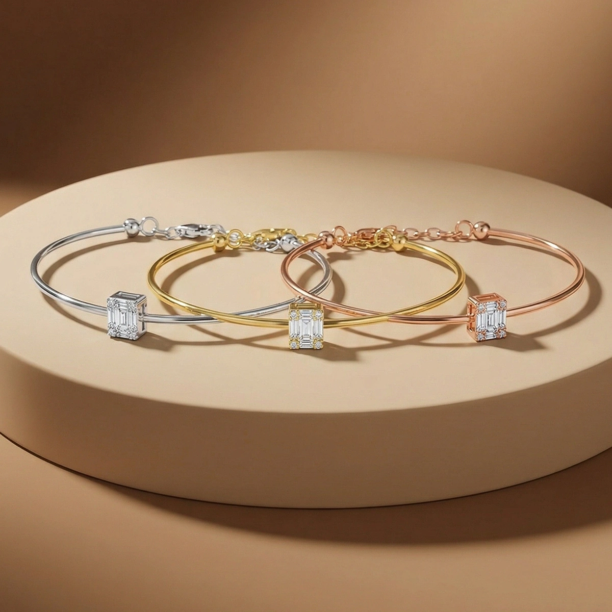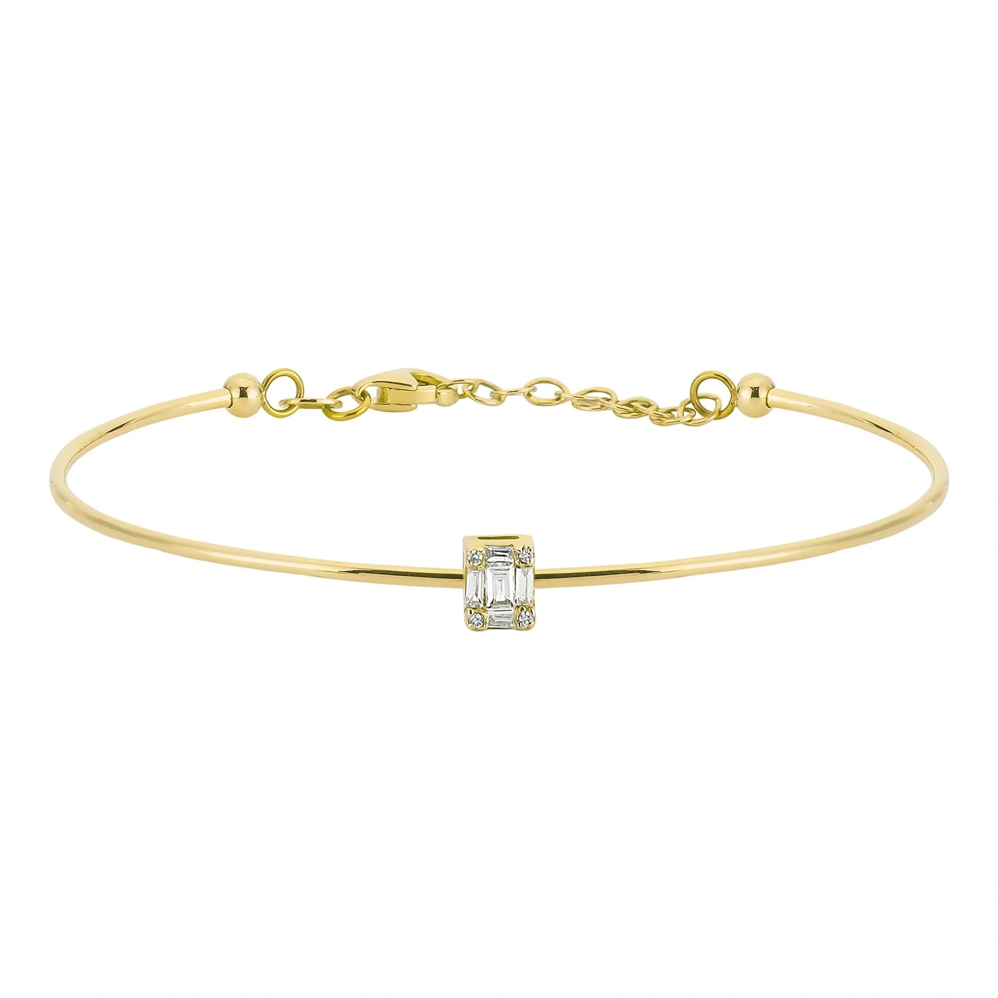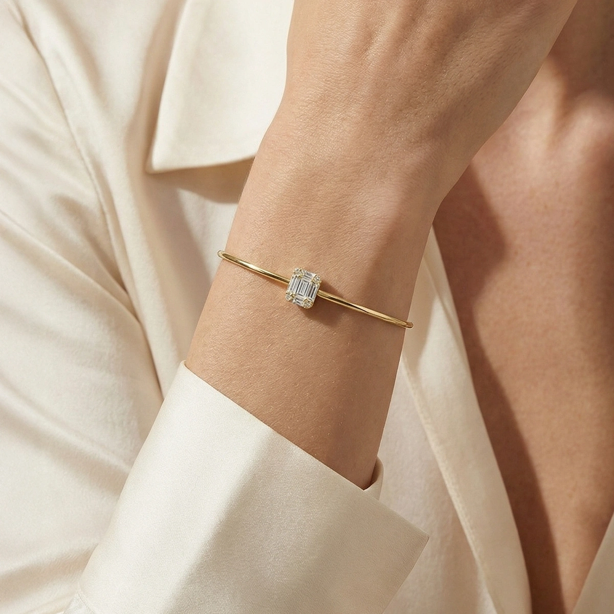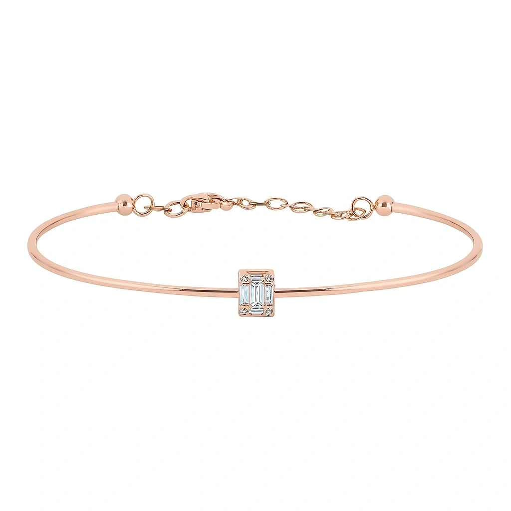 Baget taşların estetik uyumu ile modern çizgileri bir araya getiren bu bileklik, sade ama etkileyici detaylarla stilinizi tamamlar. Kaliteli işçiliği sayesinde uzun süreli kullanım için tasarlanmış olup, diğer takılarla kombinlendiğinde de zarif bir bütünlük oluşturur.