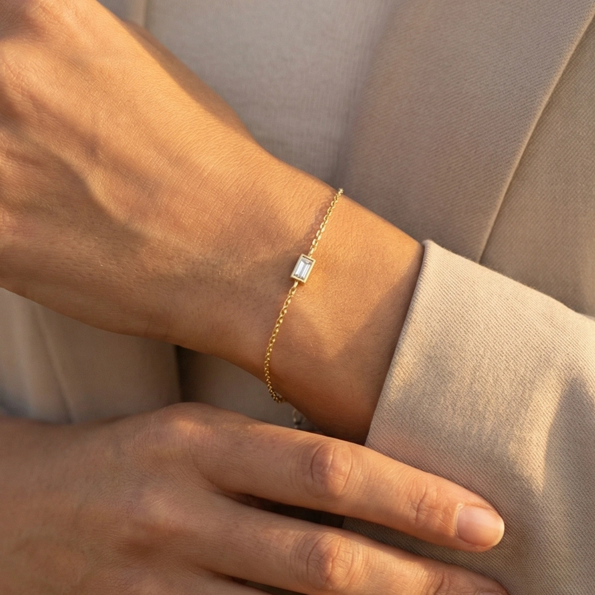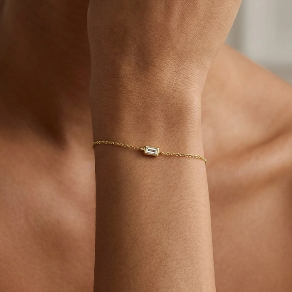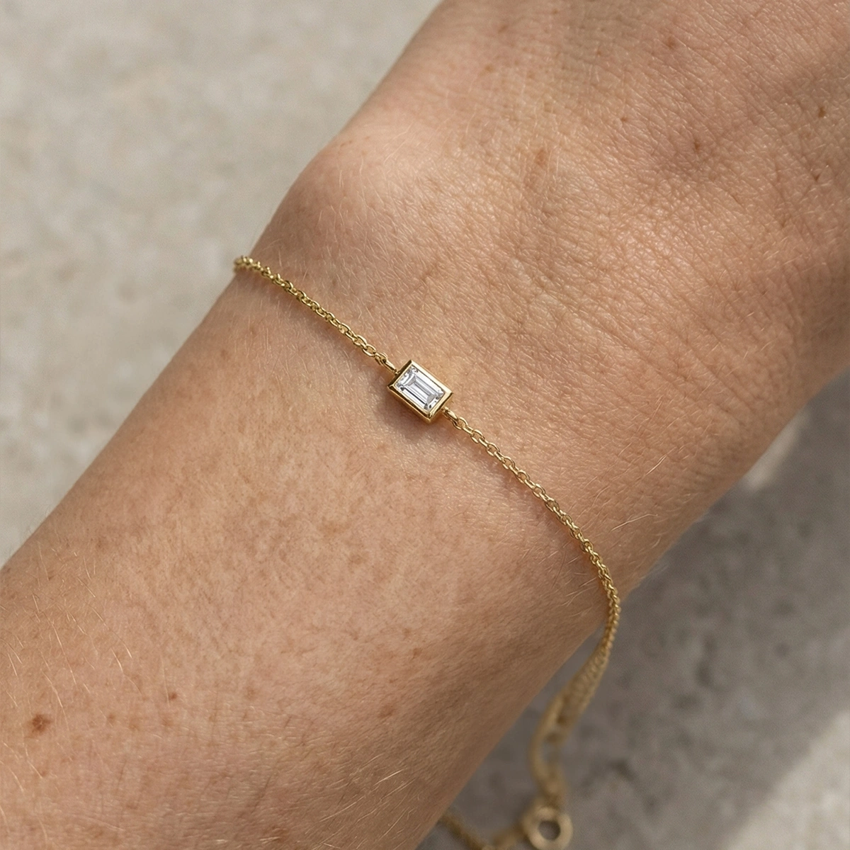 Parlak baget taş detayları, bileğinizde sade ama etkileyici bir ışıltı yaratır ve diğer takılarla kombinlendiğinde şıklığınızı güçlendirir. Kaliteli işçilikle üretilmiş bu bileklik, uzun süre kullanım için uygun olup her stil ile rahatça uyum sağlar.