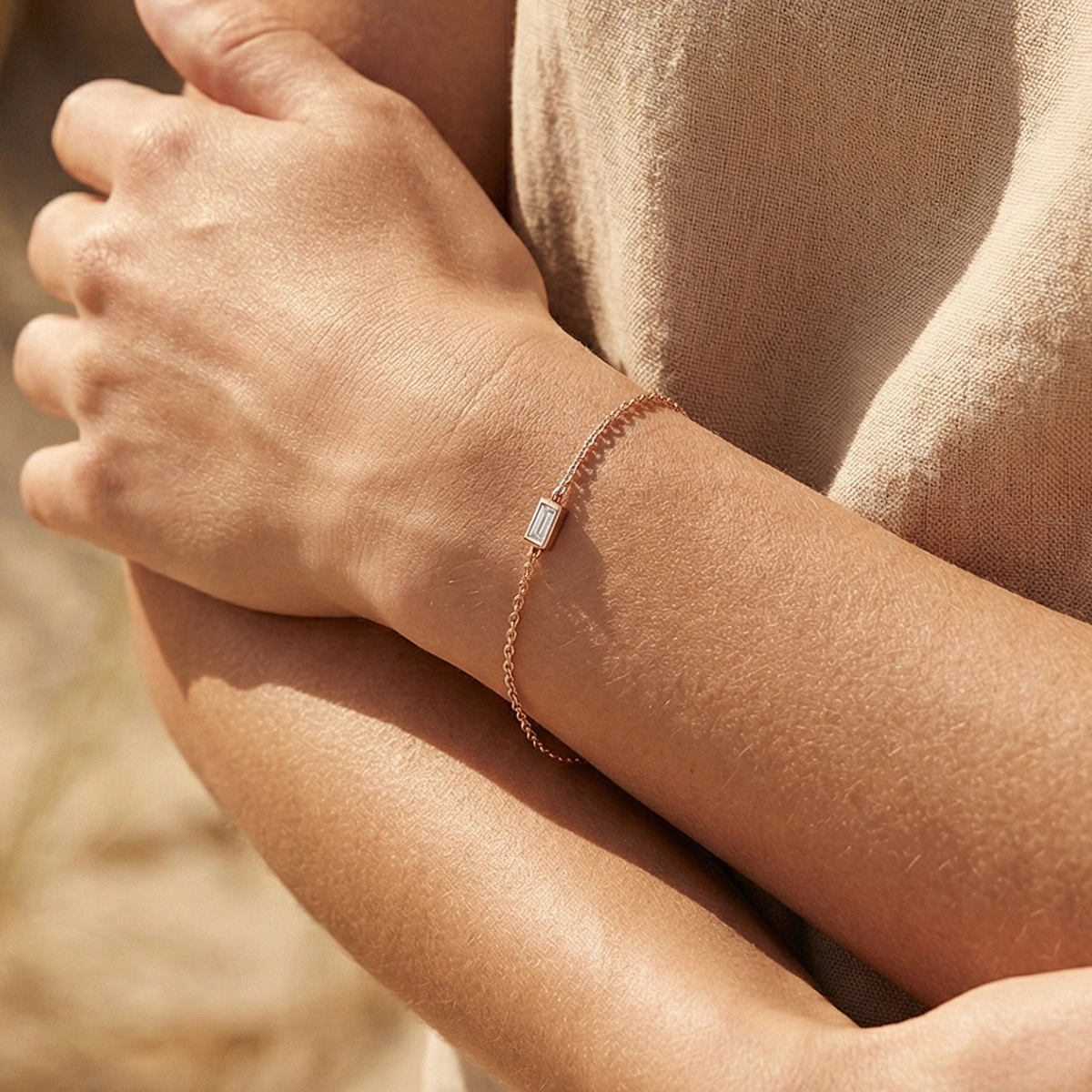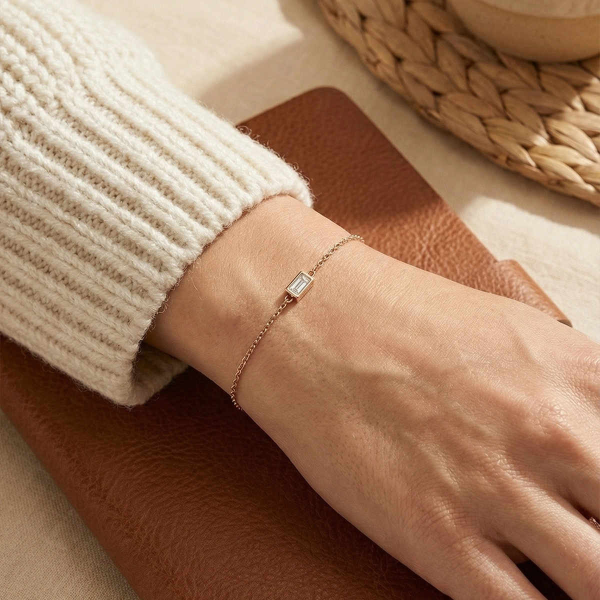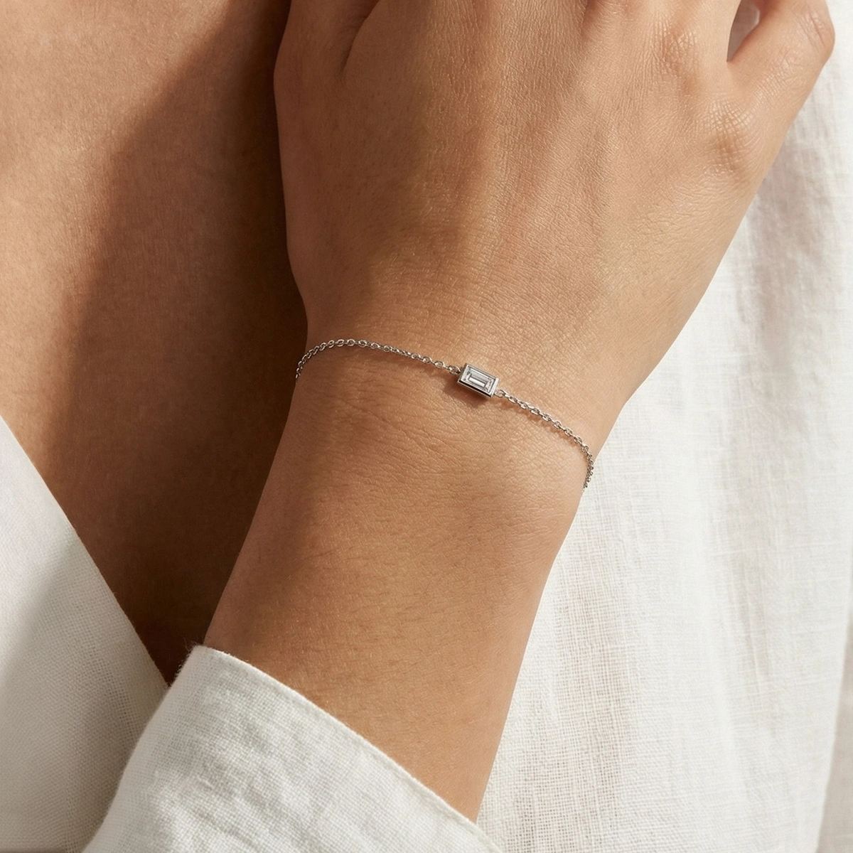 Parlak baget taş detayları, bileğinizde sade ama etkileyici bir ışıltı yaratır ve diğer takılarla kombinlendiğinde şıklığınızı güçlendirir. Kaliteli işçilikle üretilmiş bu bileklik, uzun süre kullanım için uygun olup her stil ile rahatça uyum sağlar.