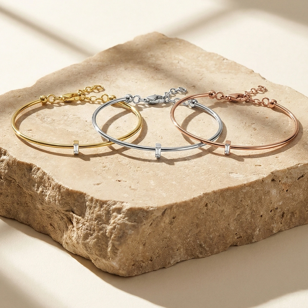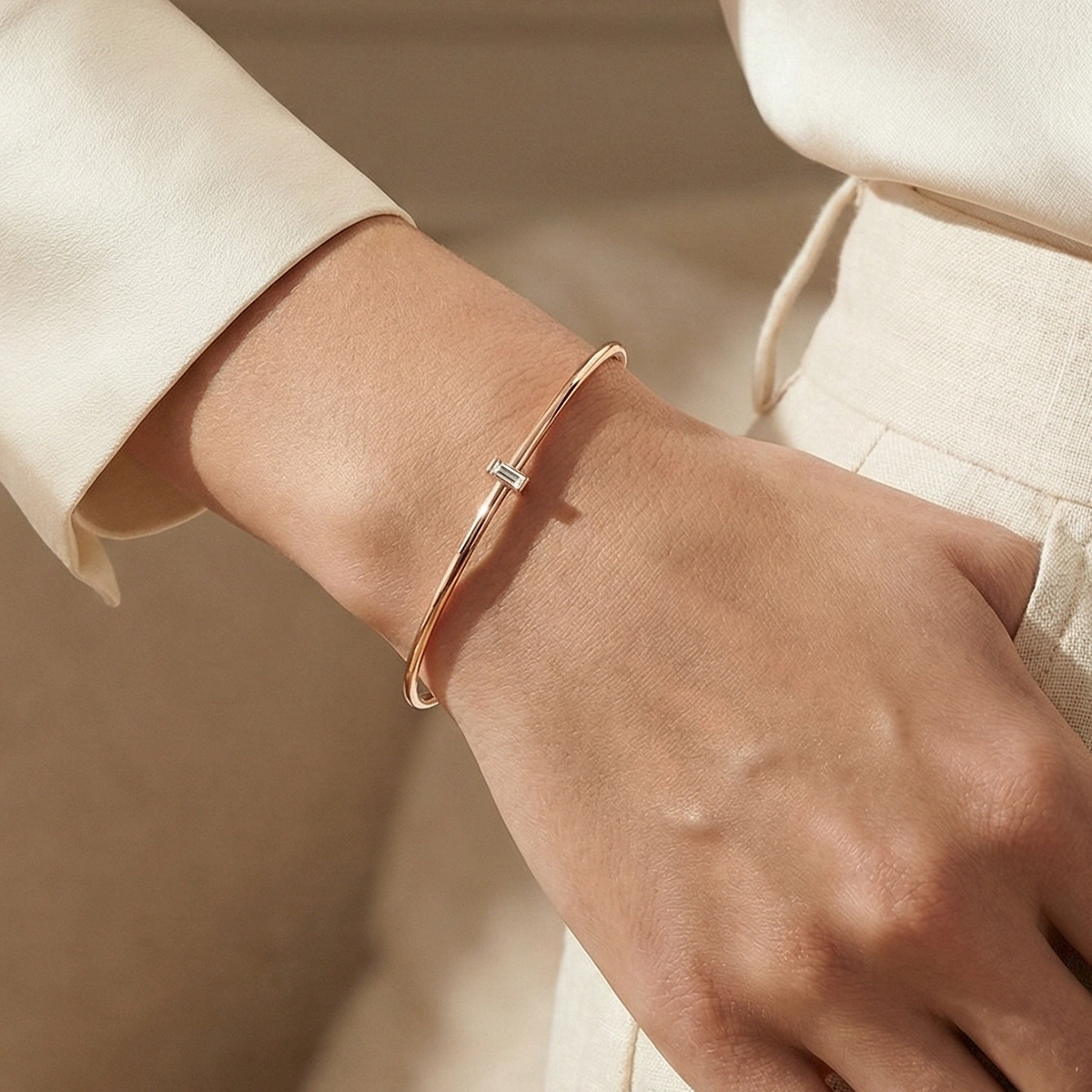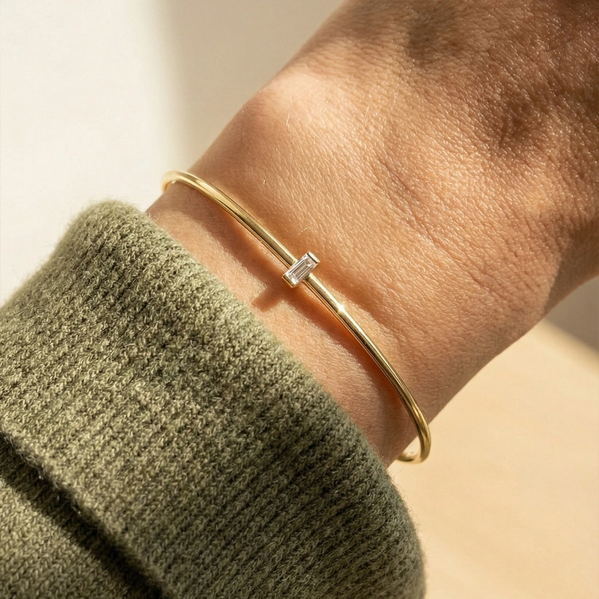 Zarafetin incelikle buluştuğu Baget Tek Taşlı Zarif Altın Bileklik, minimal estetiği ve göz alıcı taş detayıyla stilinizi zarif bir şekilde tamamlar. İnce formu ve özenle seçilmiş tek taşlı dizaynı sayesinde bileğinizde sade ama etkileyici bir ışıltı yaratır. Hem günlük kombinlerinize hem de özel organizasyonlara modern bir dokunuş katar.