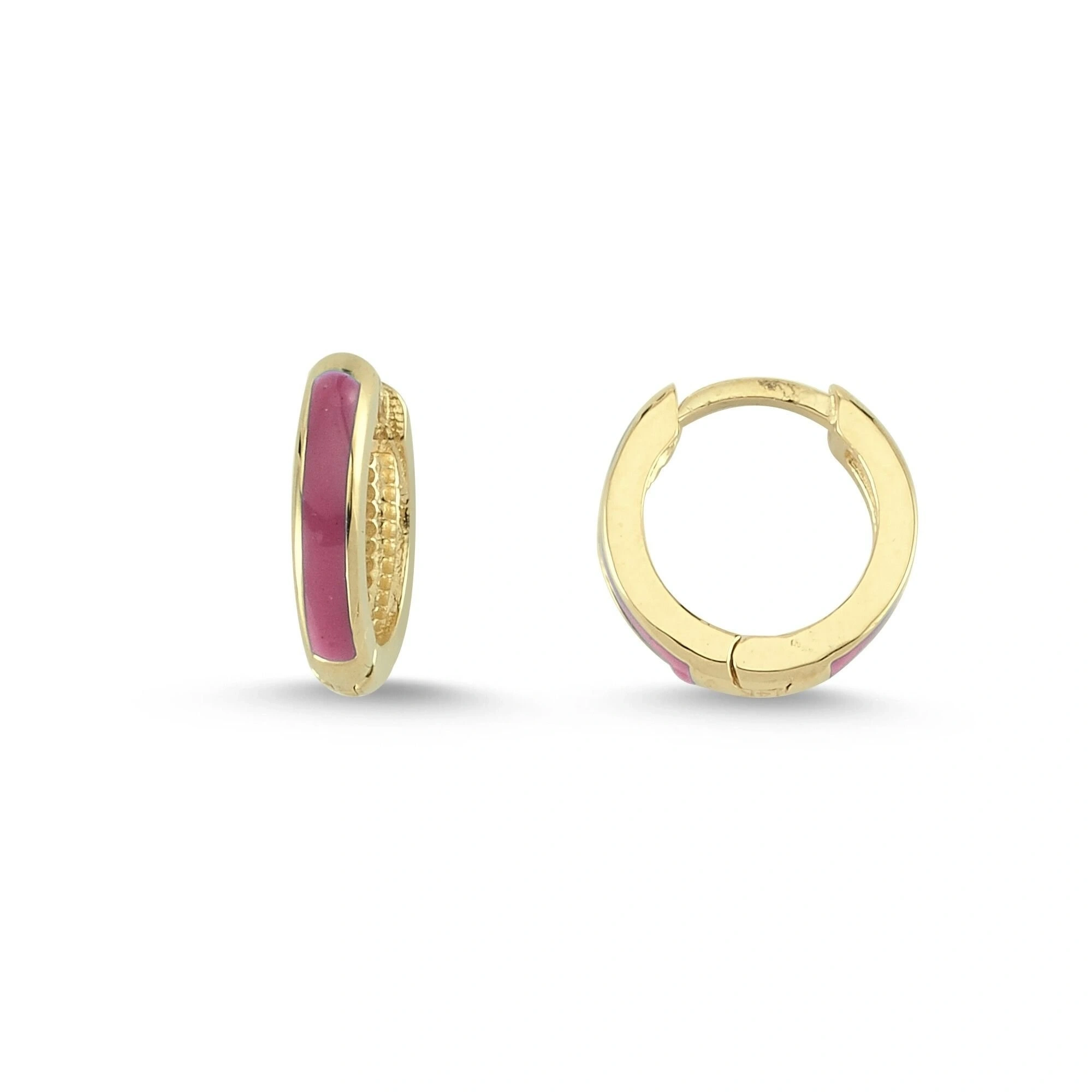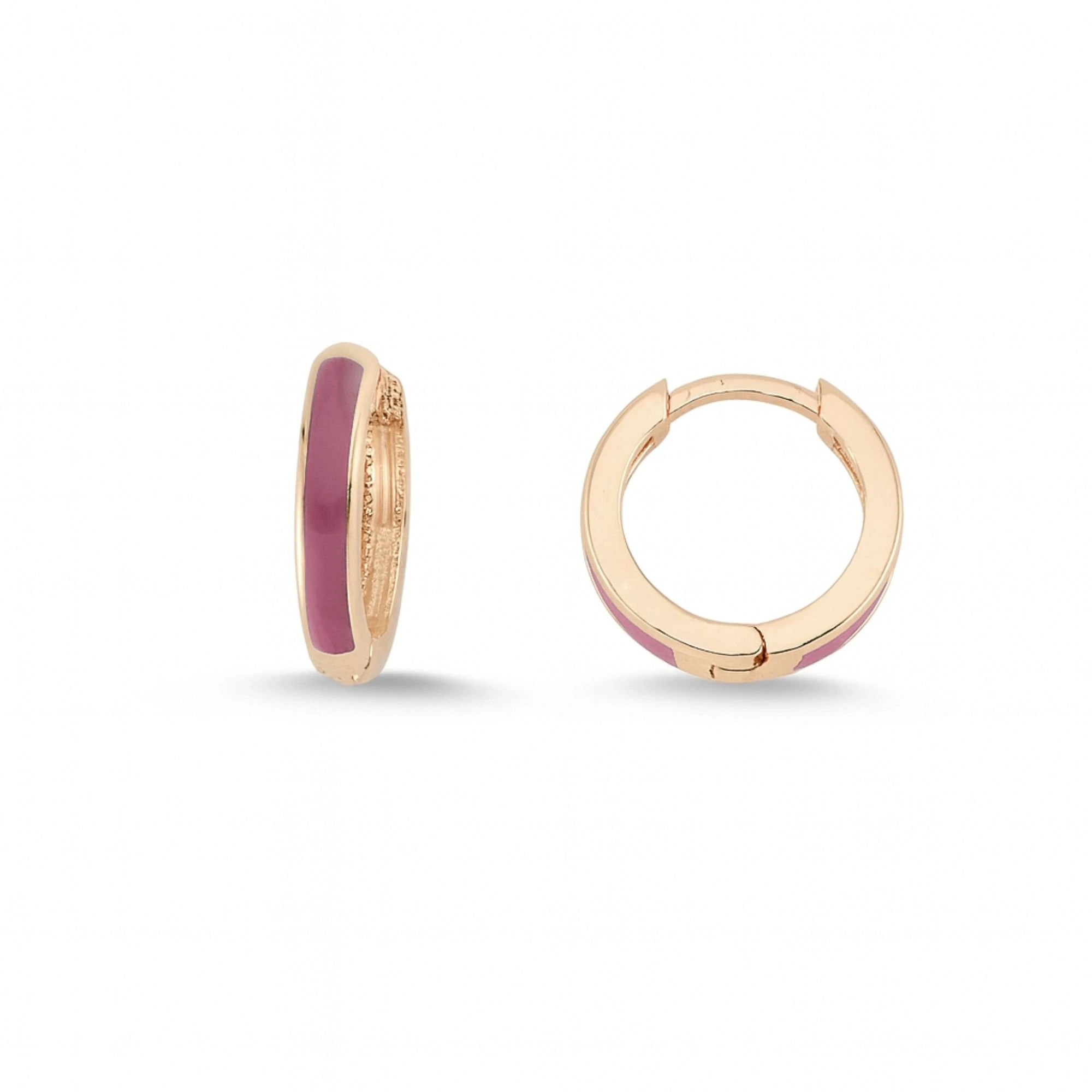 Bordo Mineli Halka Altın Küpe