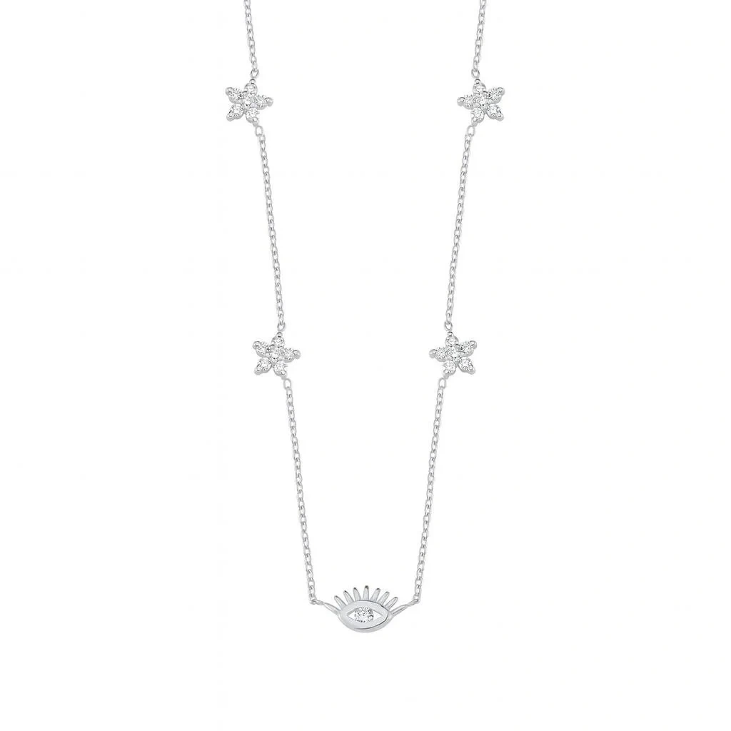 Çiçek Motifi Zincirli Göz Altın Kolye