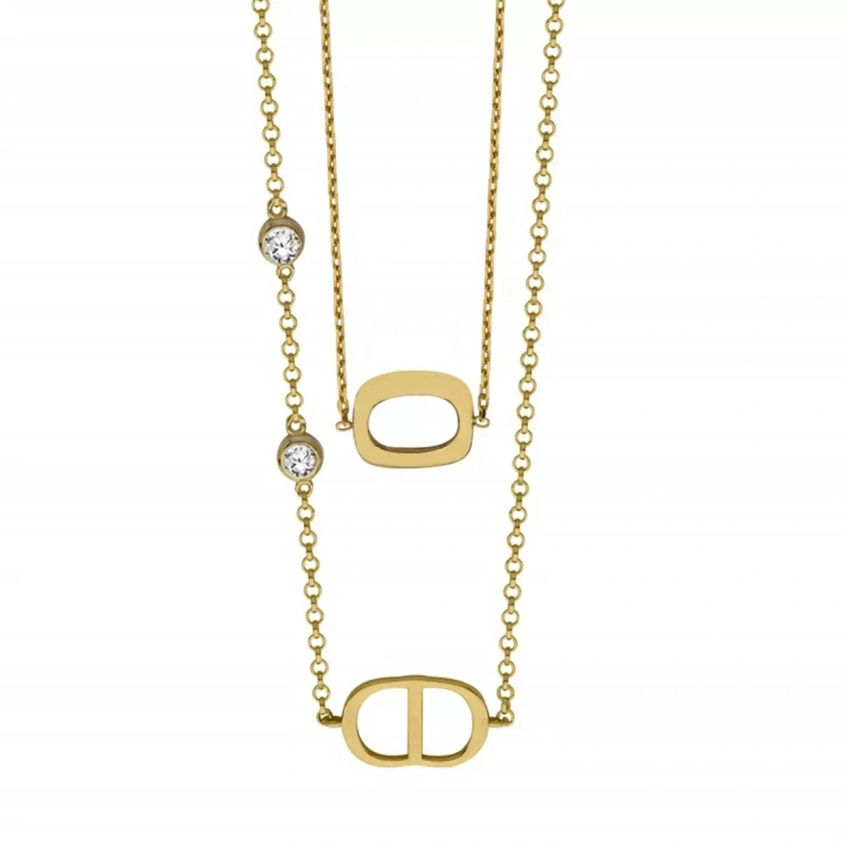 Çift Sıra Taşlı ve Asimetrik Ara Parçalı Dior Model Gümüş Kolye