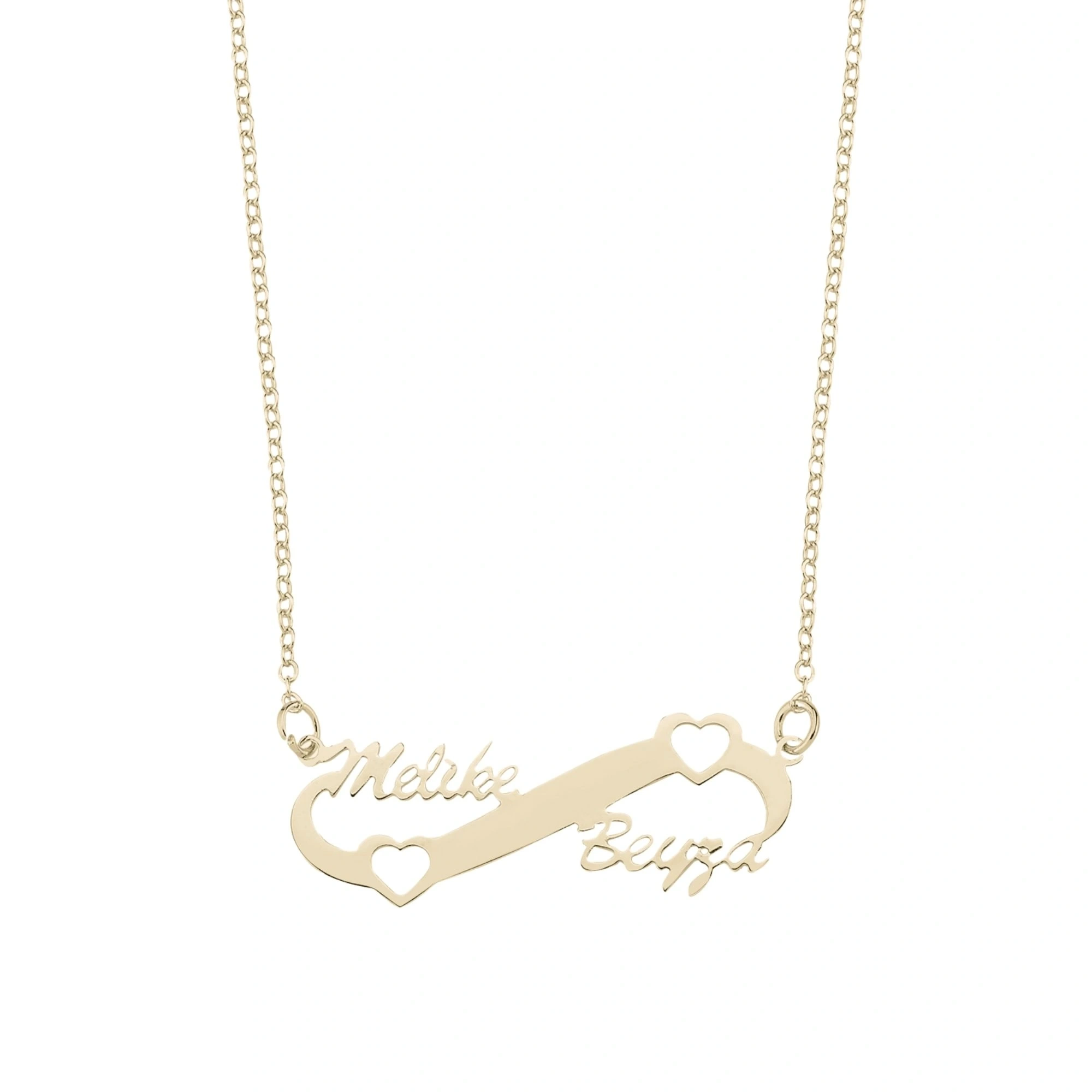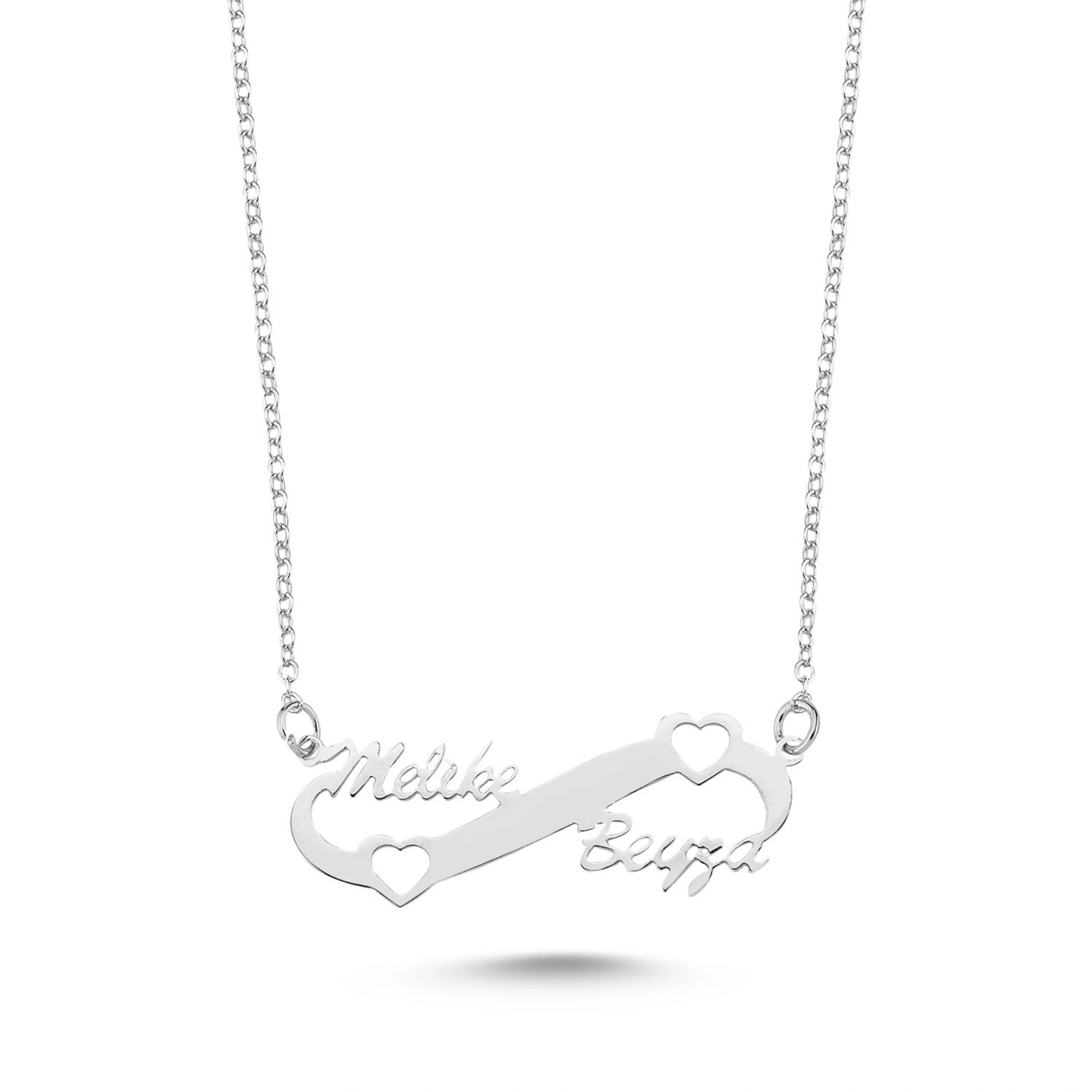 • Tasarım: Lazer kesim sonsuzluk ve kalp sembollü isim kolye
