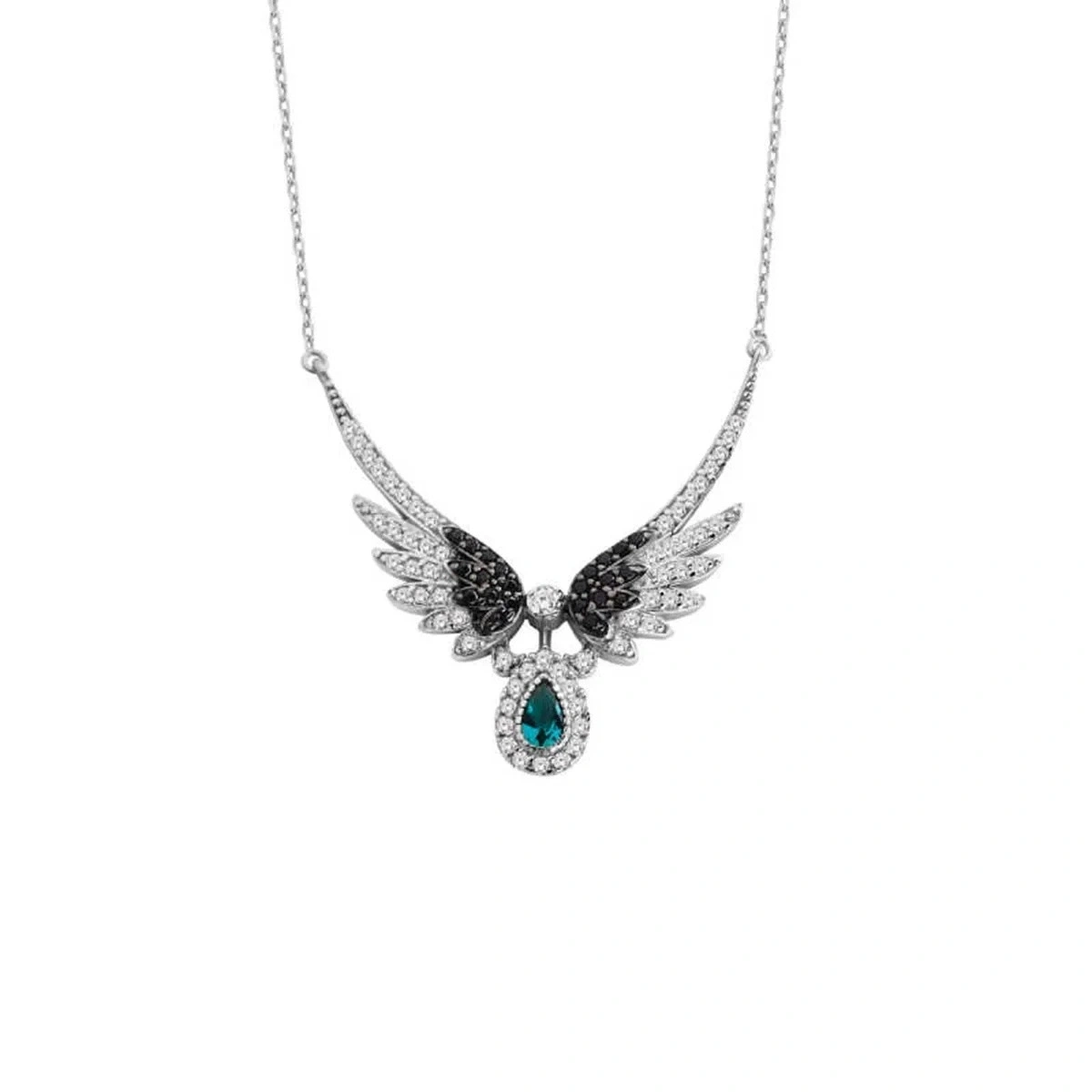 Kanat figürü özgürlüğü, korumayı ve ruhsal yükselişi simgelerken taş detayları kolyeye zarif bir ışıltı katar. Estetik görünümü ve sembolik anlamı bir araya getiren bu özel tasarım, stilinizi tamamlayan modern bir takı olmasının yanı sıra sevdiklerinize verebileceğiniz anlamlı bir hediye seçeneği sunar.