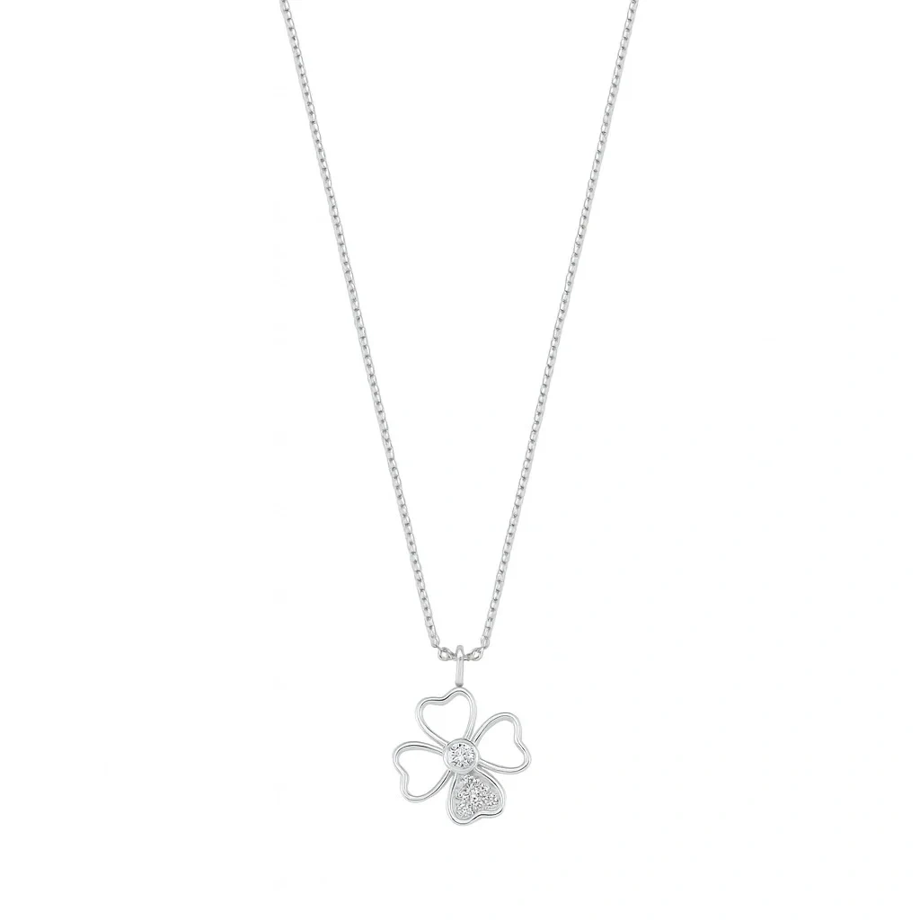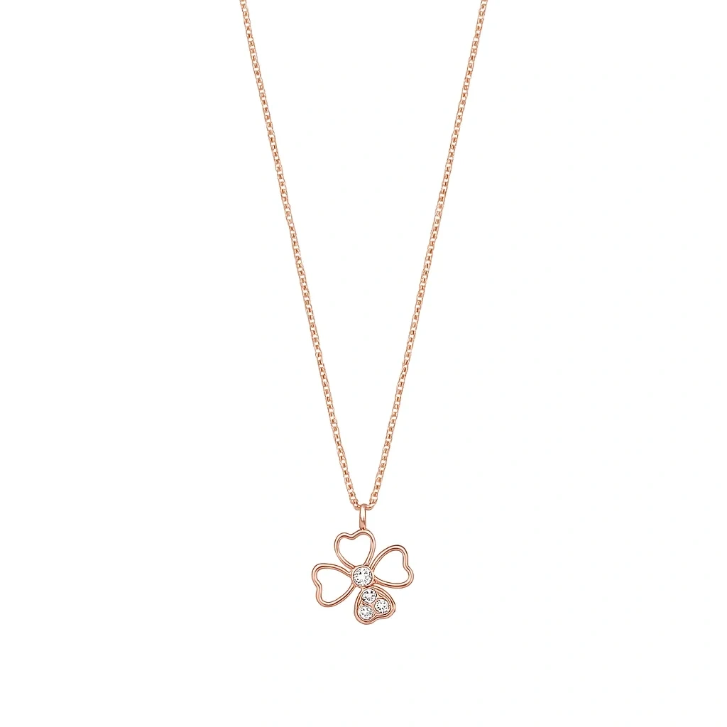 Kolye üzerindeki dört yapraklı yonca detayları, ışığı farklı açılardan yansıtarak göz alıcı bir ışıltı yaratır. Hafif yapısı sayesinde boyunda konforlu bir kullanım sunarken, yüksek kalite altın işçiliği parlaklığını ve formunu uzun süre korur. Minimal şıklık arayanlar için ideal bir seçenek olduğu gibi, hediye olarak da anlamlı bir tercih oluşturur.