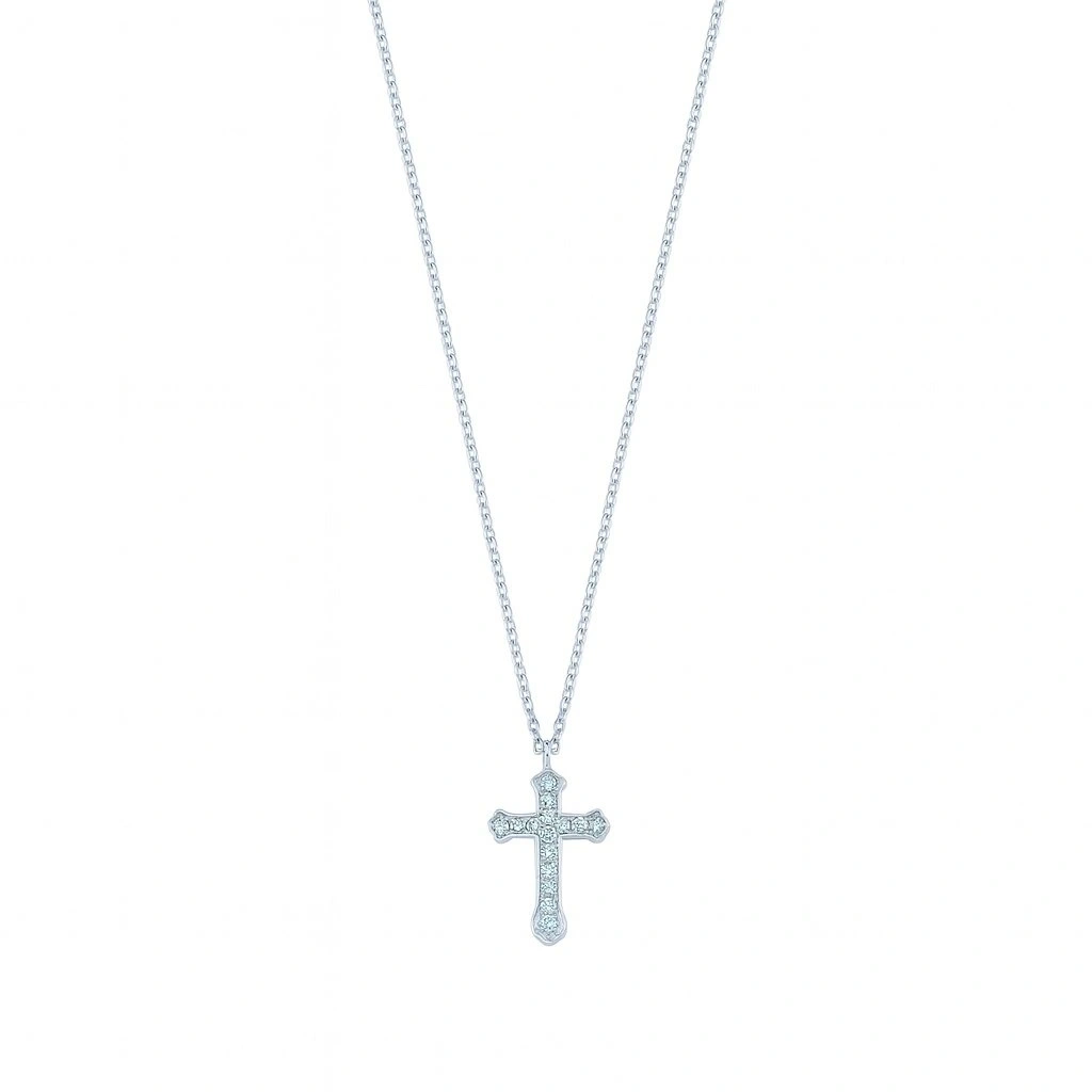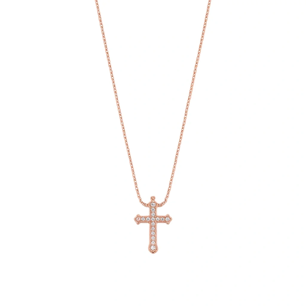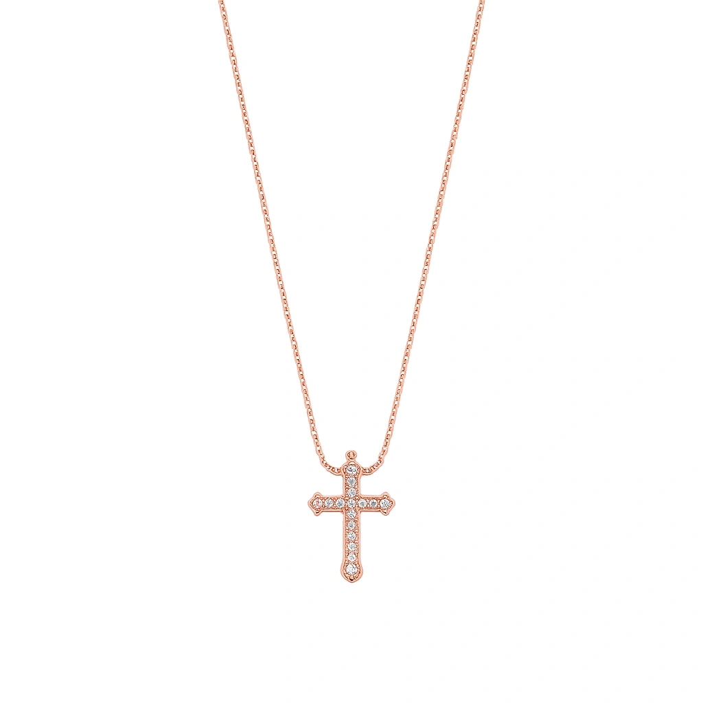 Taşlarla süslenen haç detayı, ışığı her açıdan yansıtarak göz alıcı bir ışıltı sunar. İnce ve zarif altın zinciri ile bütünleşen tasarım, boyunda hafif ve konforlu bir kullanım sağlar. Yüksek kalite altın işçiliği sayesinde uzun süre parlaklığını ve formunu korur. Hem klasik hem modern stile uyum sağlayan özel bir takı seçeneğidir.