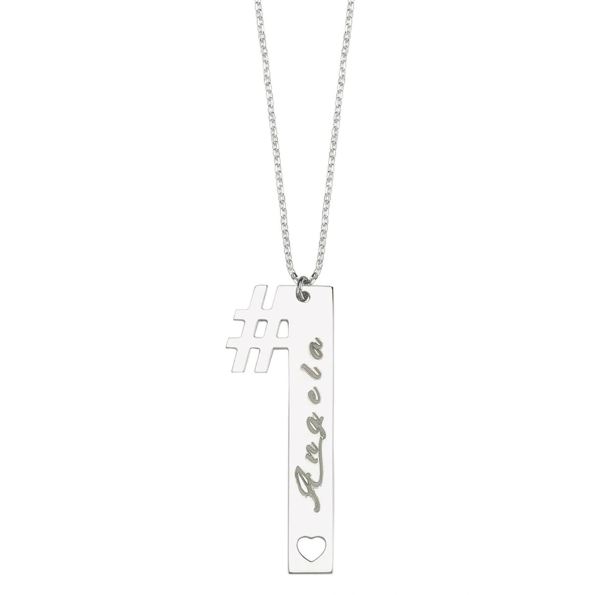 Lazer Kesim Dik Plaka Kalpli İsim Kolye