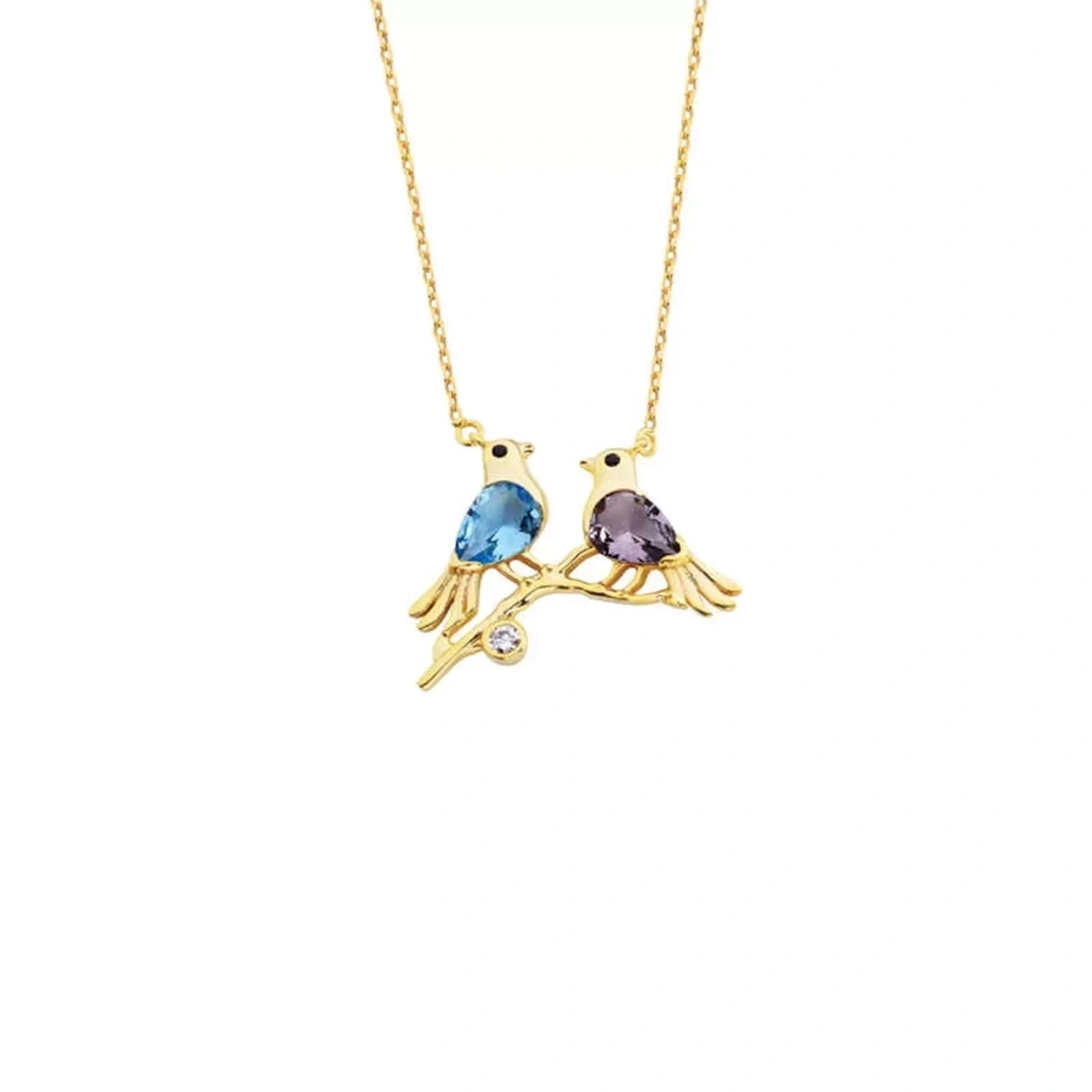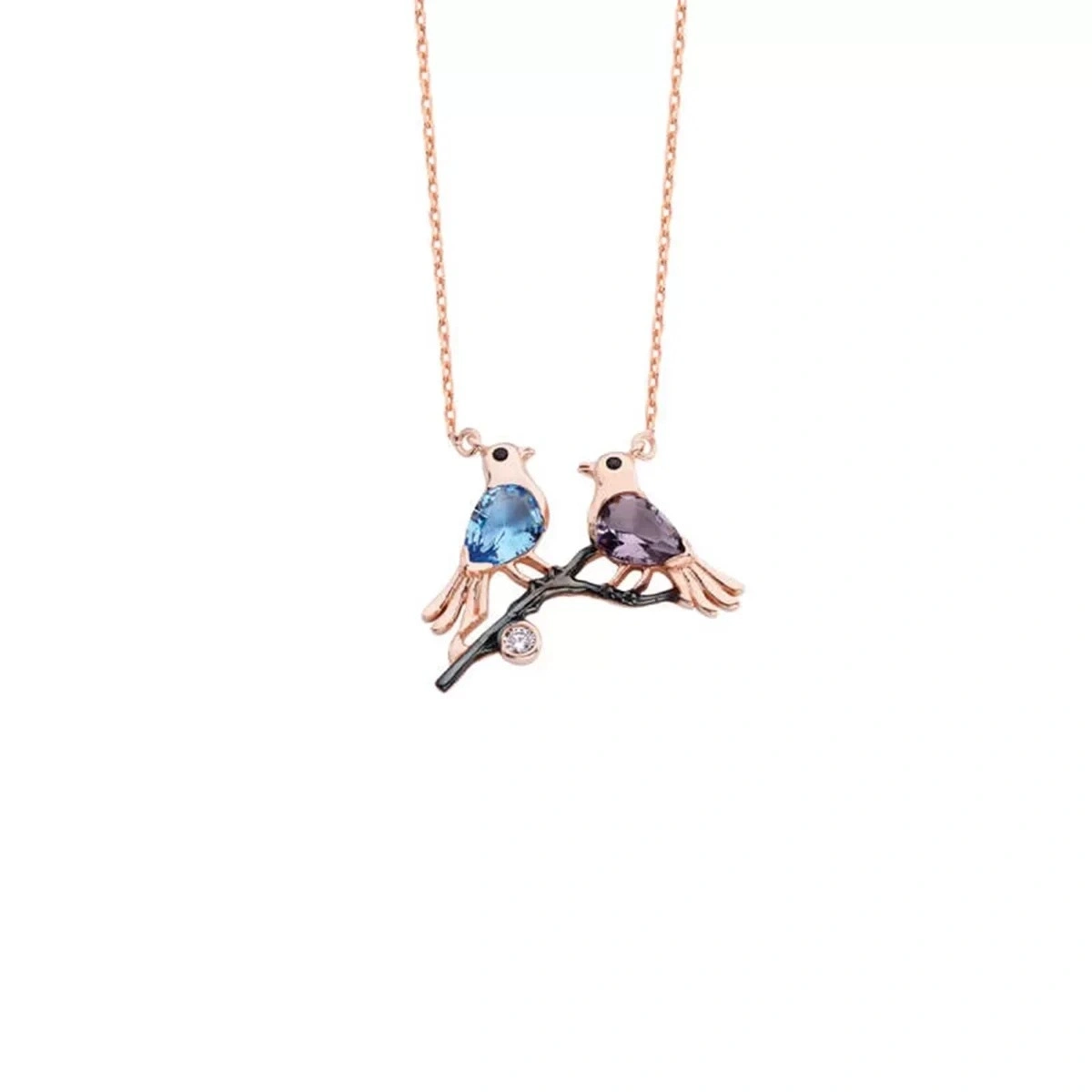 • Tasarım: Dal üzerinde çift kumru figürlü taşlı kolye