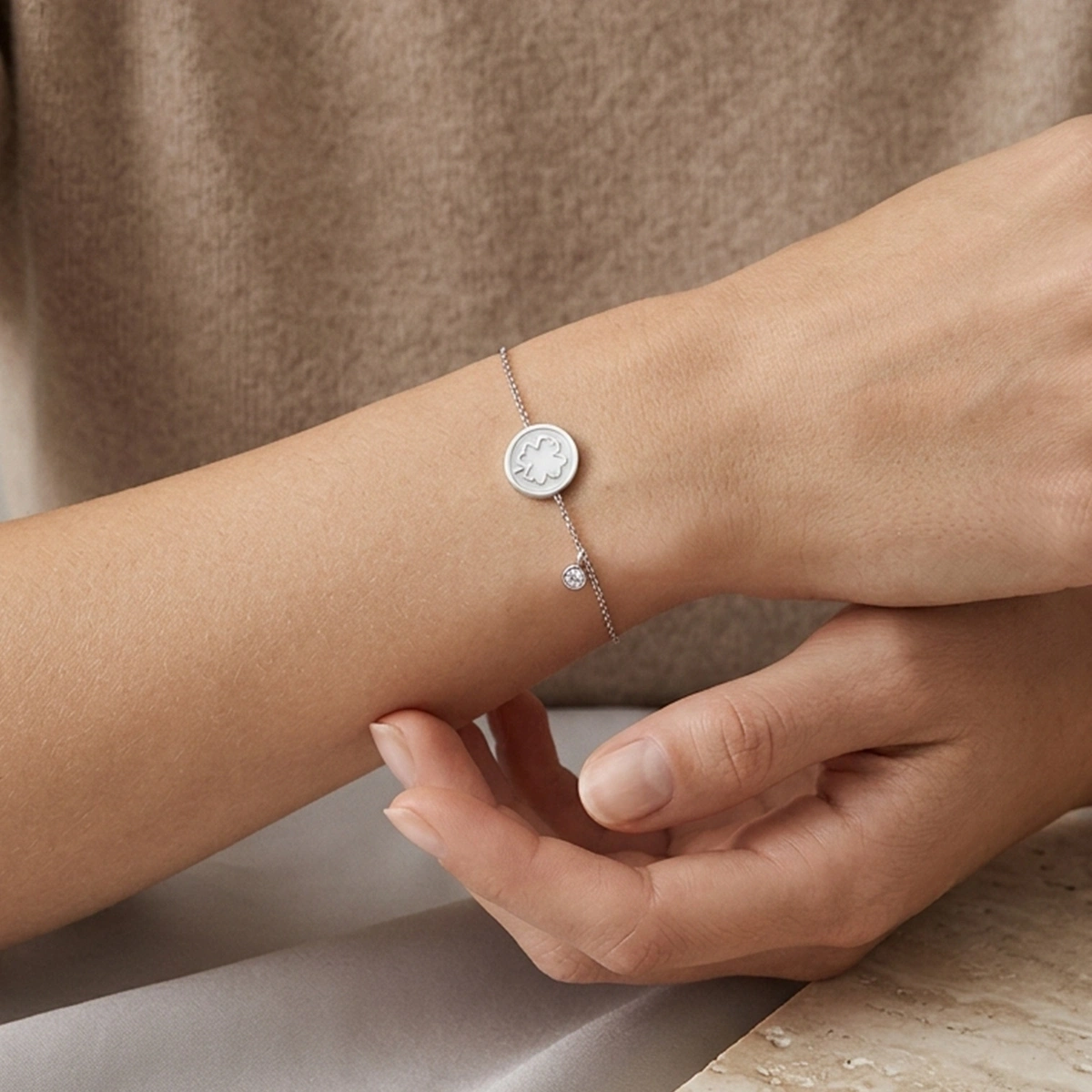 Sedef Mineli Yonca Pırlanta Bileklik