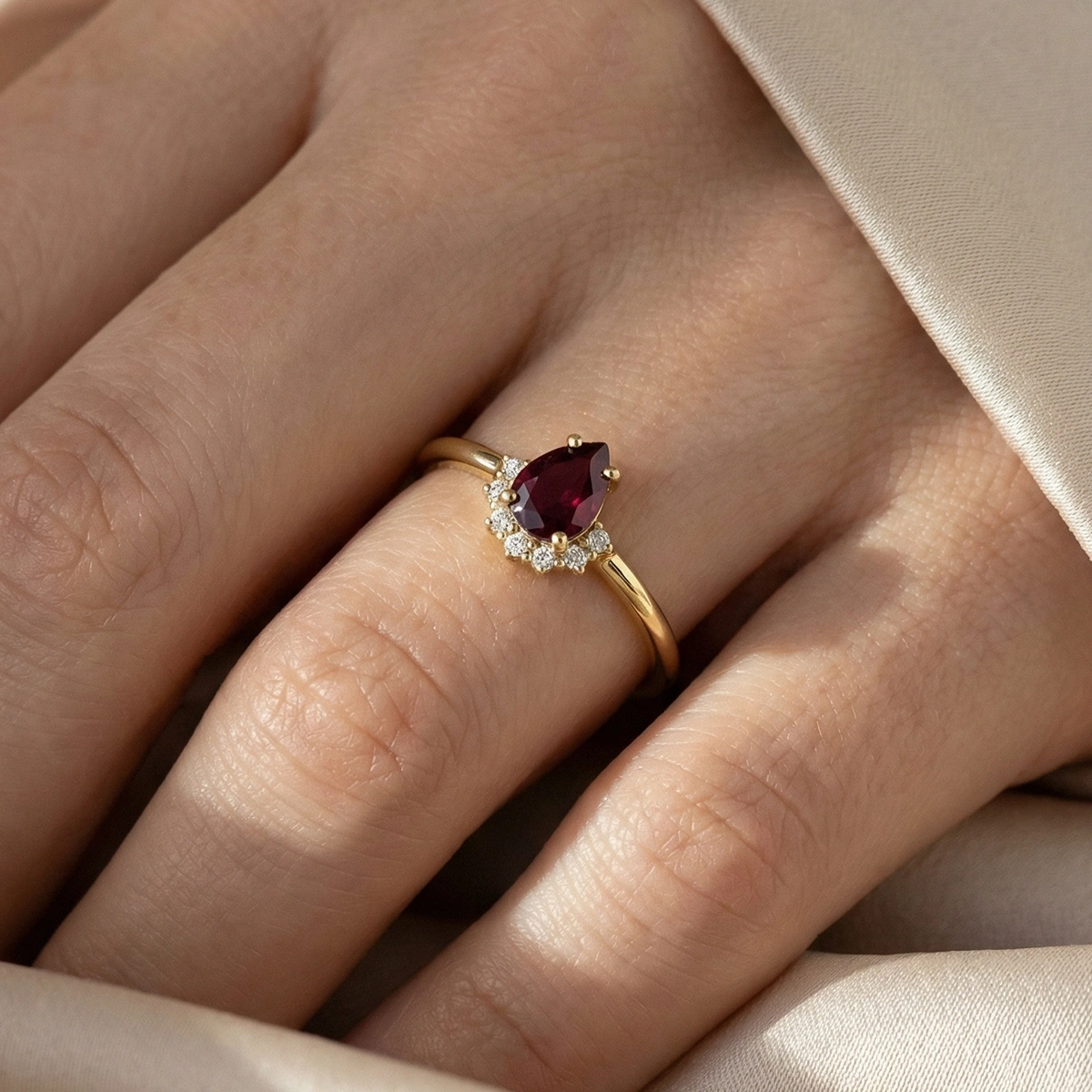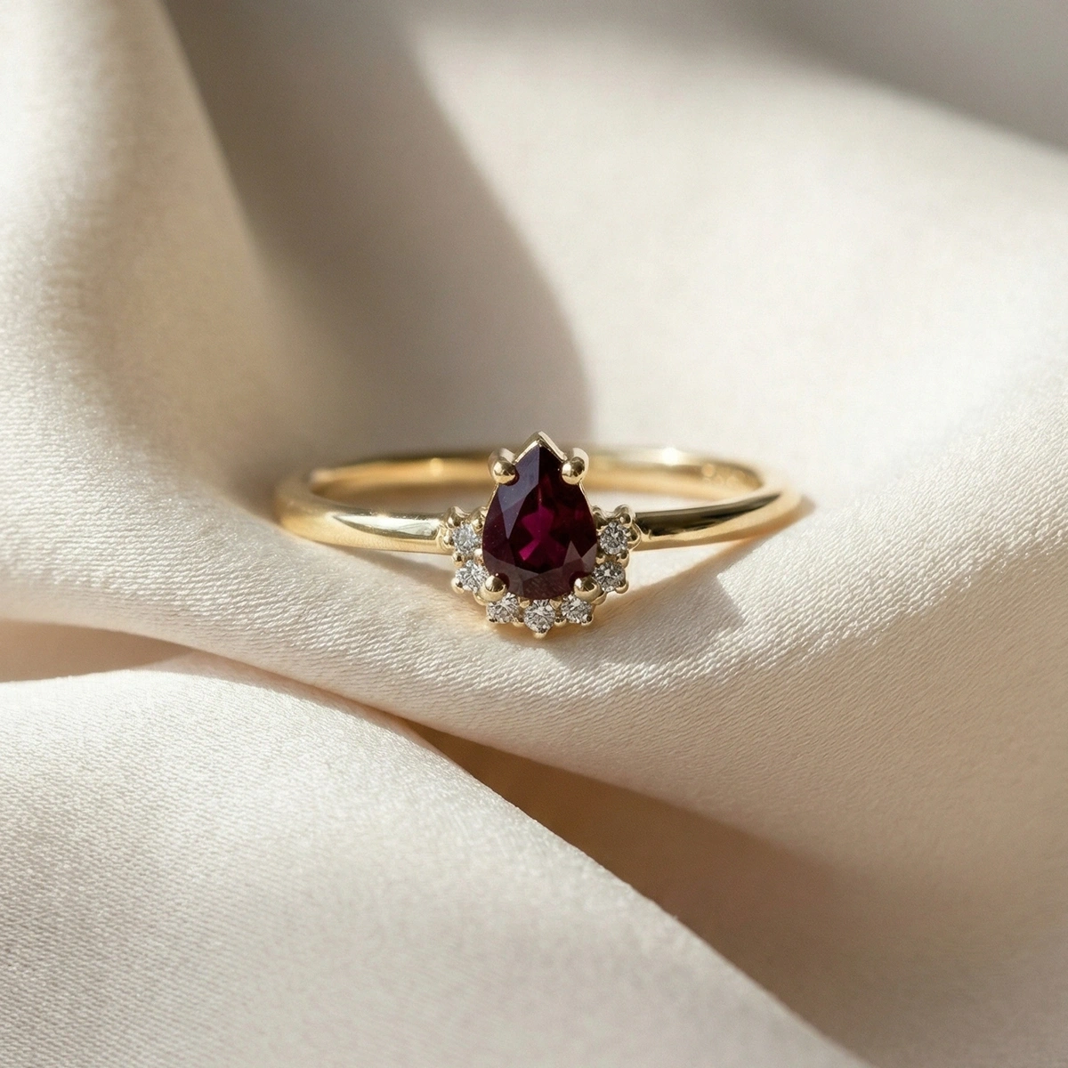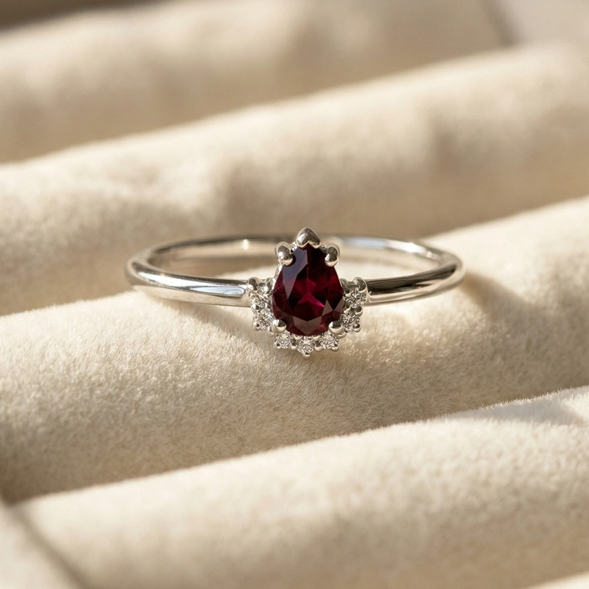 Yakut Kırmızısı Damla Taşlı Pırlanta Yüzük