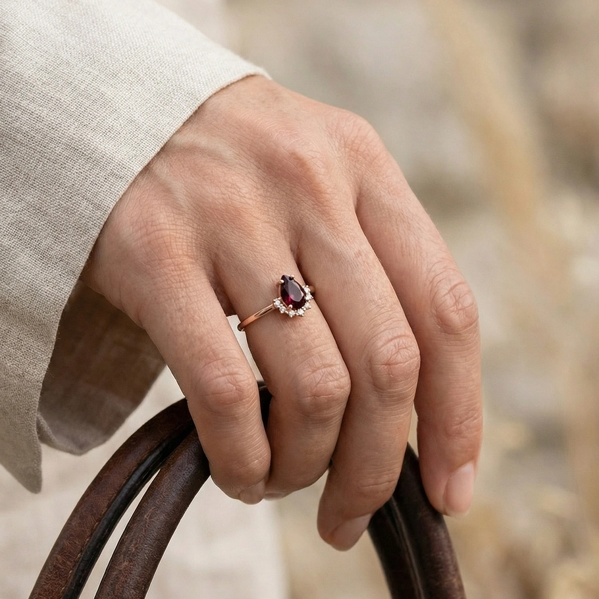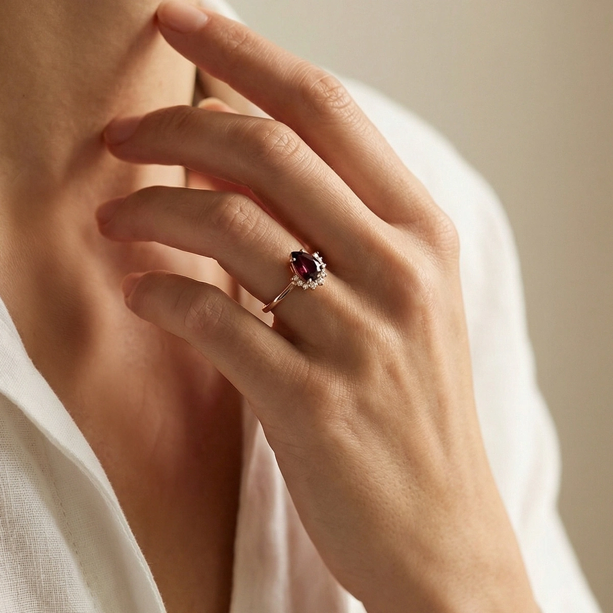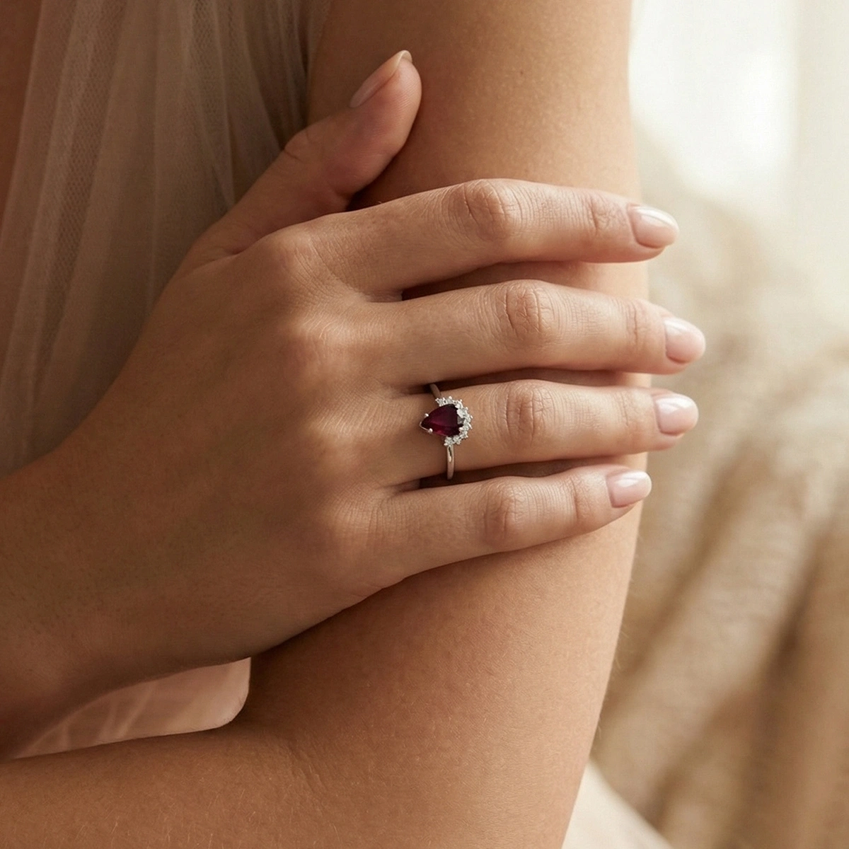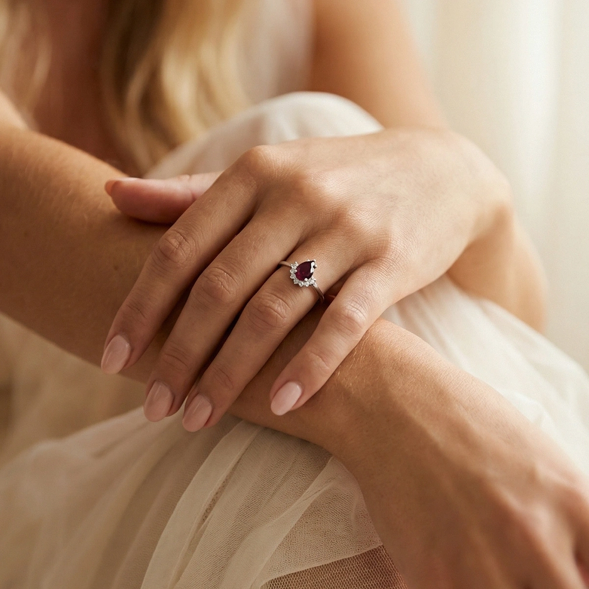 Yakut Kırmızısı Damla Taşlı Pırlanta Yüzük