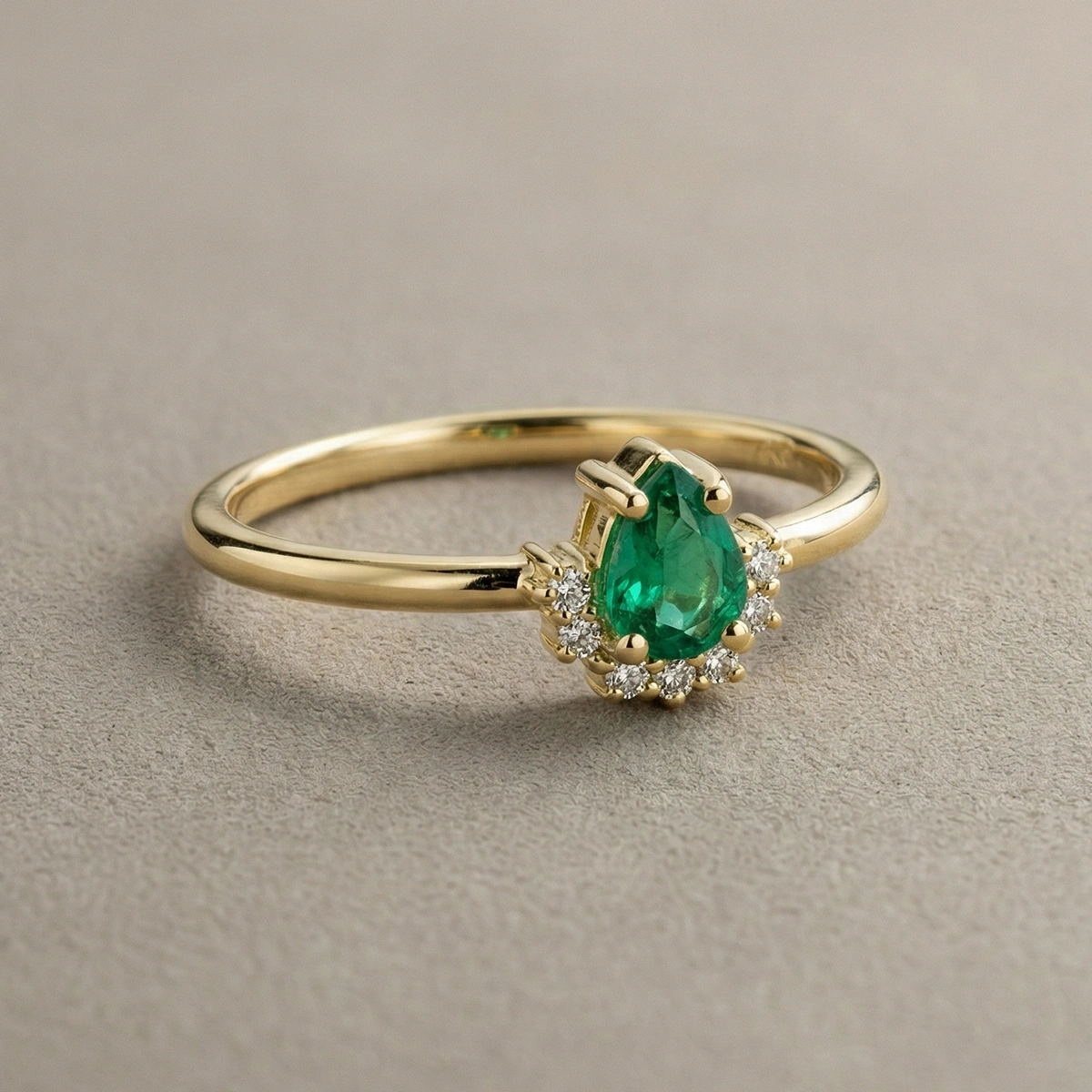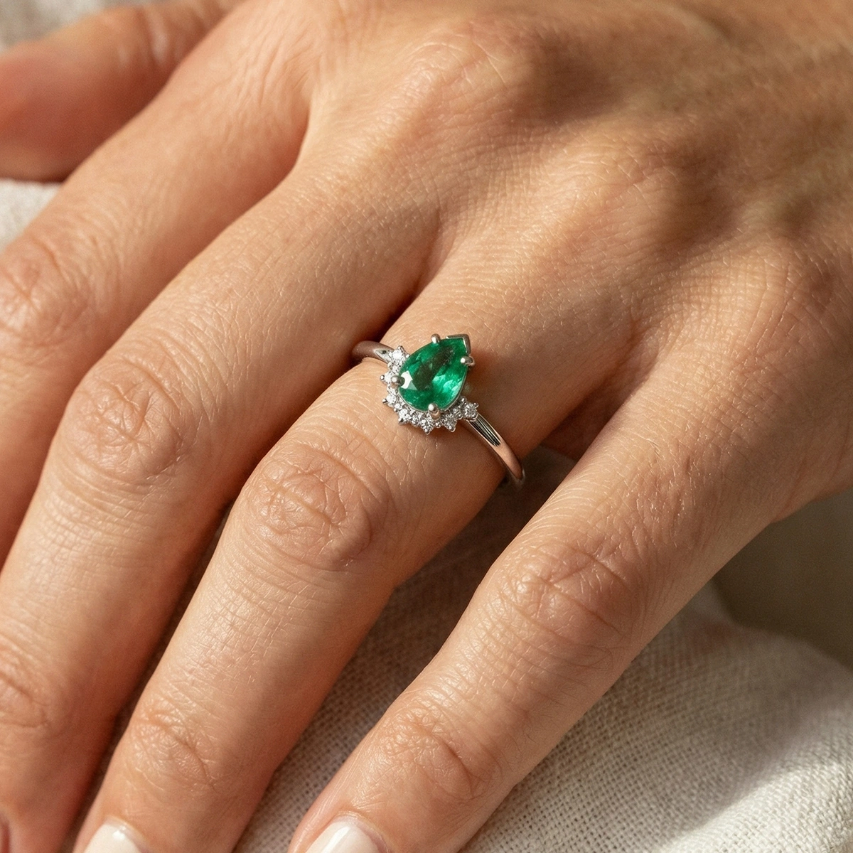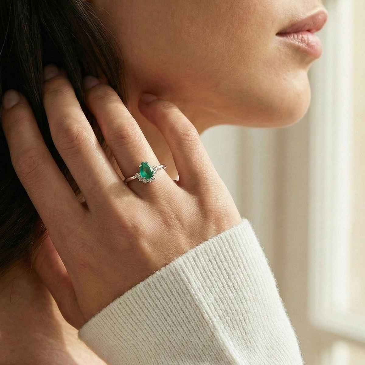 Zümrüt Yeşili Damla Taşlı Pırlanta Yüzük