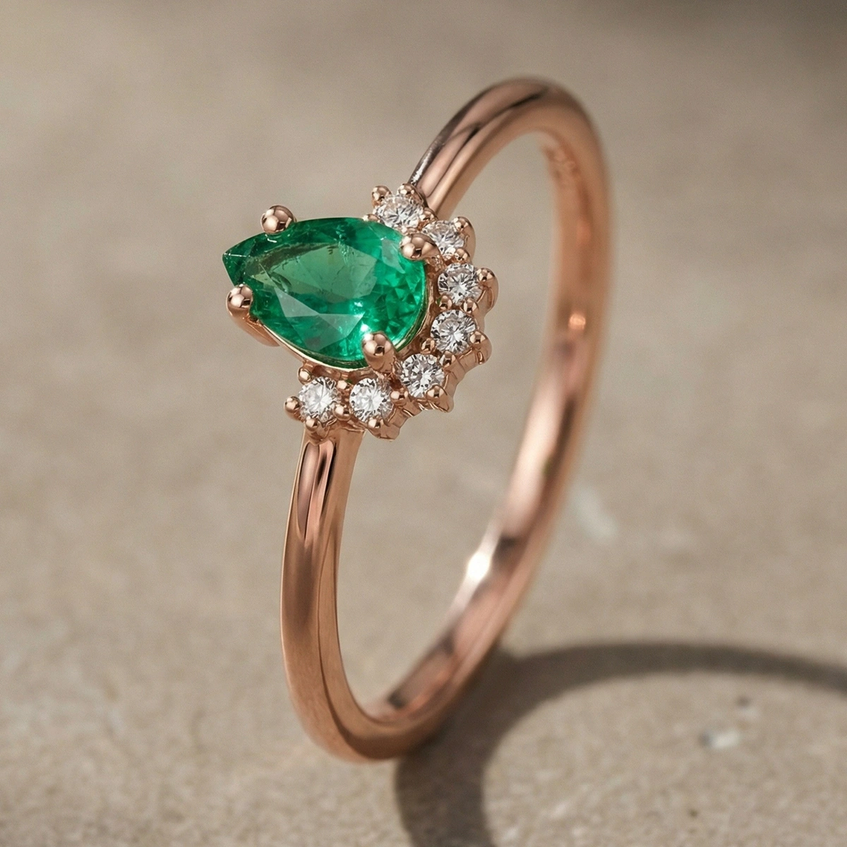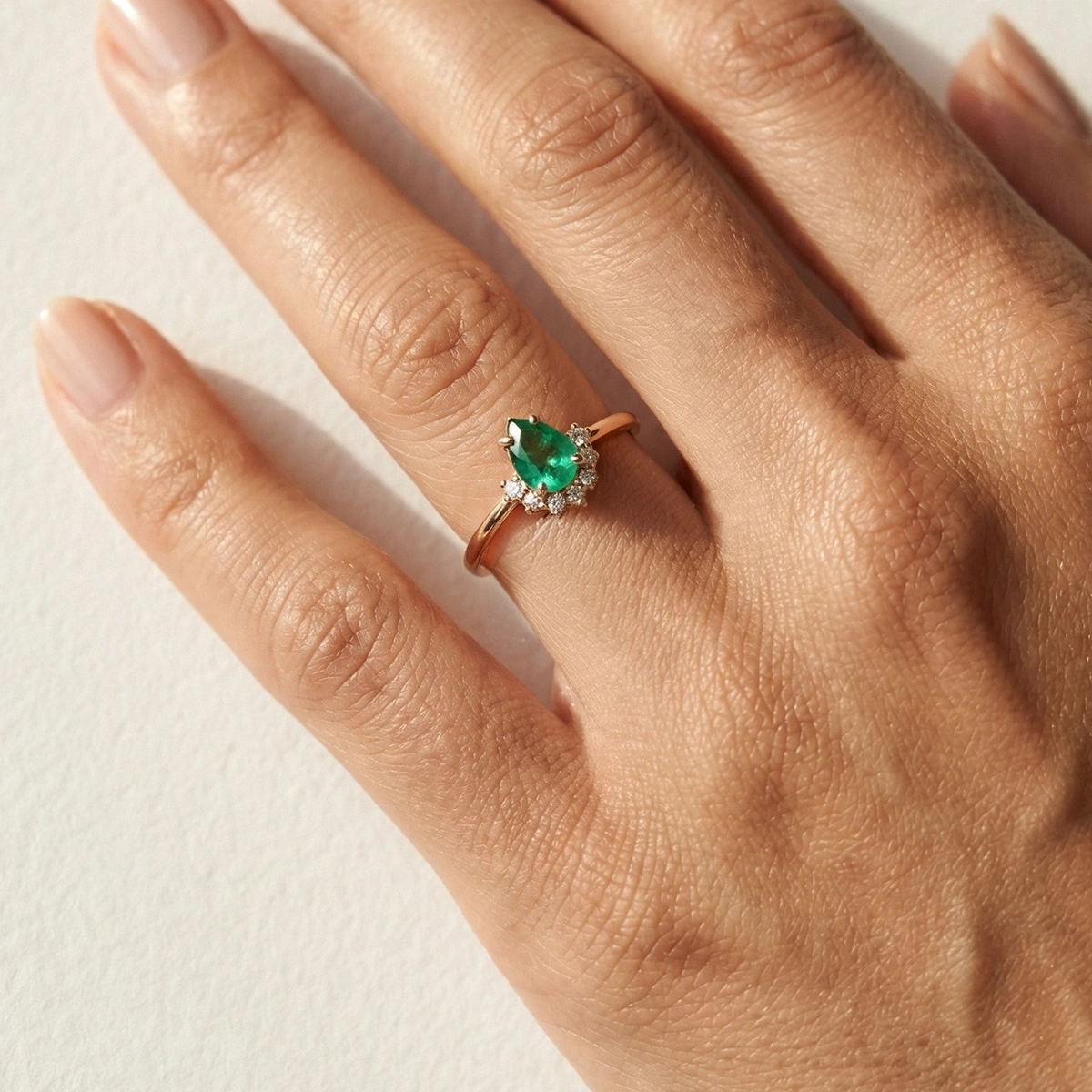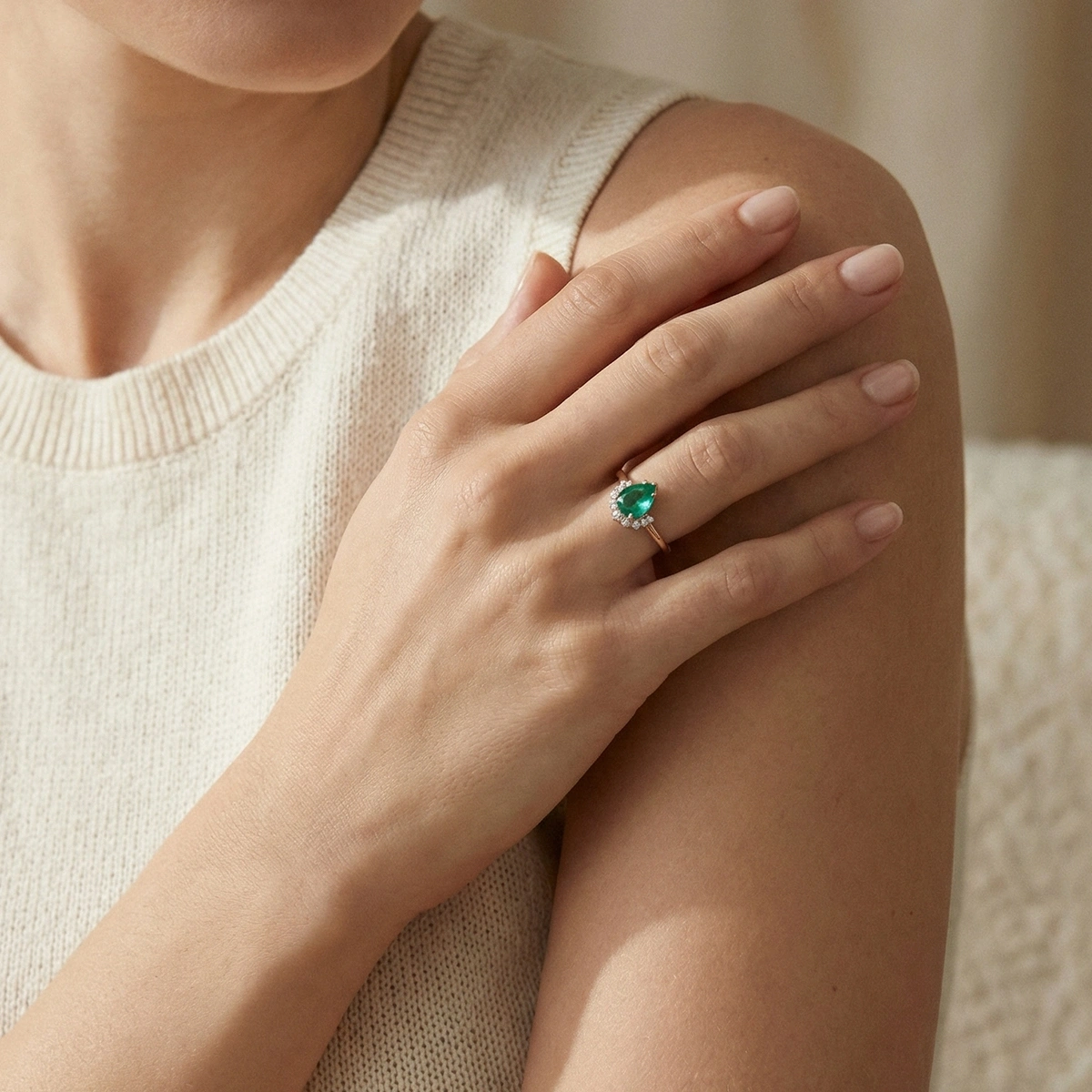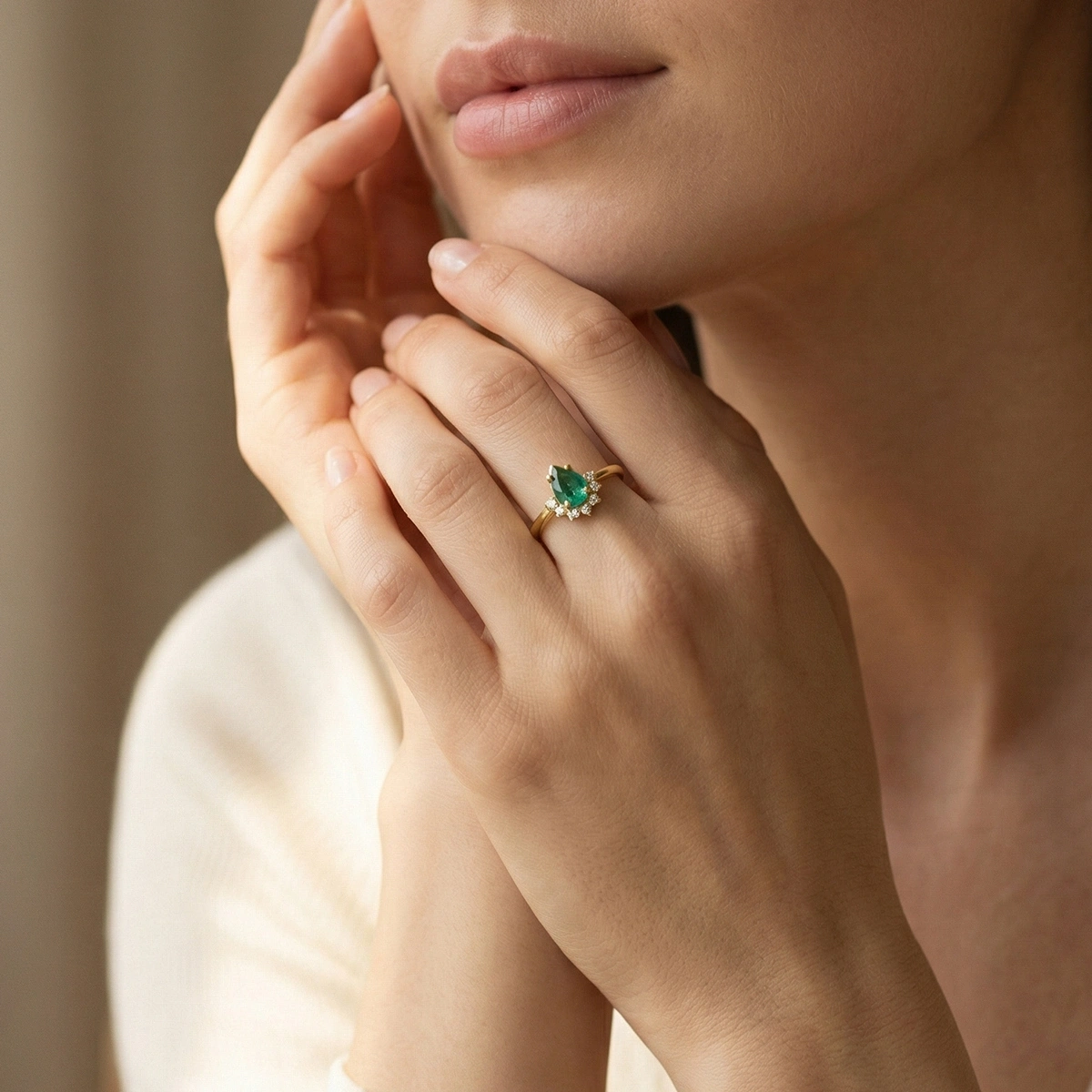 Zümrüt Yeşili Damla Taşlı Pırlanta Yüzük