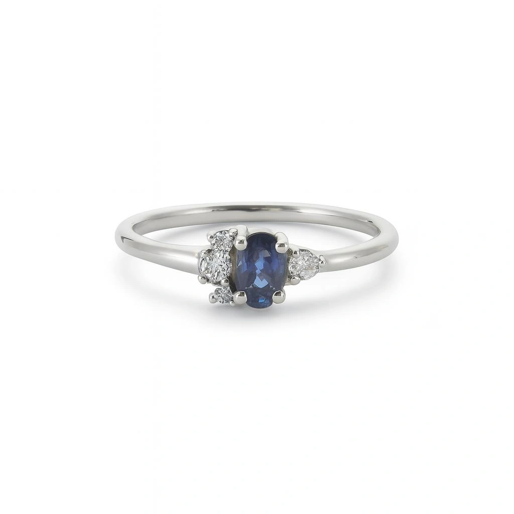 Gece Mavisi Oval Taşlı Pırlanta Yüzük