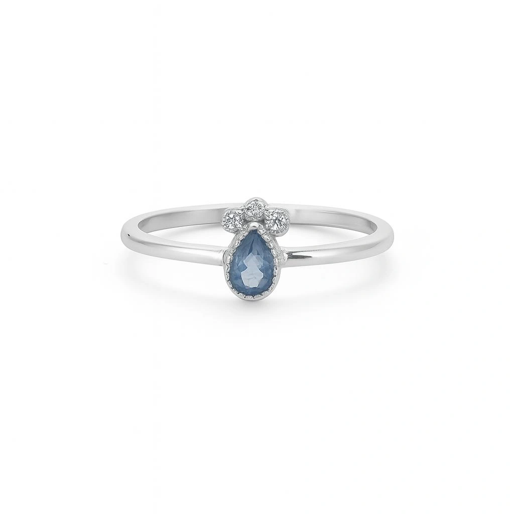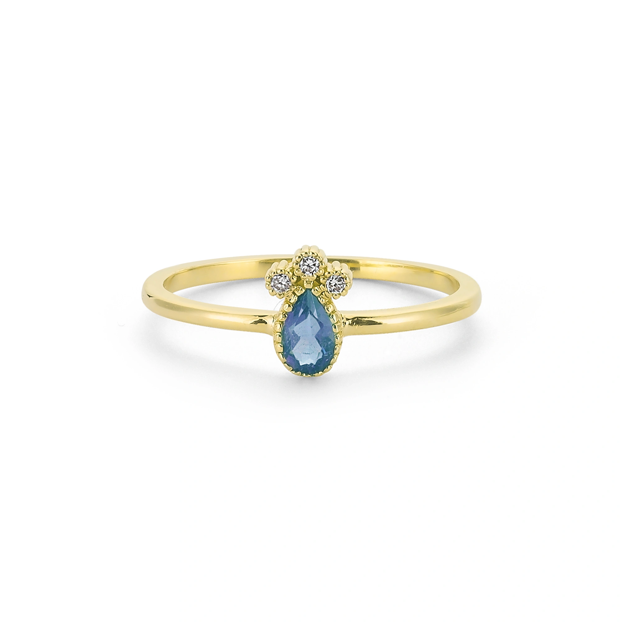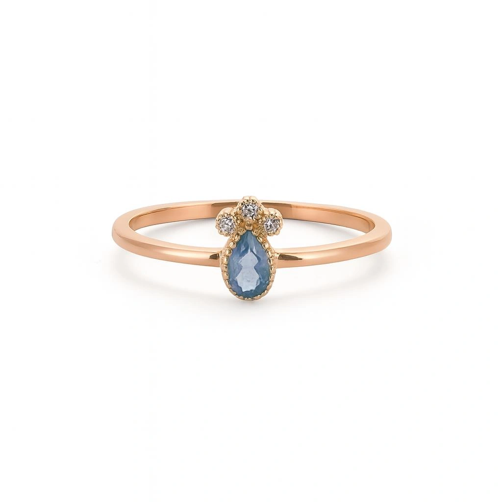 Gökyüzü Mavisi Damla Taşlı Pırlanta Yüzük