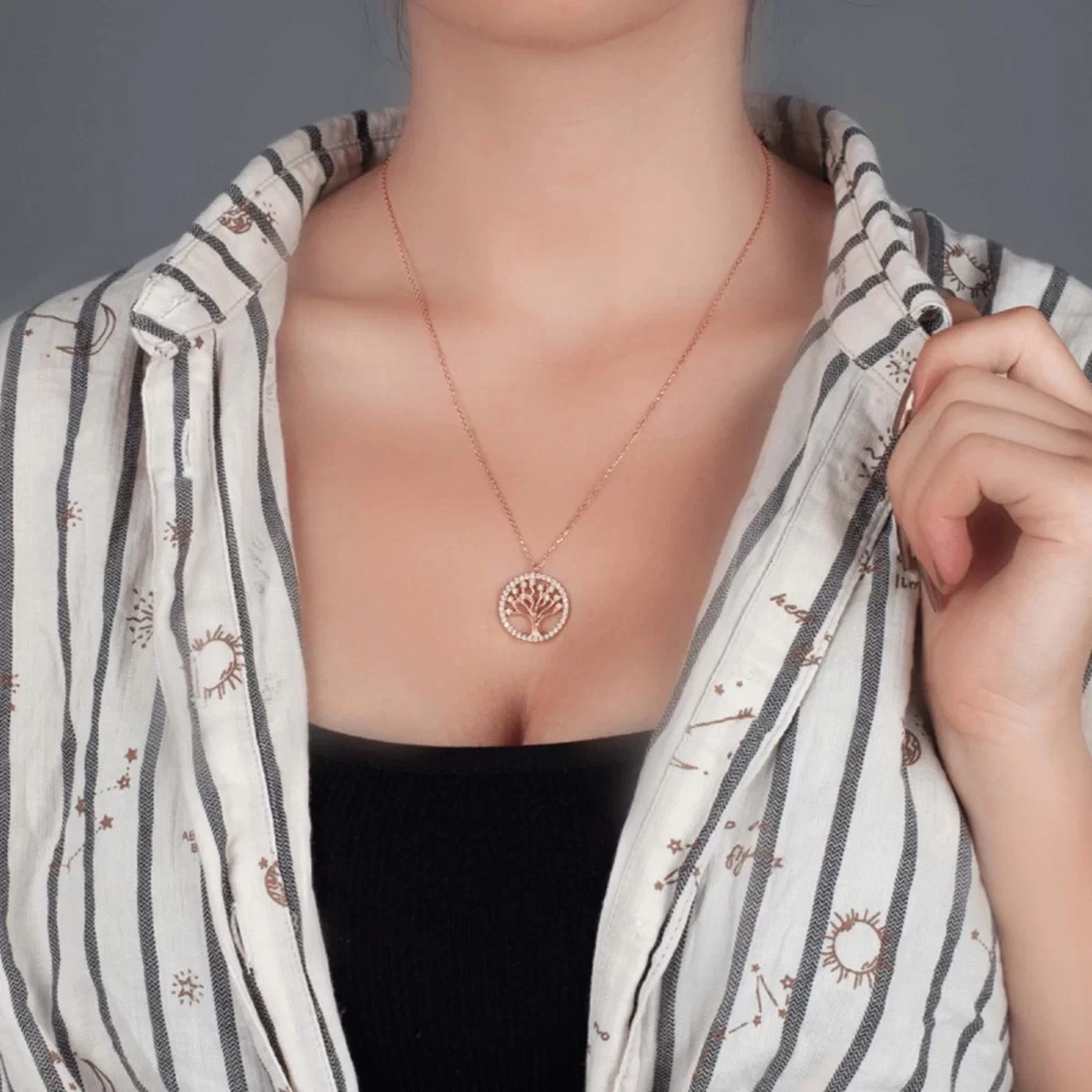 Hayat Ağacı Taşlı Gümüş Kolye