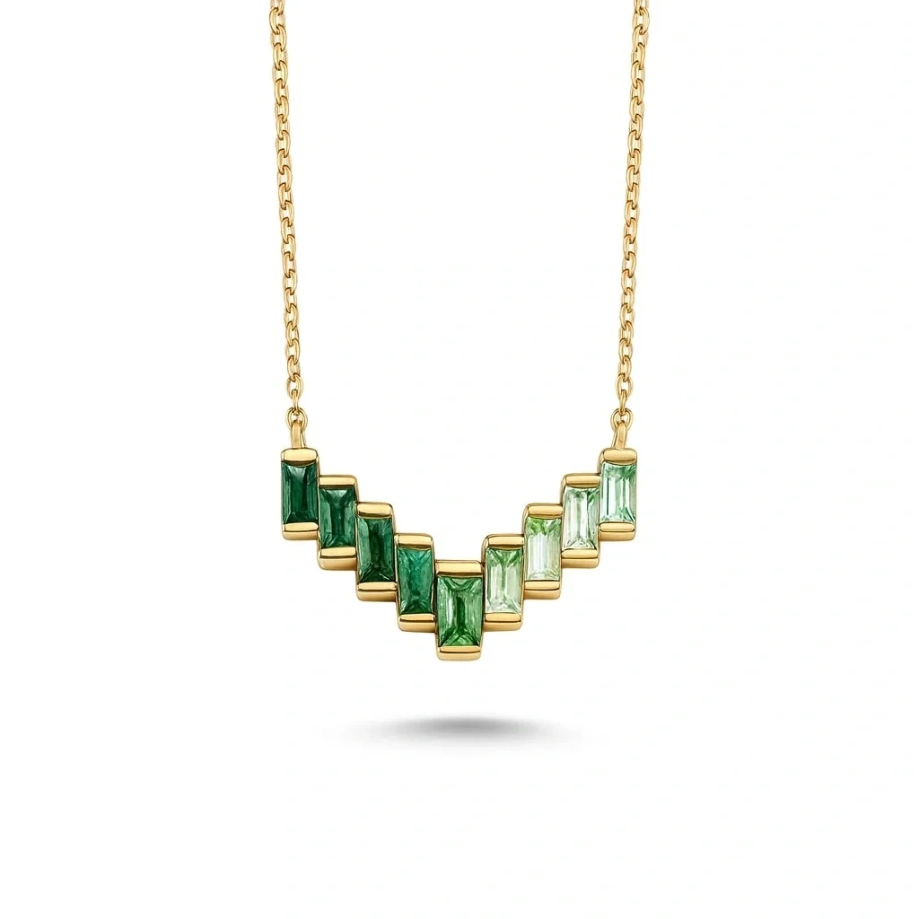 Horizon Yeşil Baget Taşlı Altın Kolye