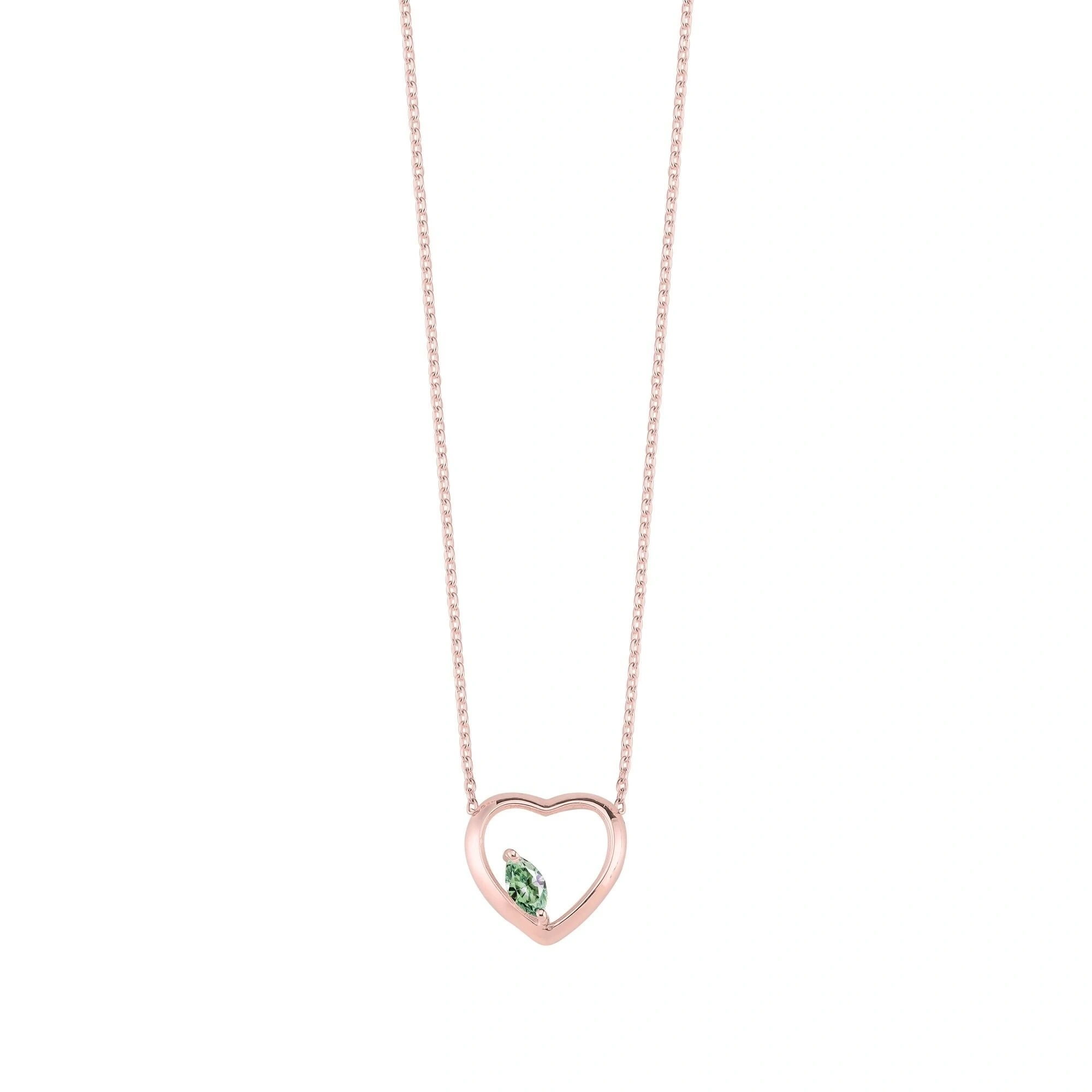 Kalpli Yeşil Markiz Rengarenk Altın Kolye