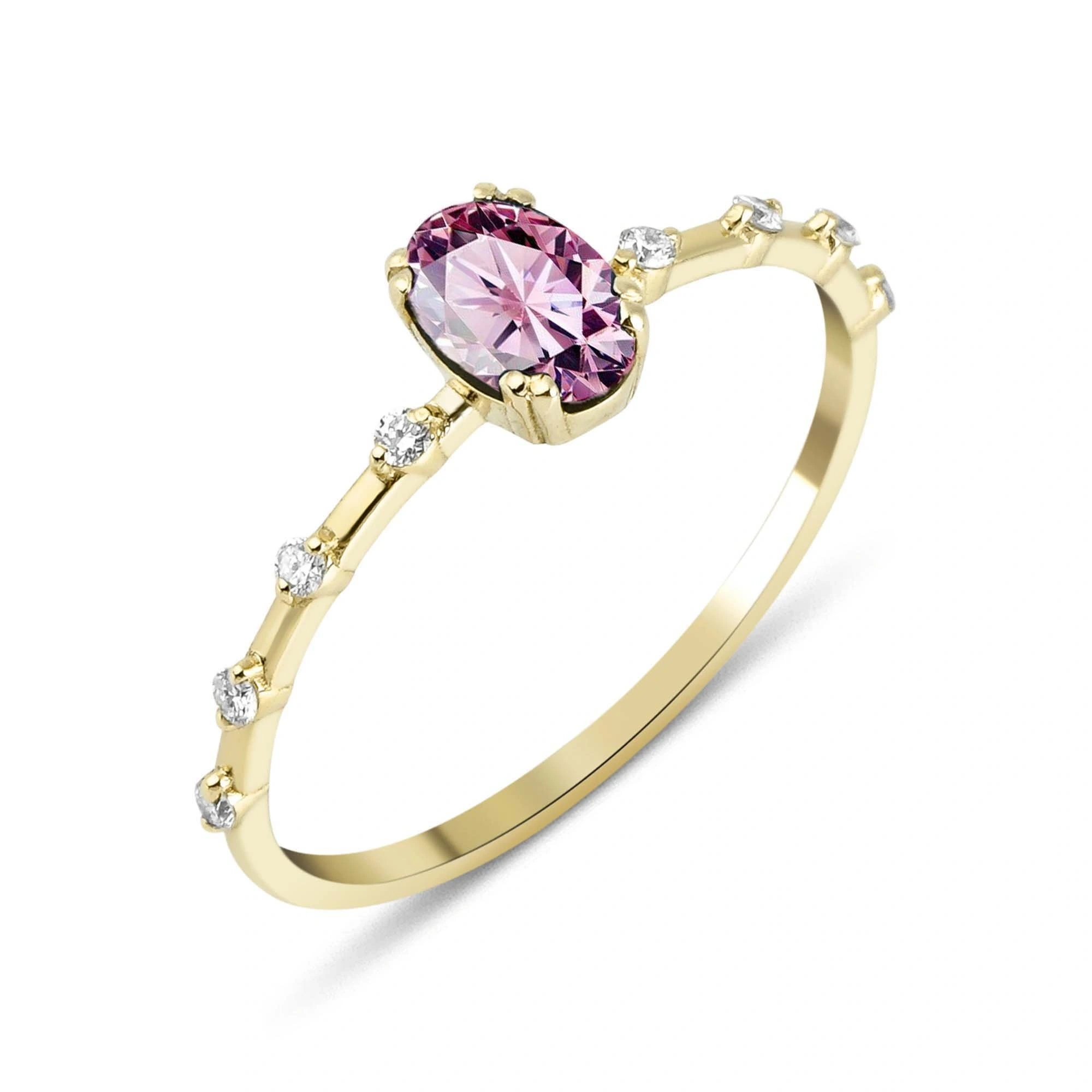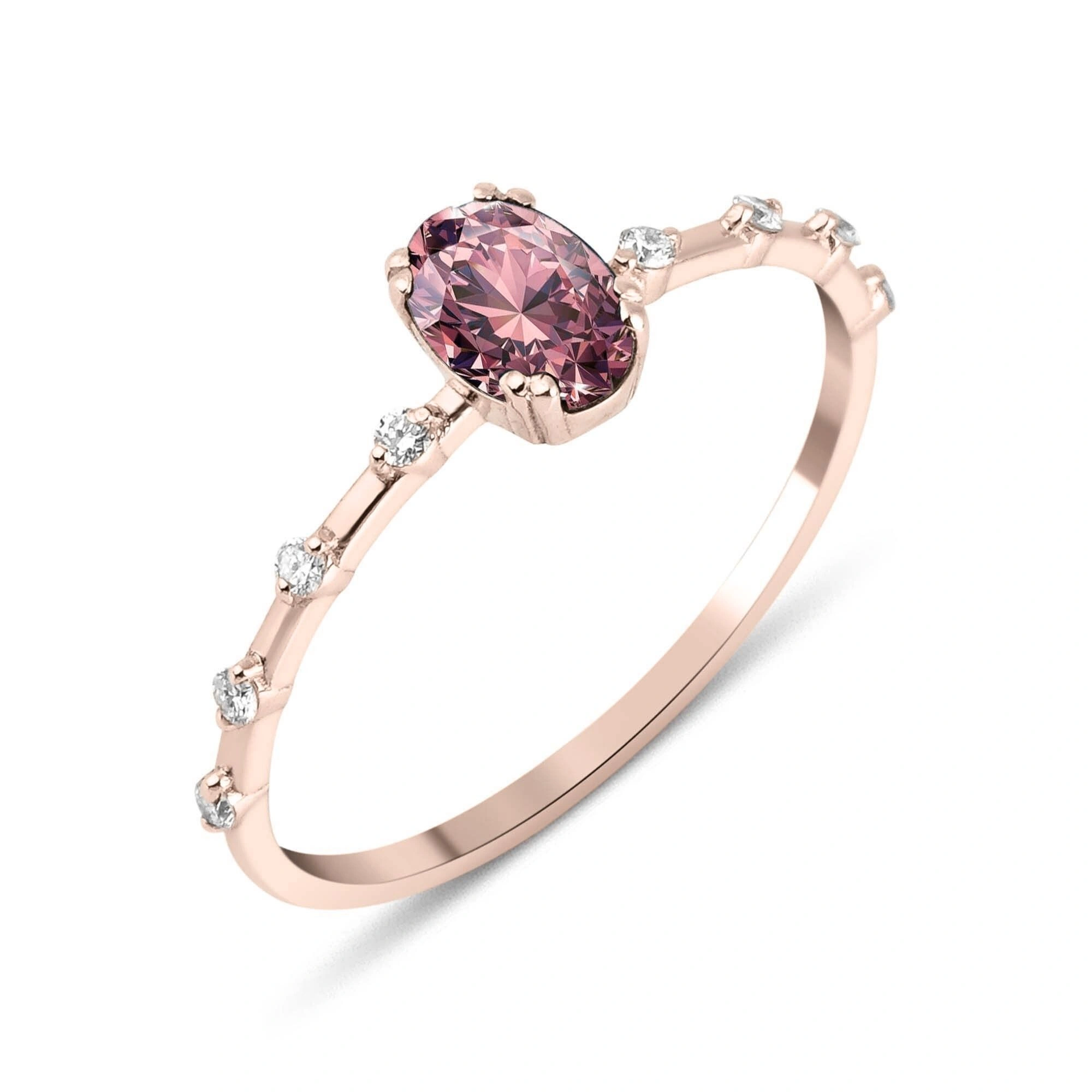 Kuvars Pembesi Oval Taşlı Pırlanta Yüzük
