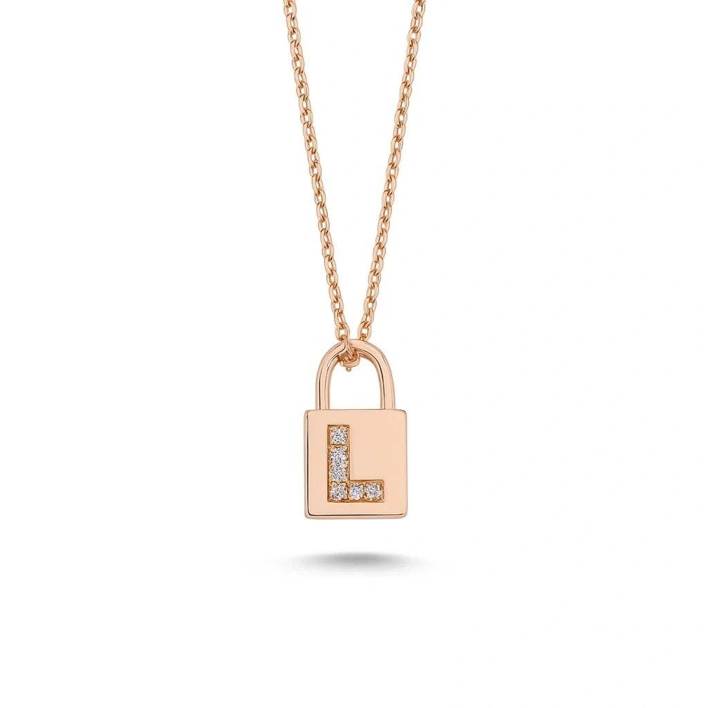 L Harfi Kilit Altın Kolye