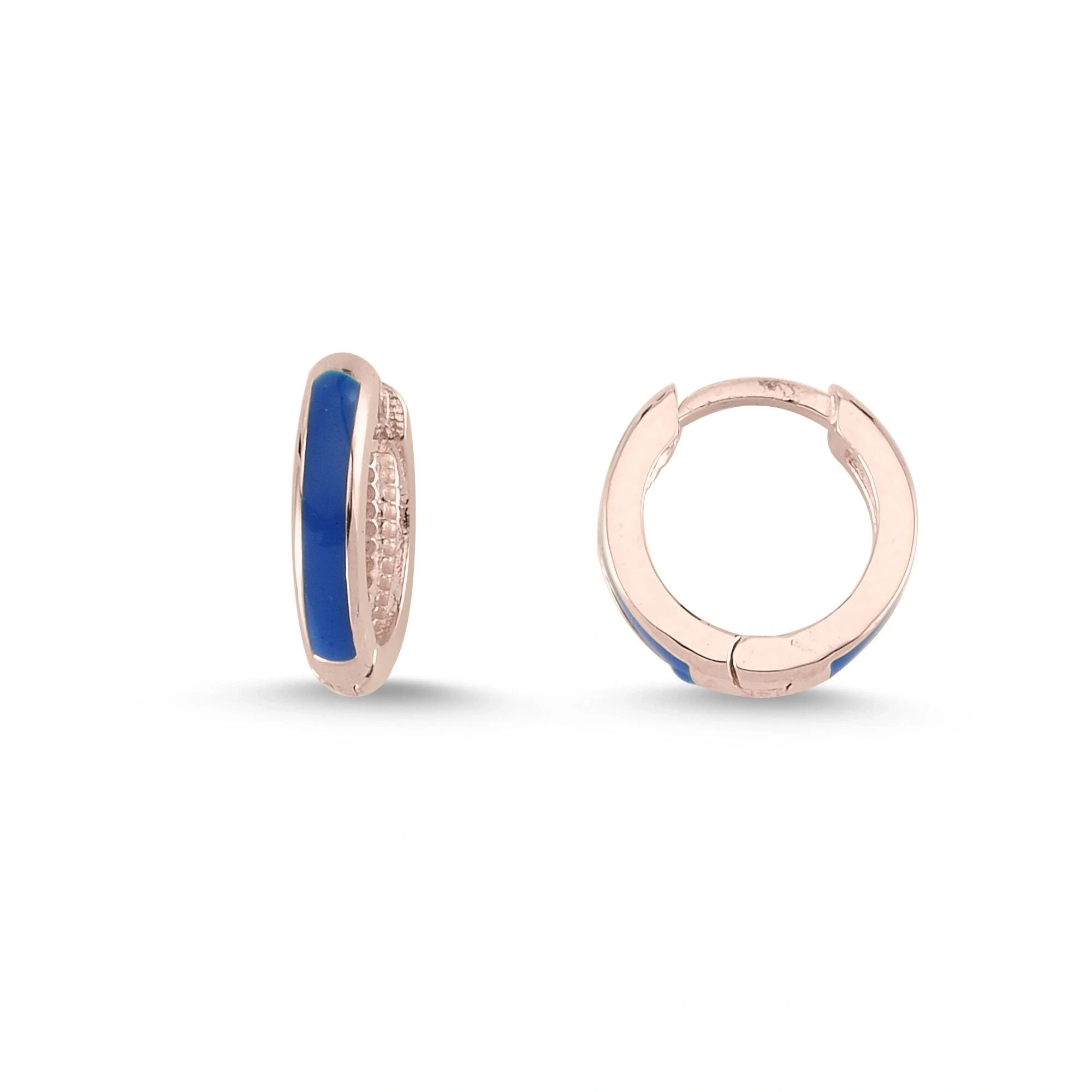 Lacivert Mineli Halka Altın Küpe