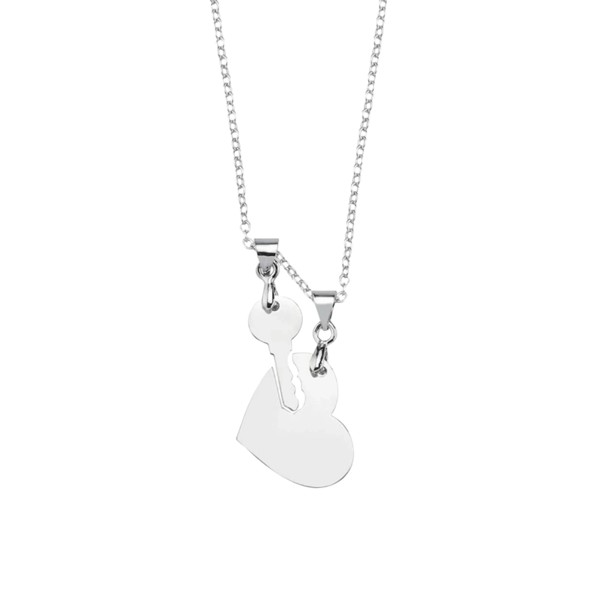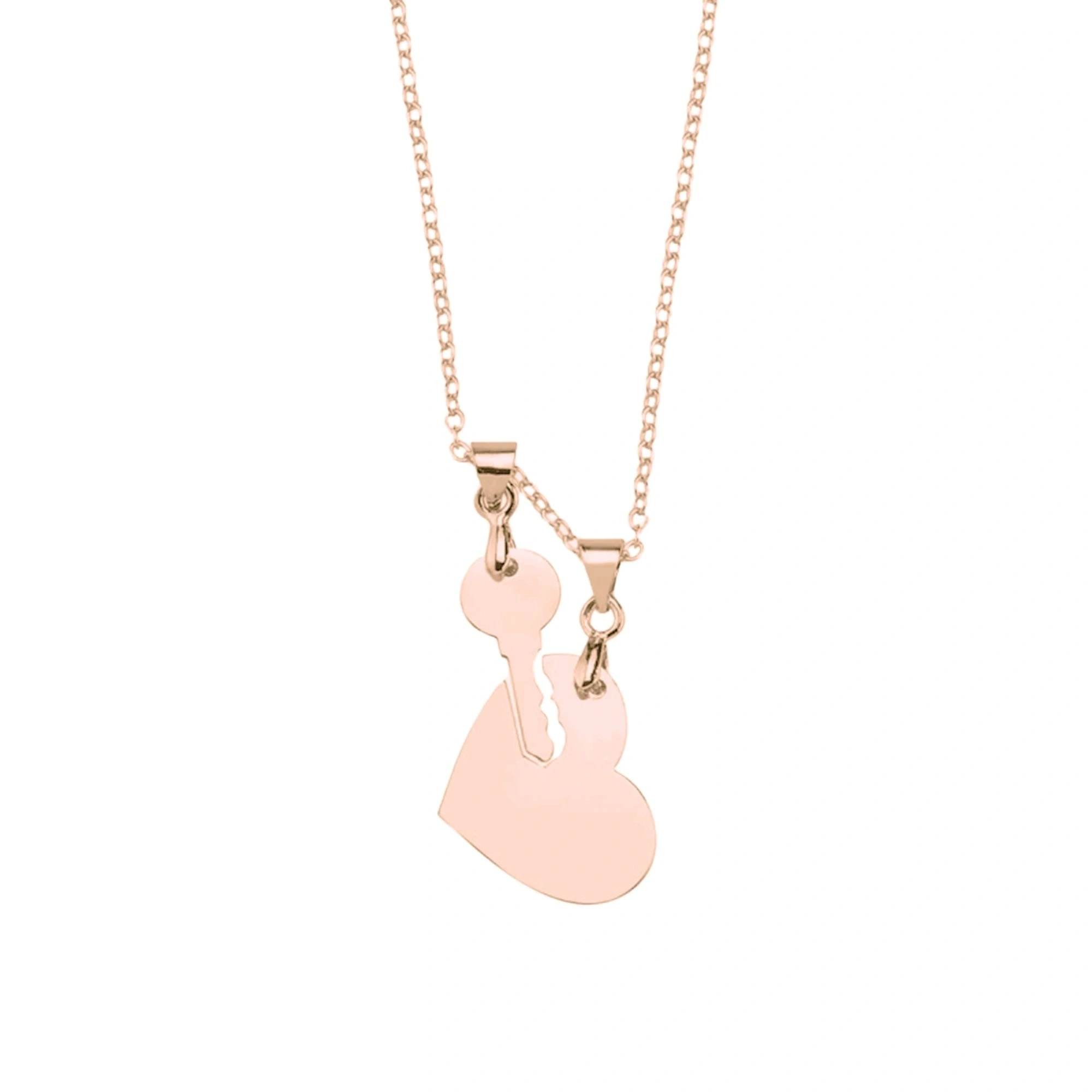 Lazer Kesim Kalp ve Anahtar Çift Kolye