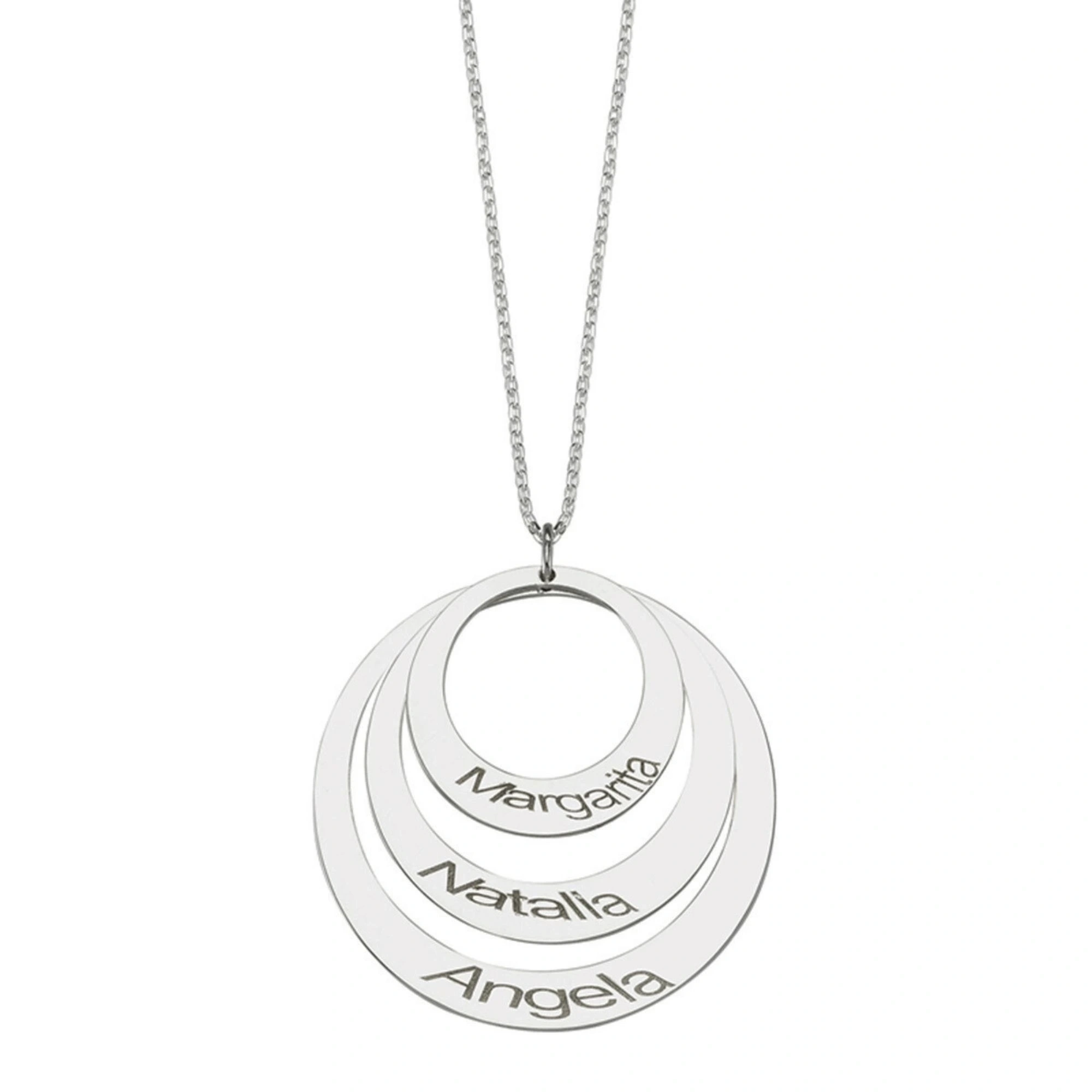 Lazer Kesim Plaka İsimli İç İçe Geçmiş Halka Kolye