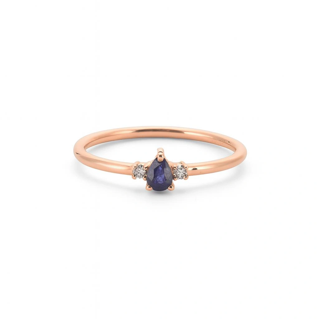 Minimal Gece Mavisi Damla Taşlı Pırlanta Yüzük