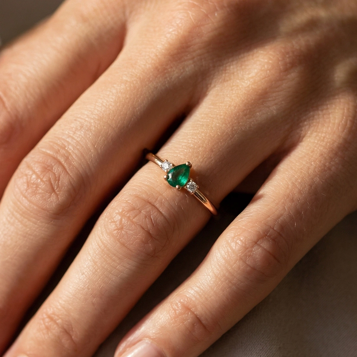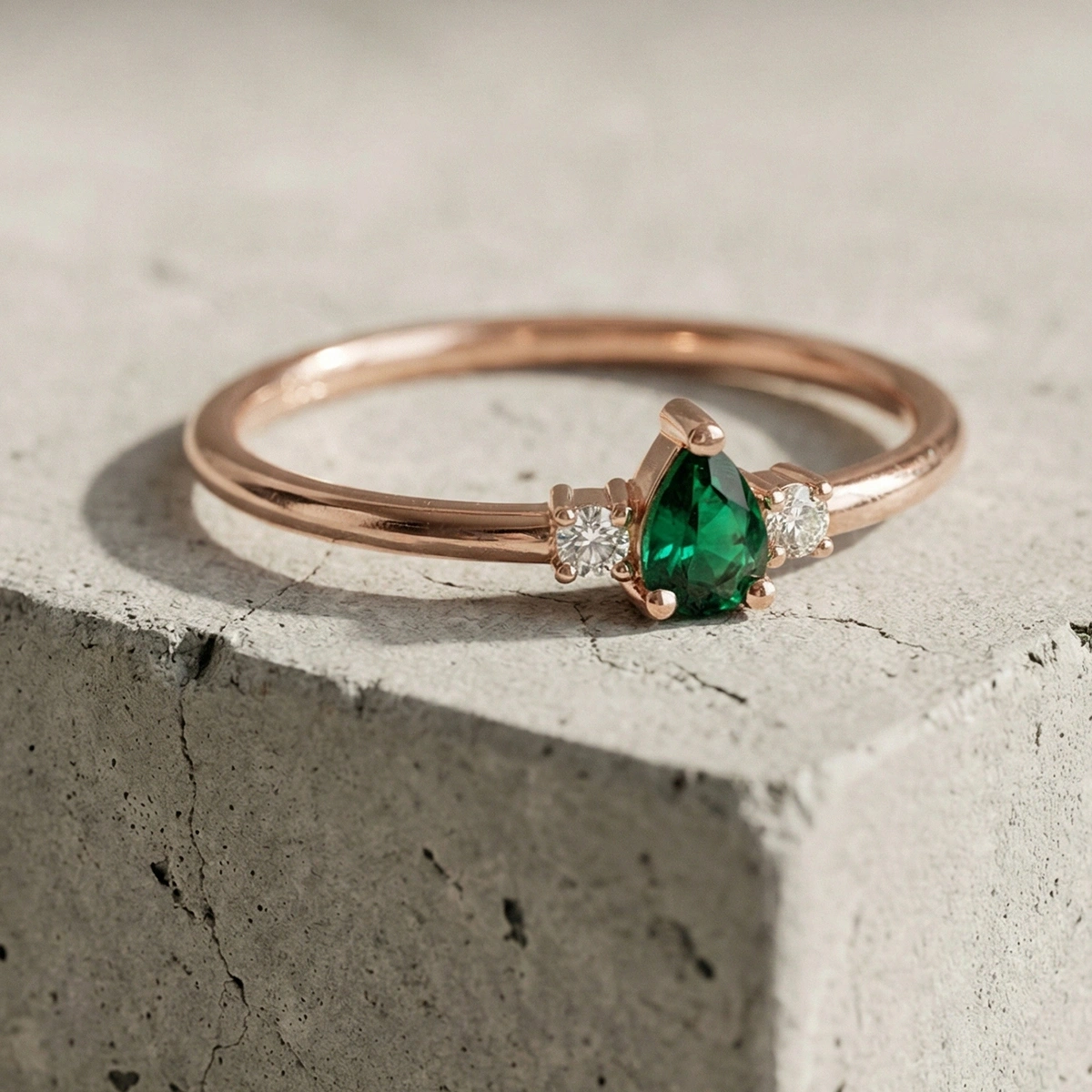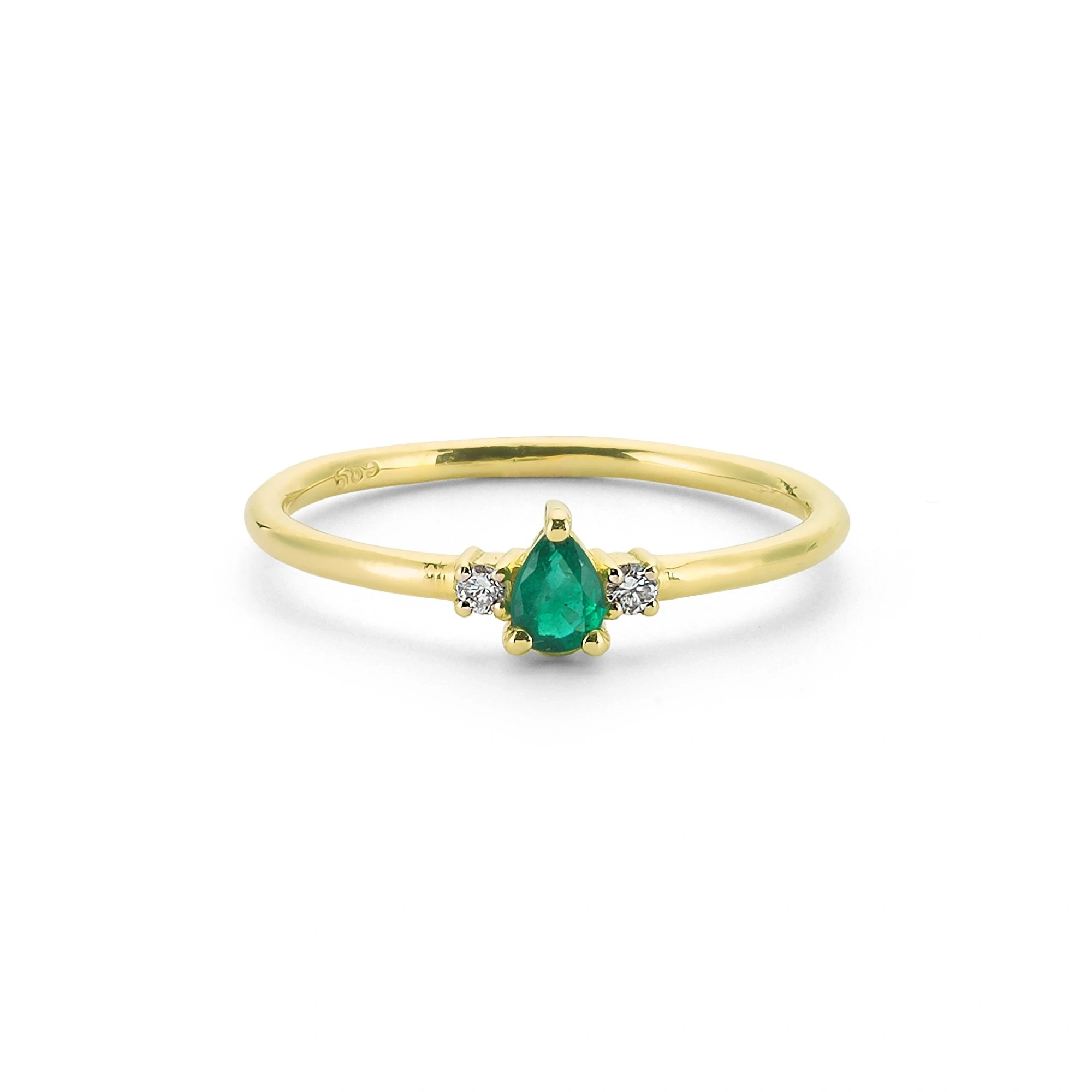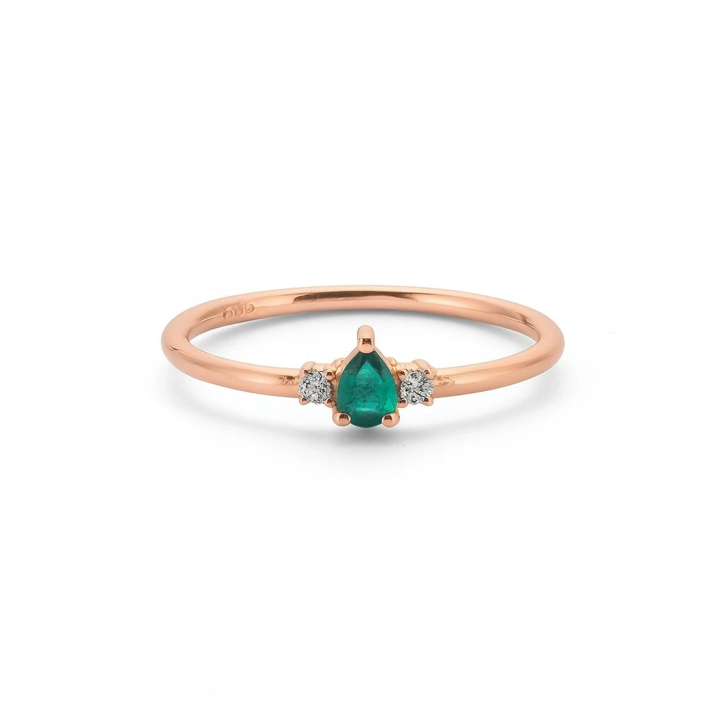 Minimal Zümrüt Yeşili Damla Taşlı Pırlanta Yüzük
