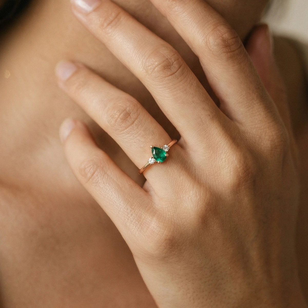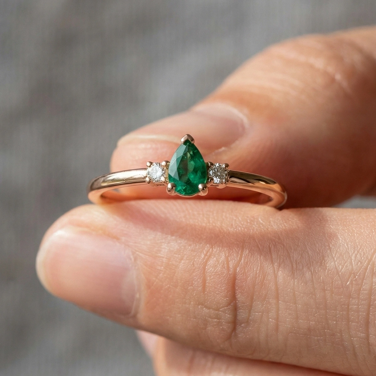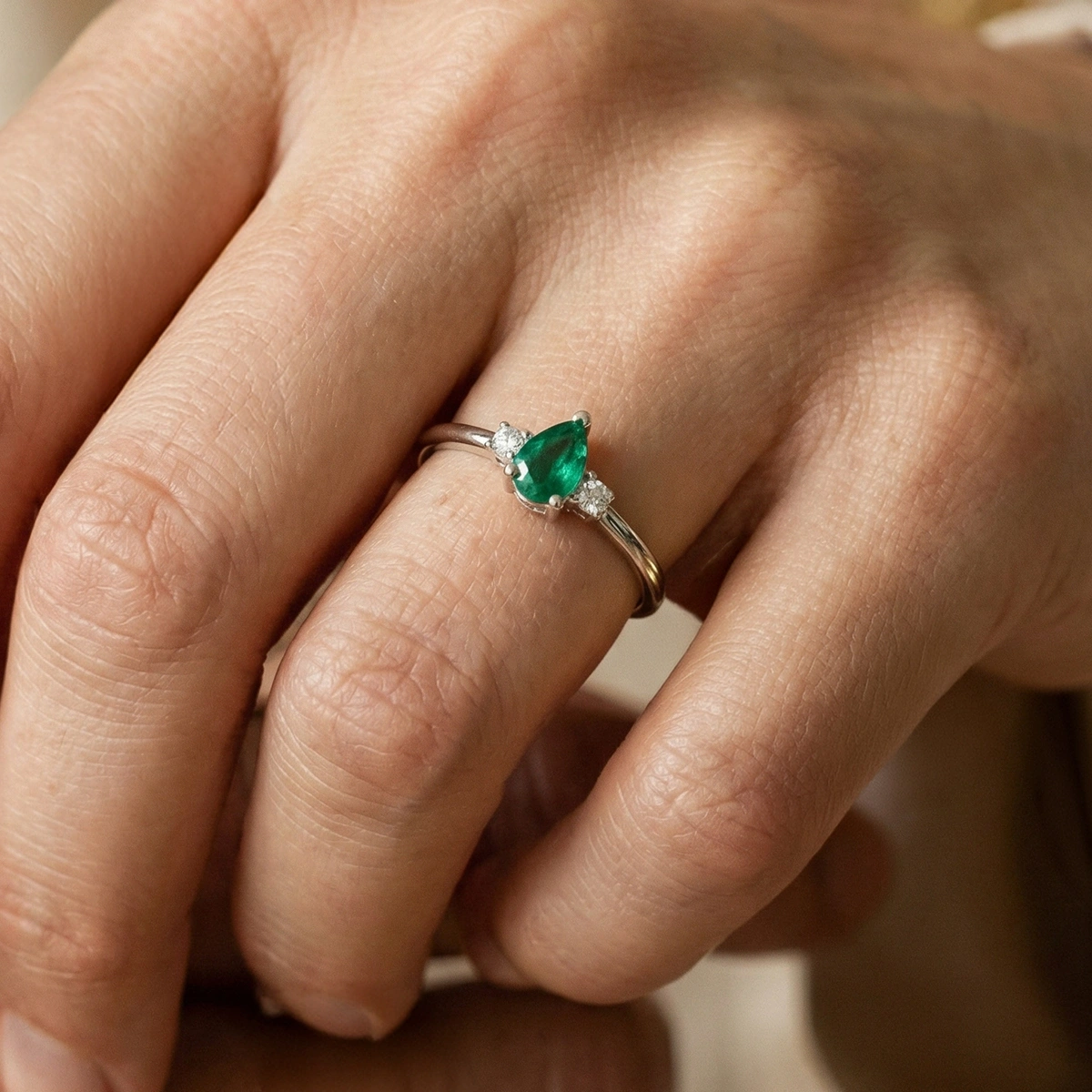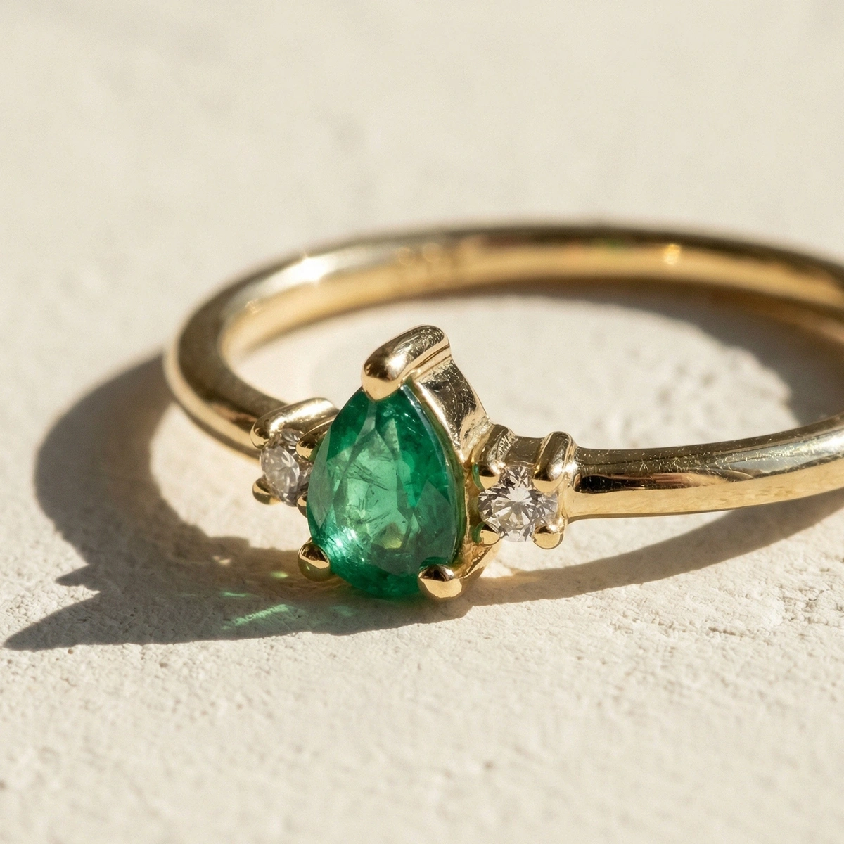 Minimal Zümrüt Yeşili Damla Taşlı Pırlanta Yüzük