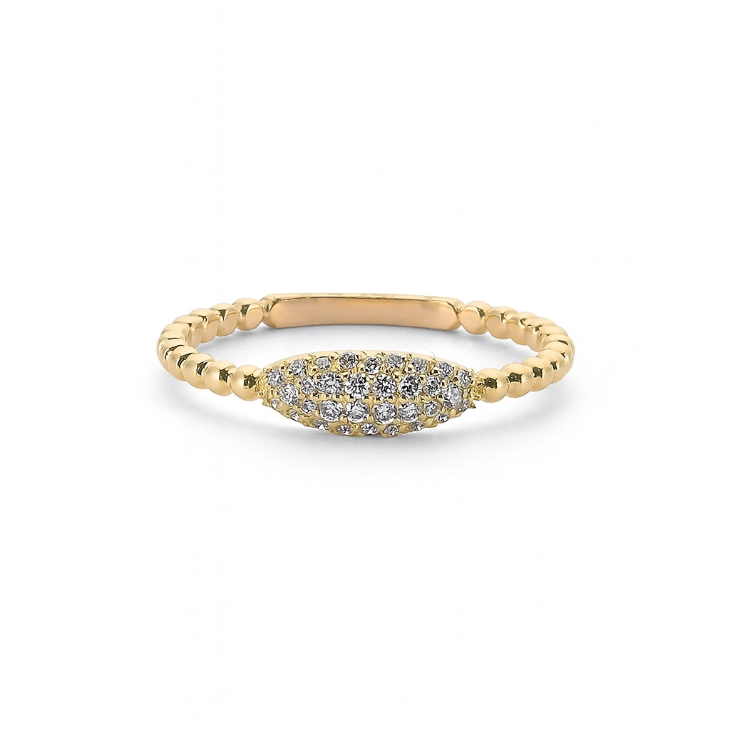 Oval Pave Toplu Altın Yüzük