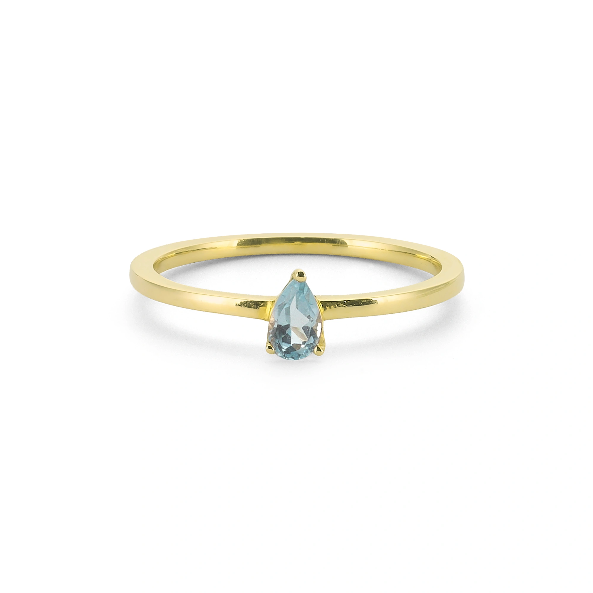 Renkli Buz Mavi Damla Taşlı Altın Yüzük