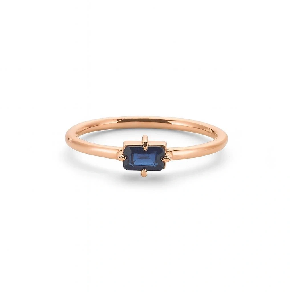 Renkli Koyu Mavi Baget Taşlı Altın Yüzük