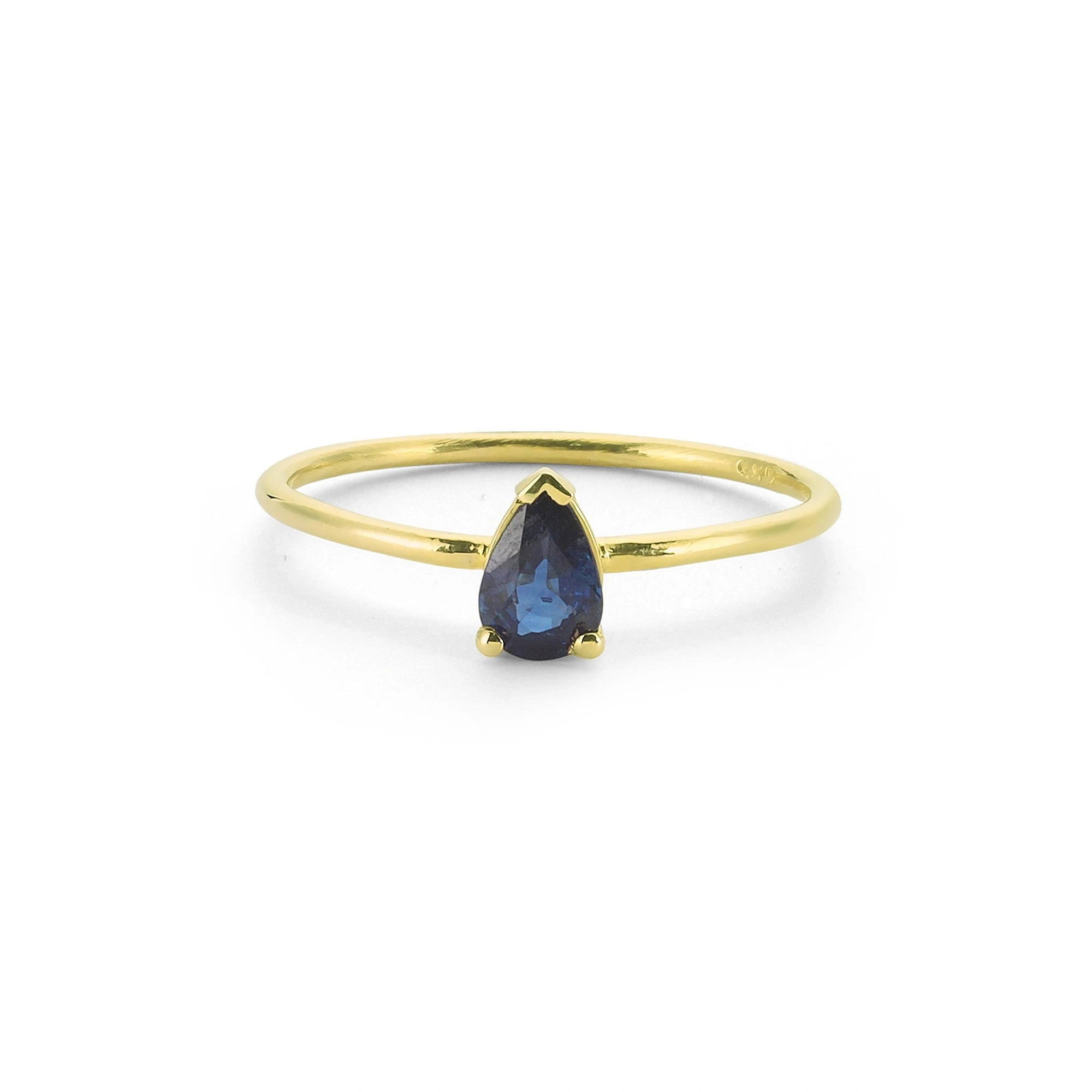 Renkli Koyu Mavi Damla Taşlı Altın Yüzük