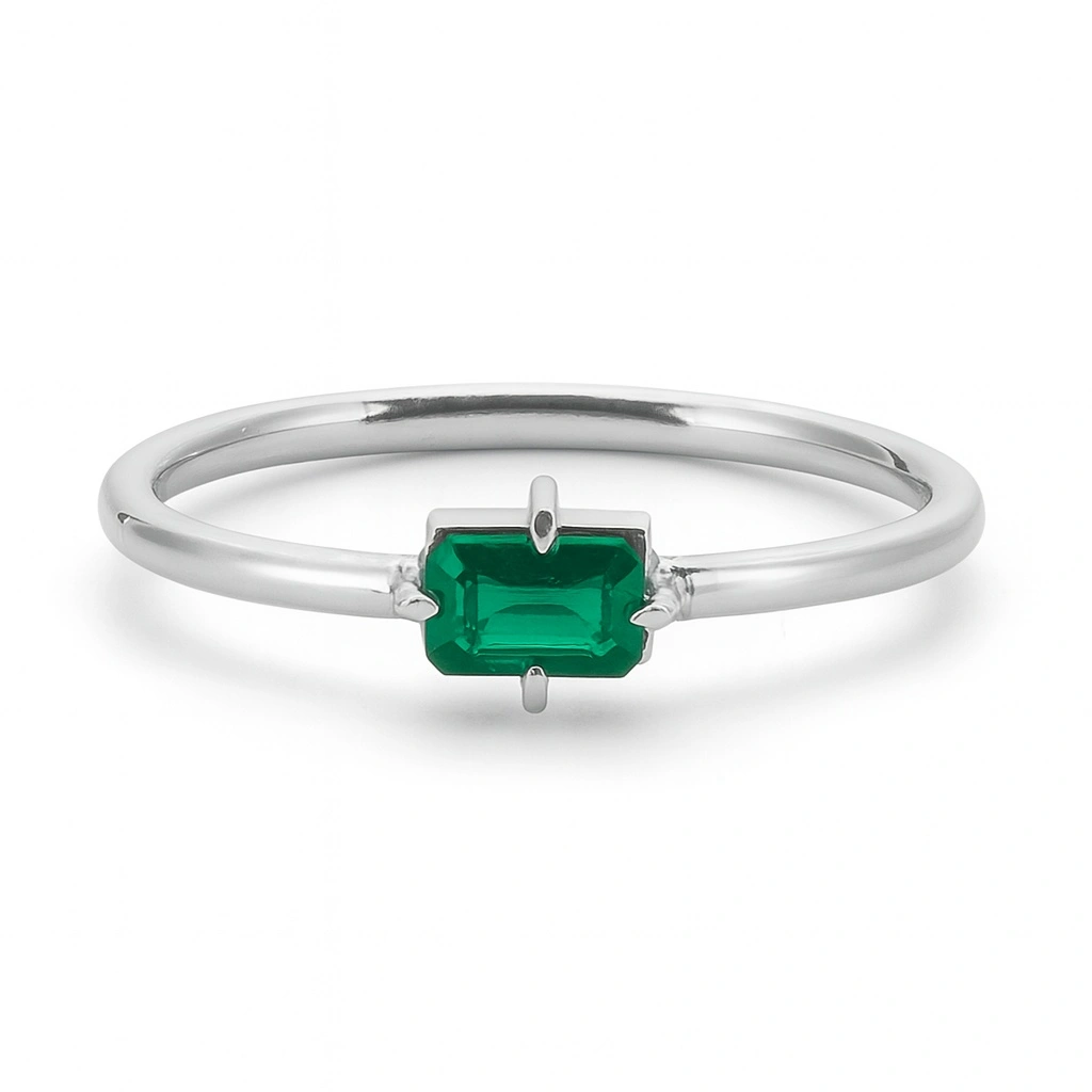 Renkli Koyu Yeşil Baget Taşlı Altın Yüzük