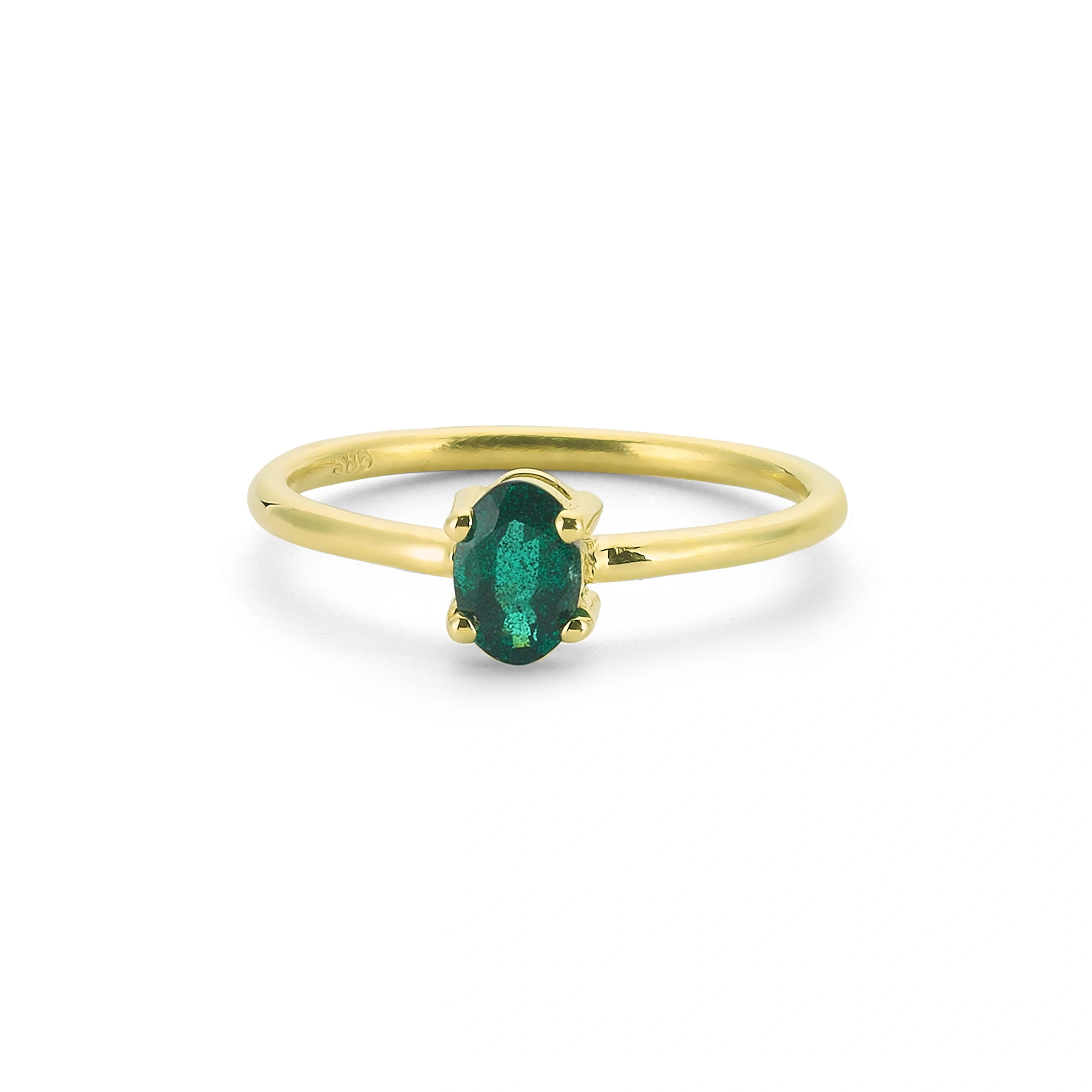 Renkli Koyu Yeşil Oval Taşlı Altın Yüzük