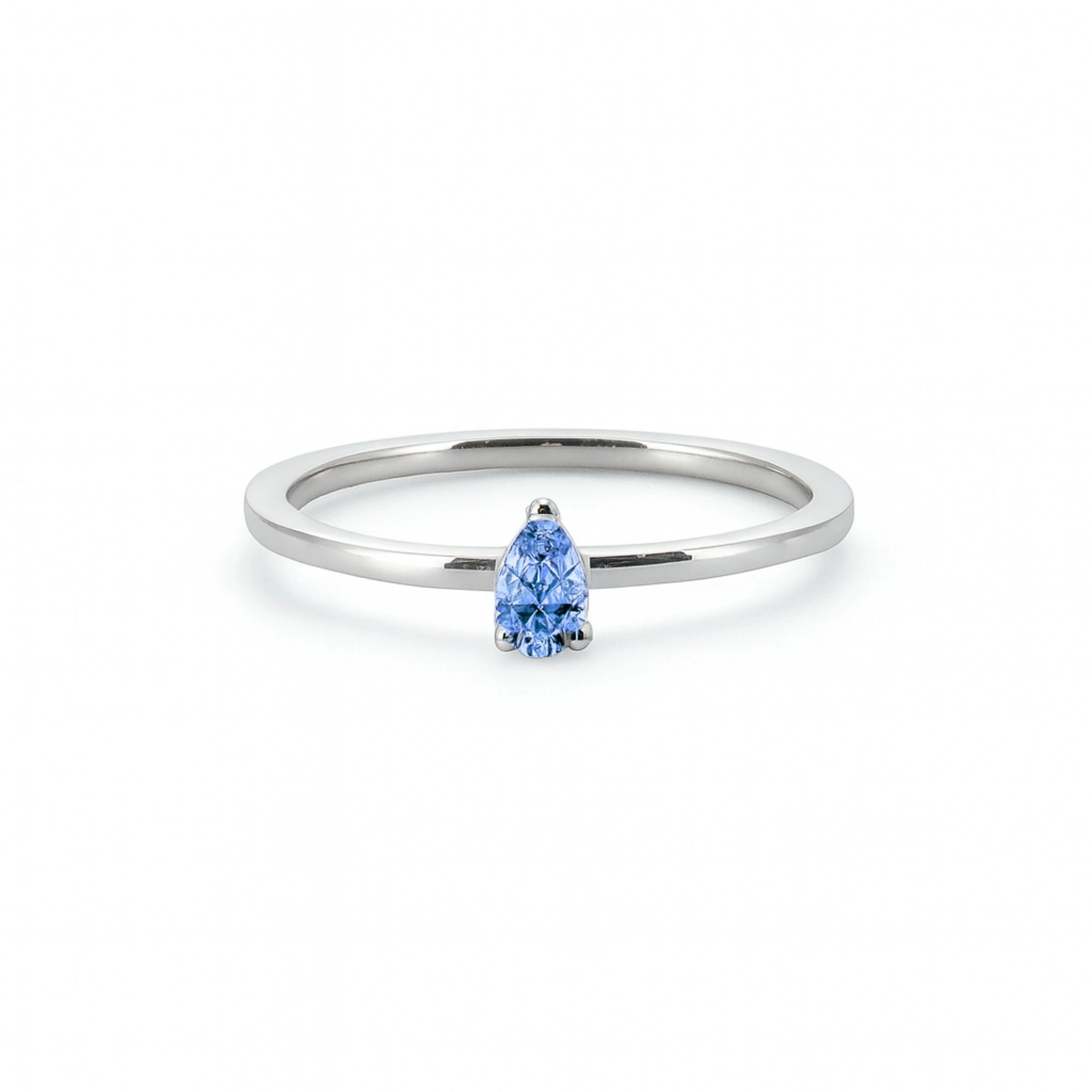 Renkli Mavi Damla Taşlı Altın Yüzük