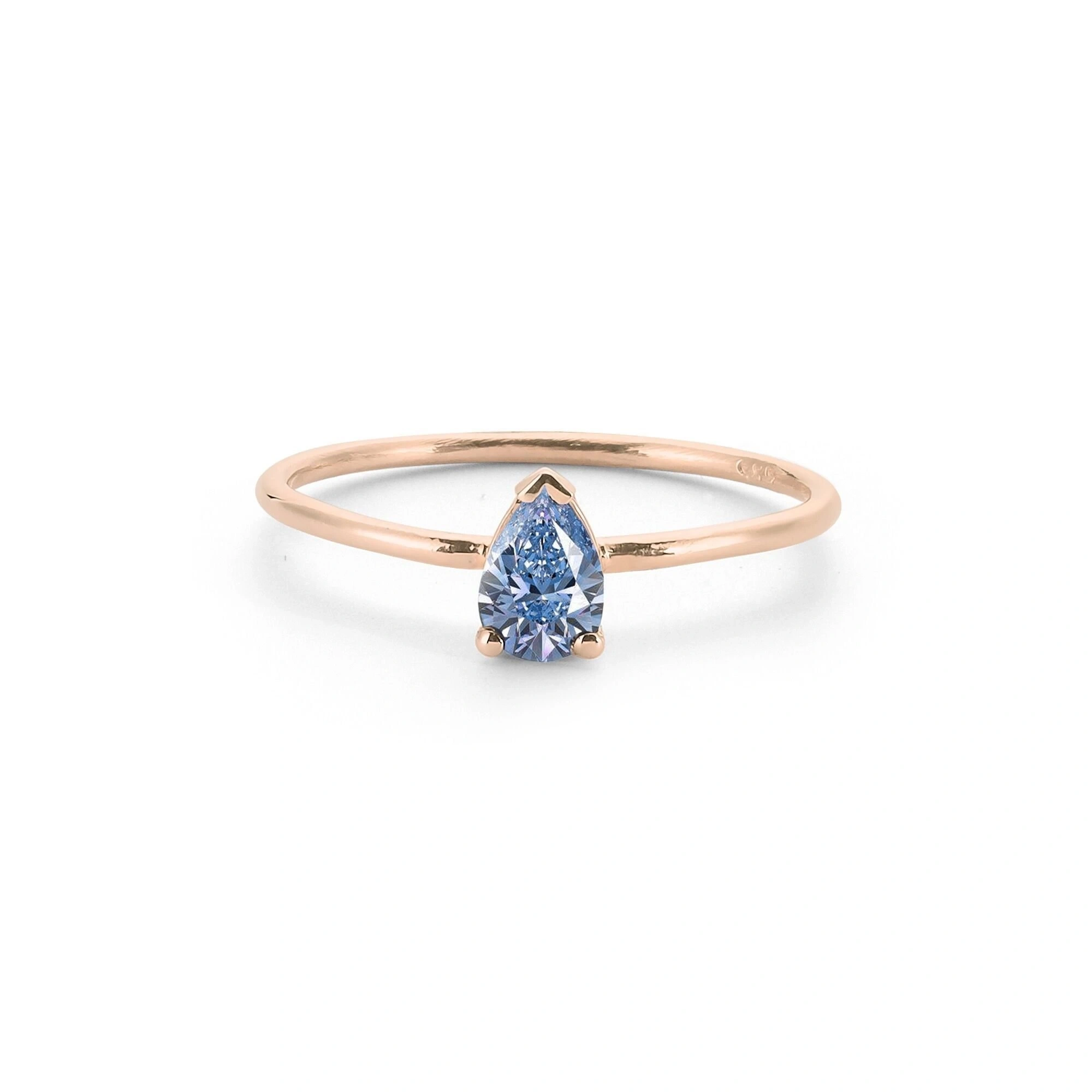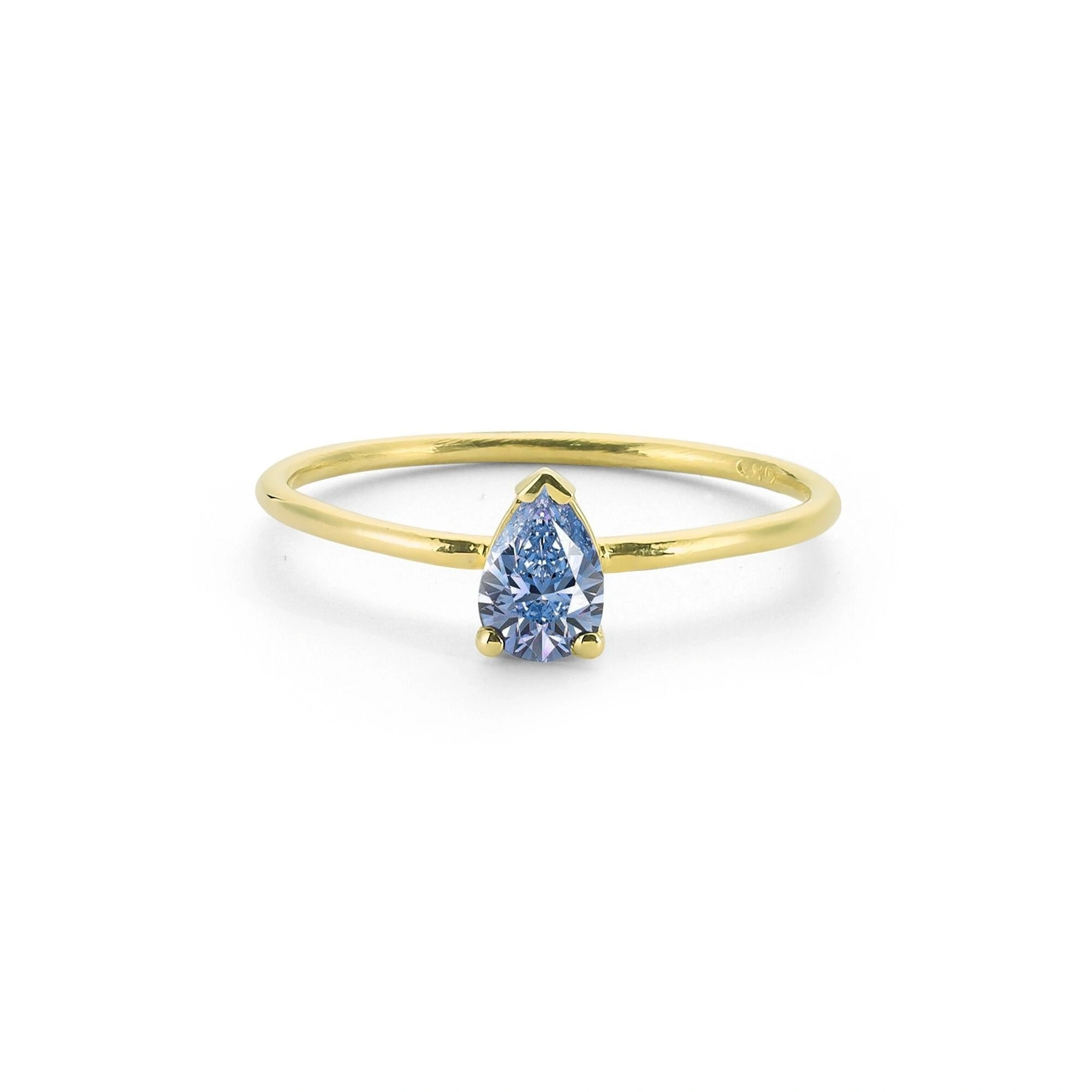 Renkli Mavi Damla Taşlı Altın Yüzük
