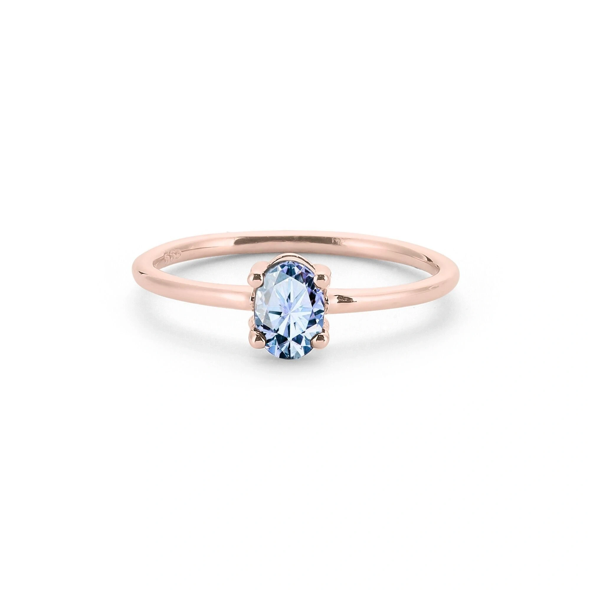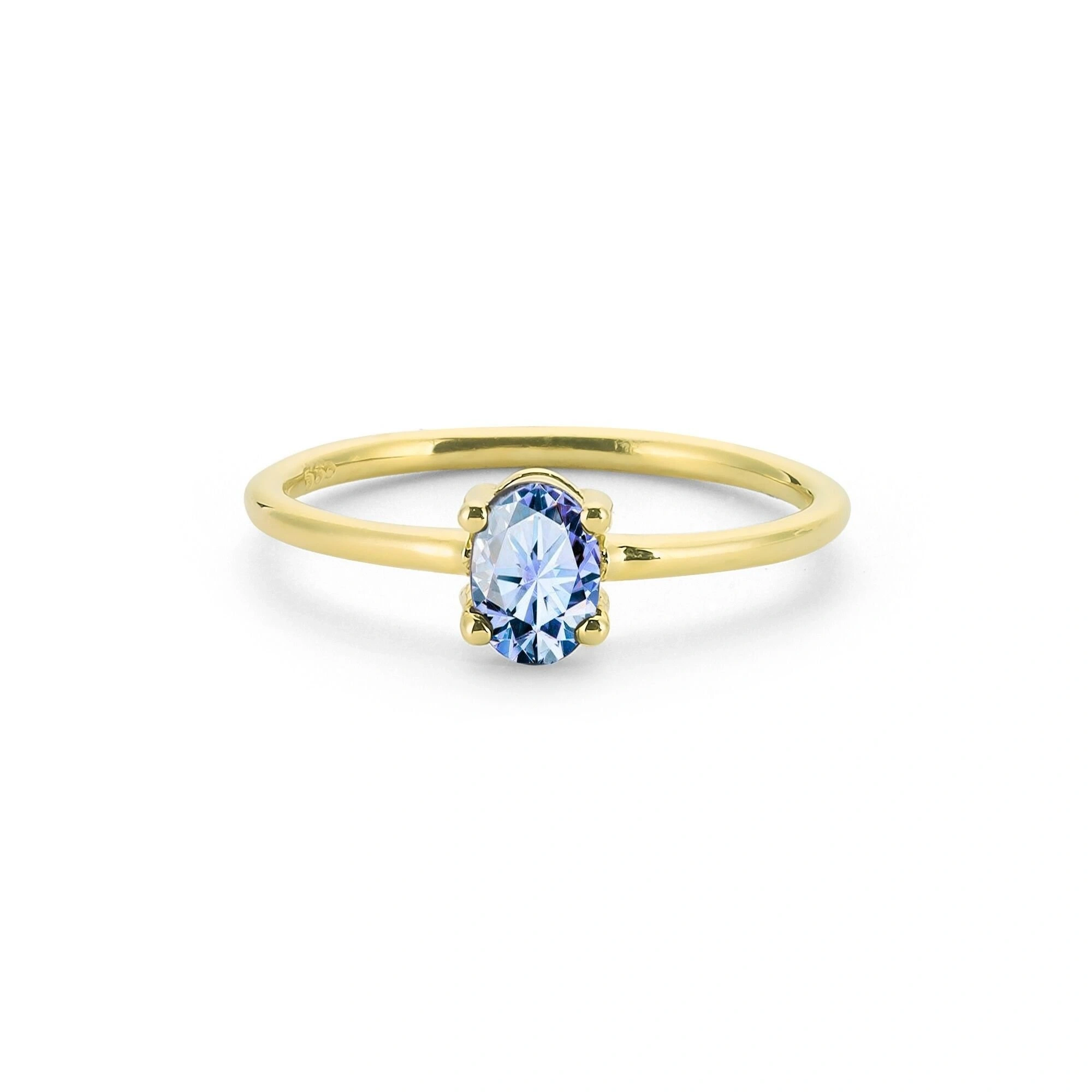 Renkli Mavi Oval Taşlı Altın Yüzük