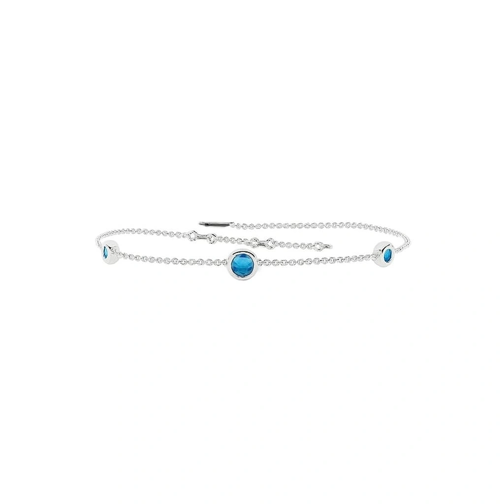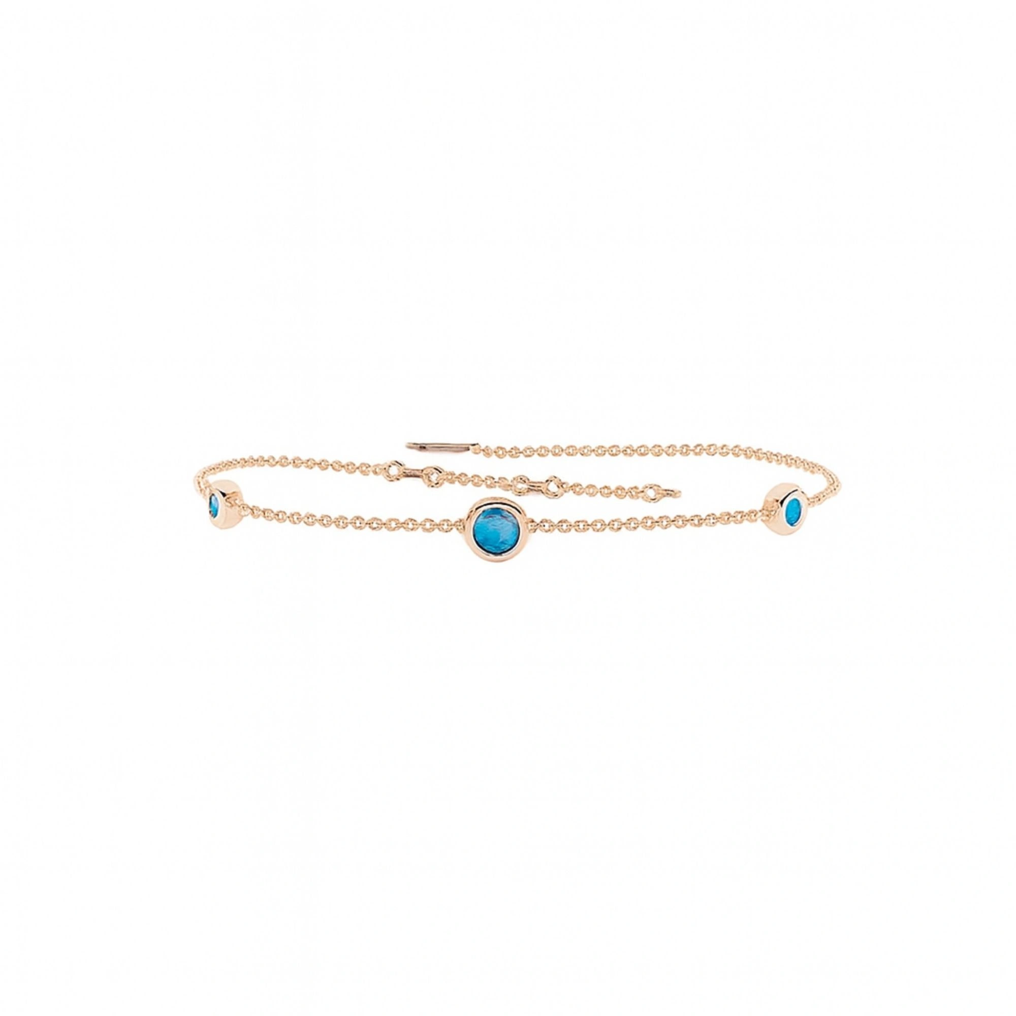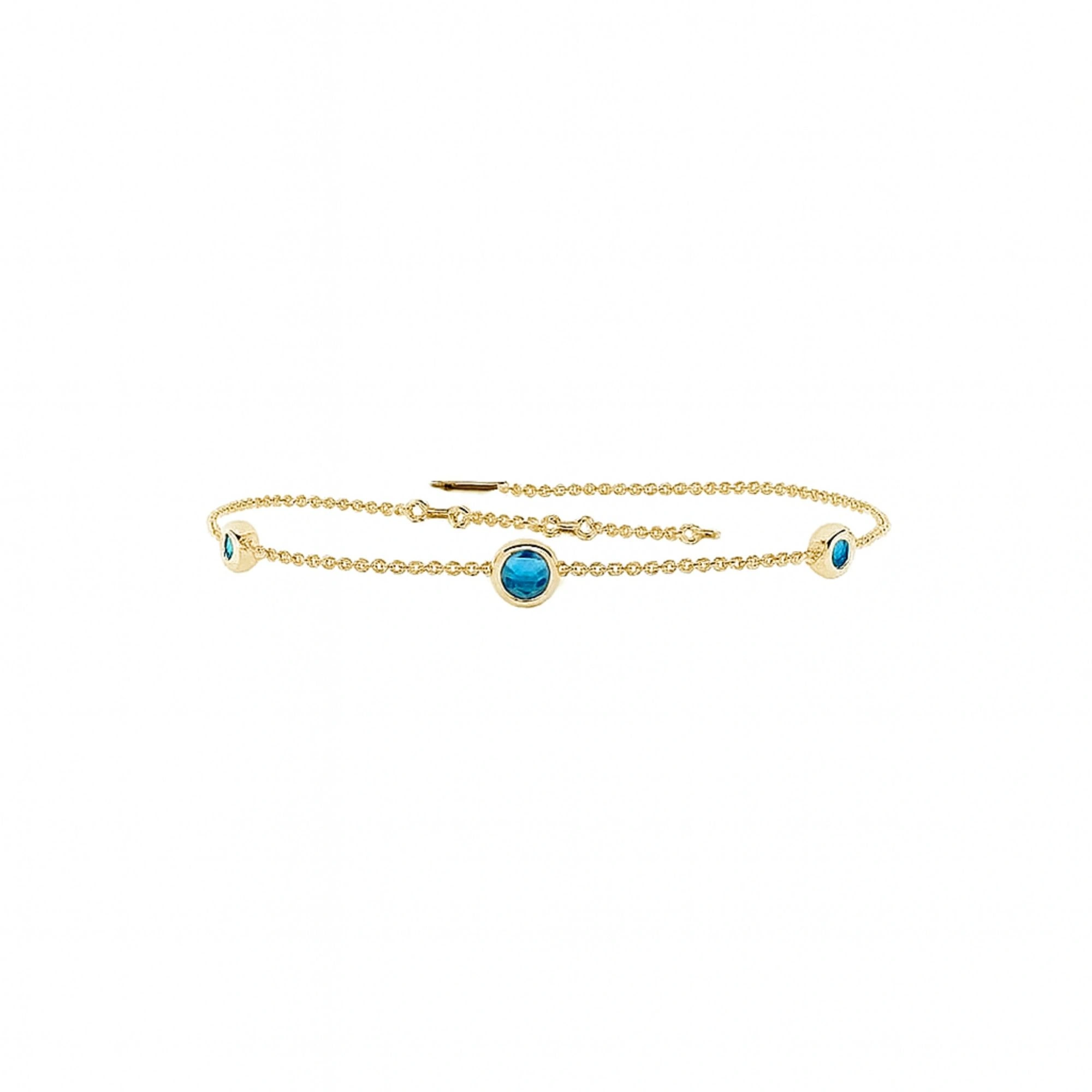 Renkli Mavi Üç Taşlı Altın Bileklik