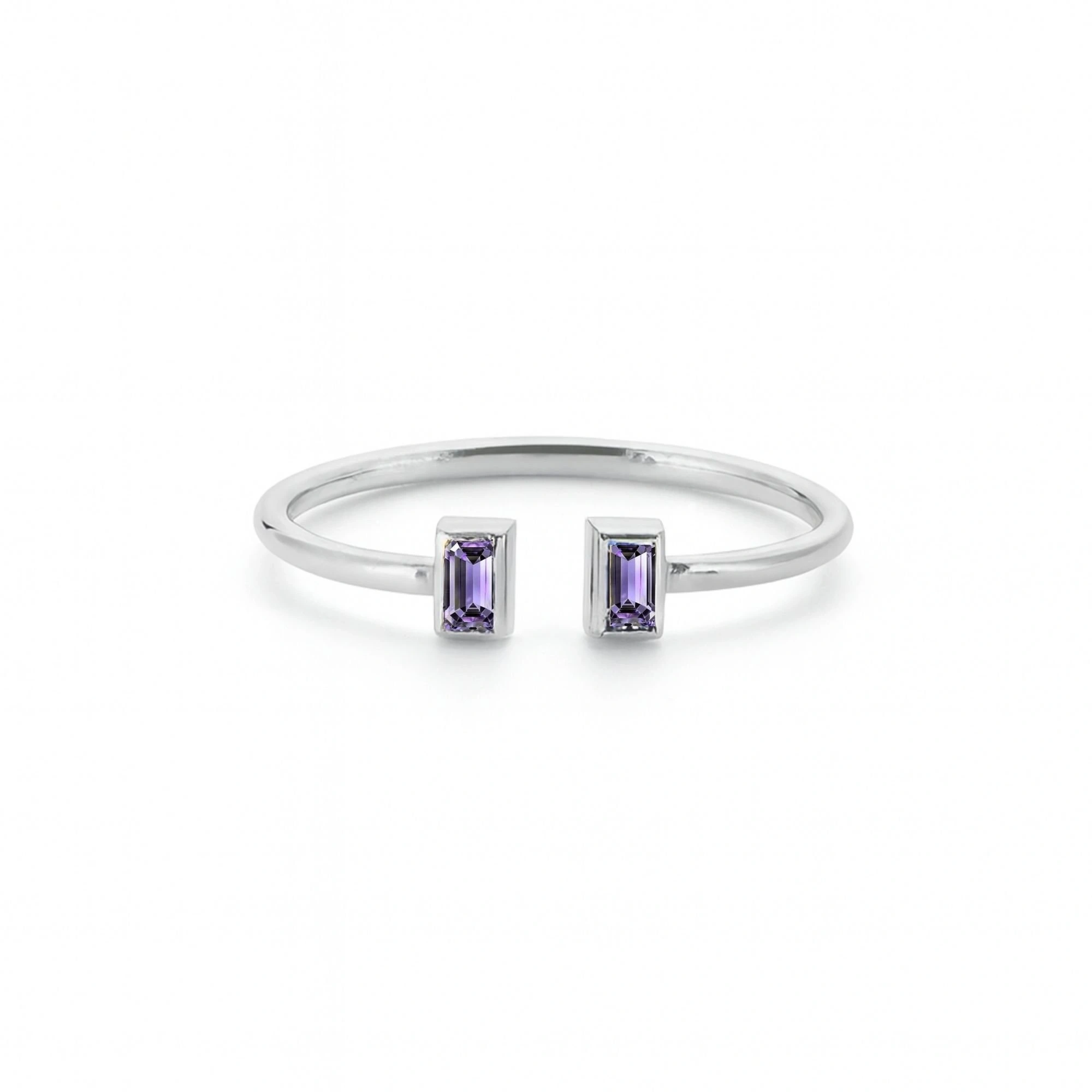 Renkli Mor Baget Taşlı Altın Yüzük