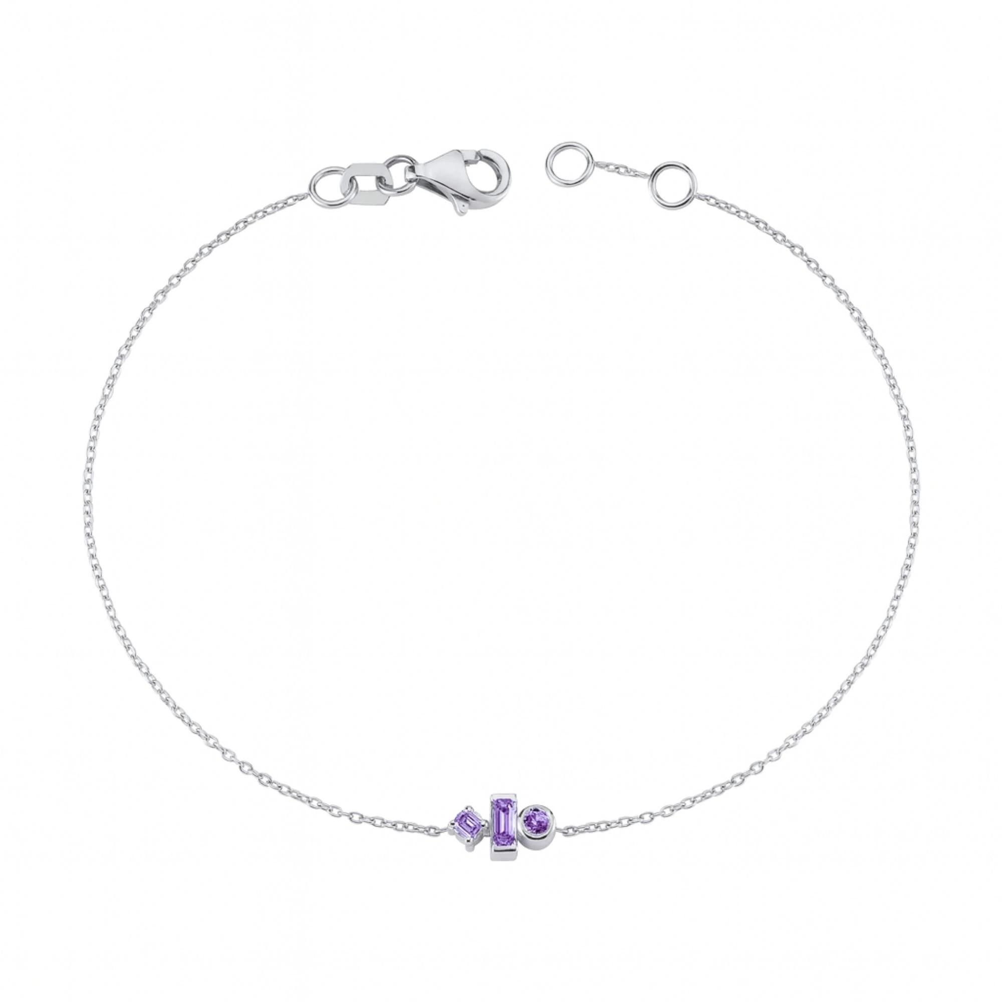 Renkli Mor Taşlı Modern Altın Bileklik