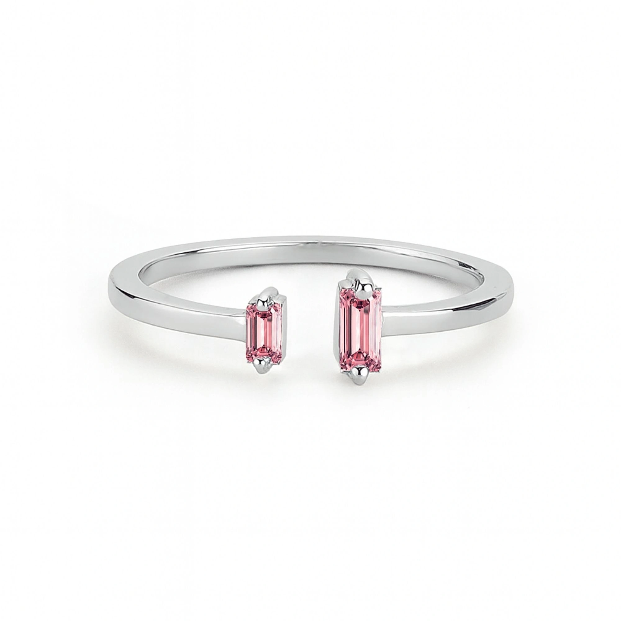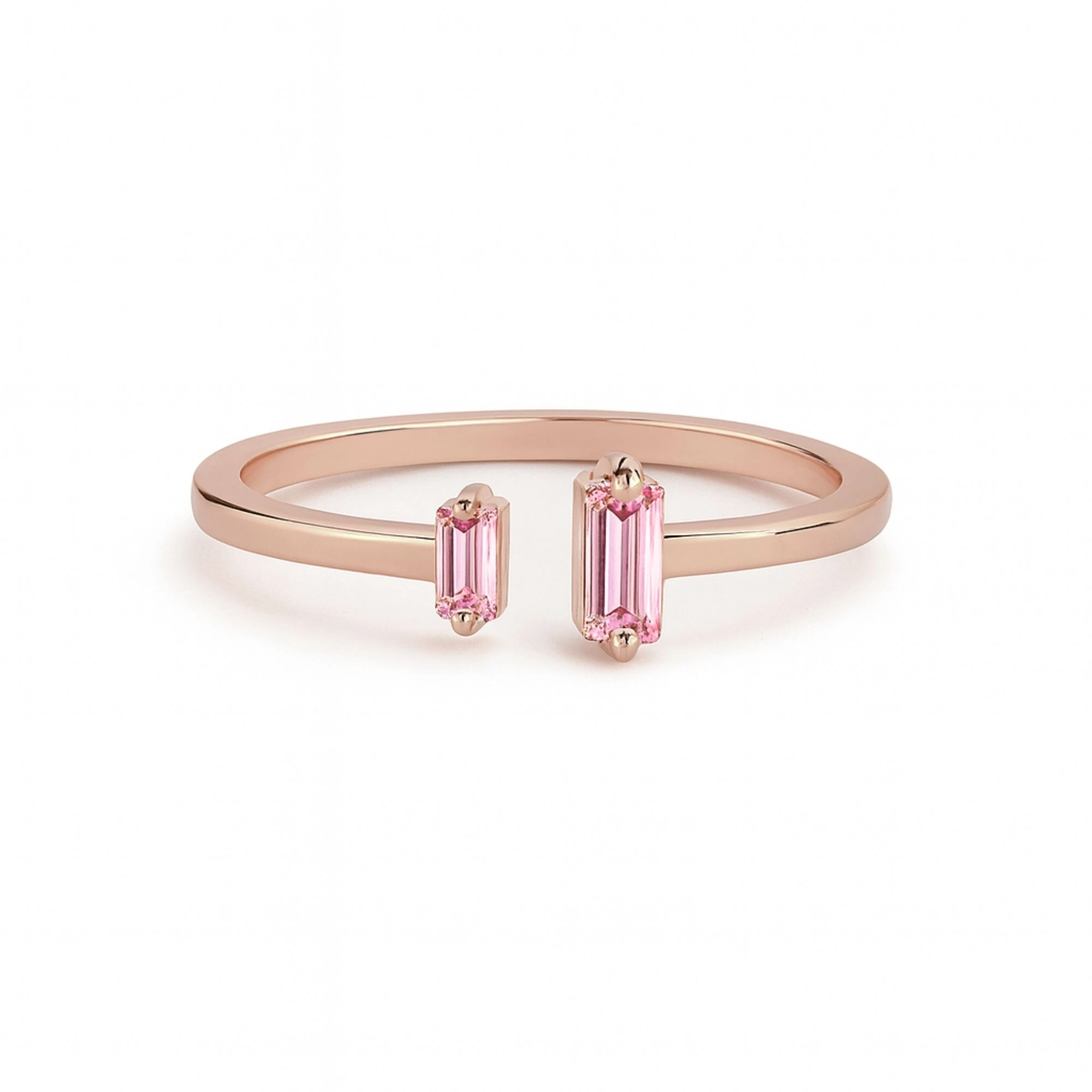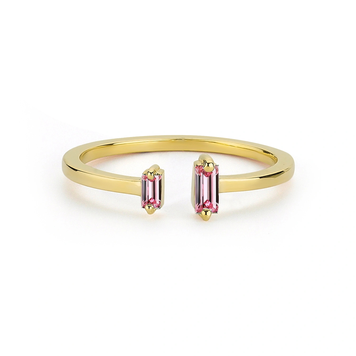 Renkli Pembe Baget Taşlı Altın Yüzük