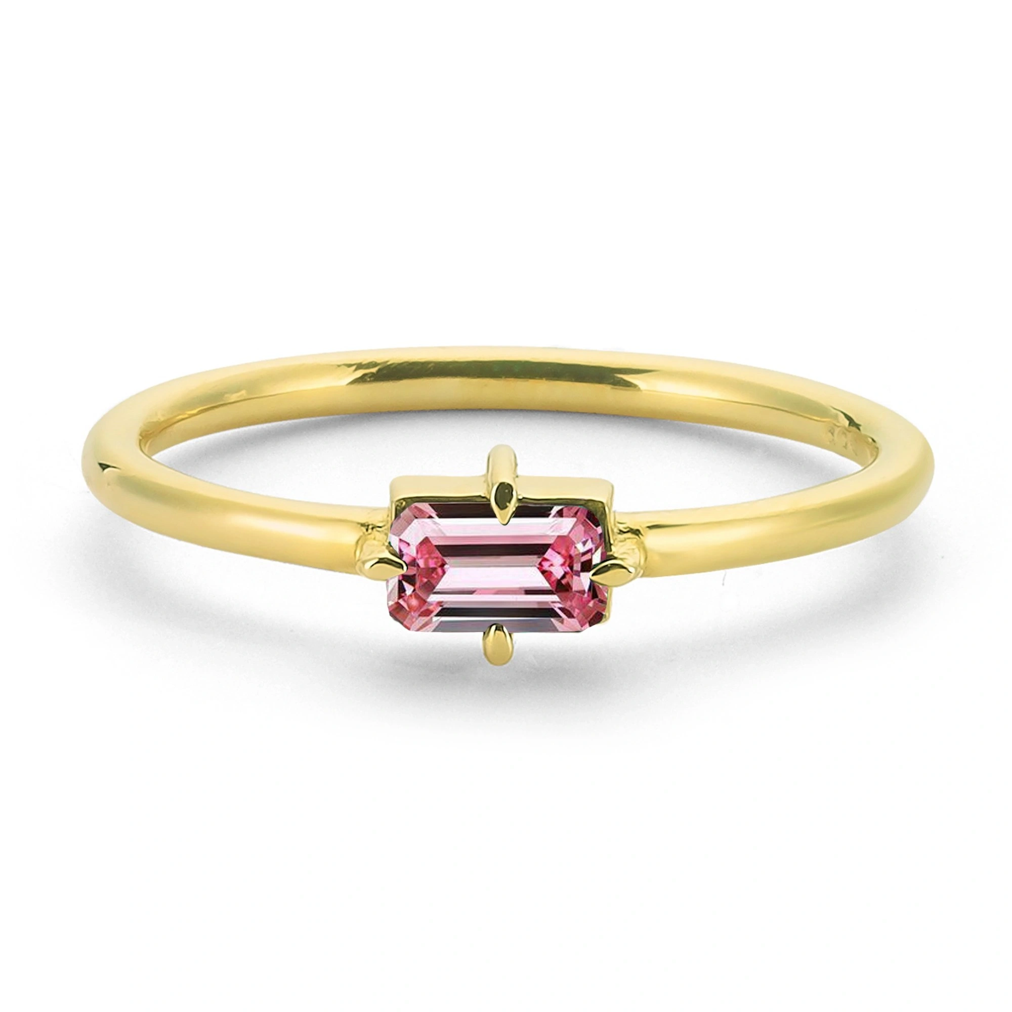 Renkli Pembe Baget Taşlı Altın Yüzük
