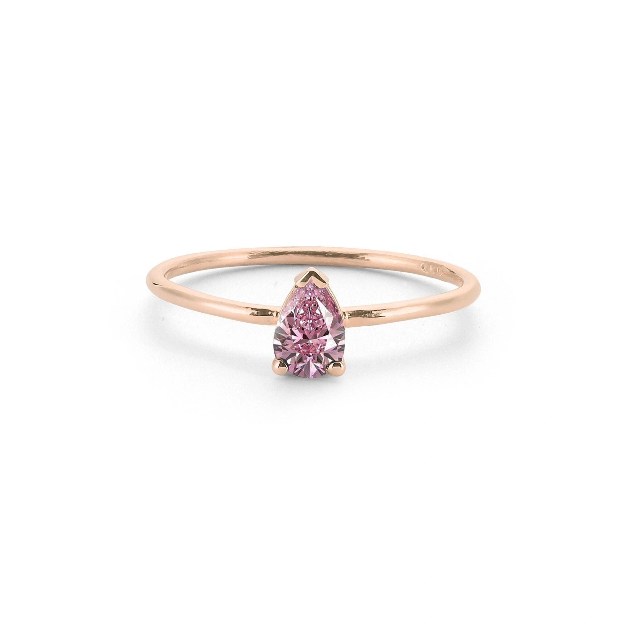 Renkli Pembe Damla Taşlı Altın Yüzük