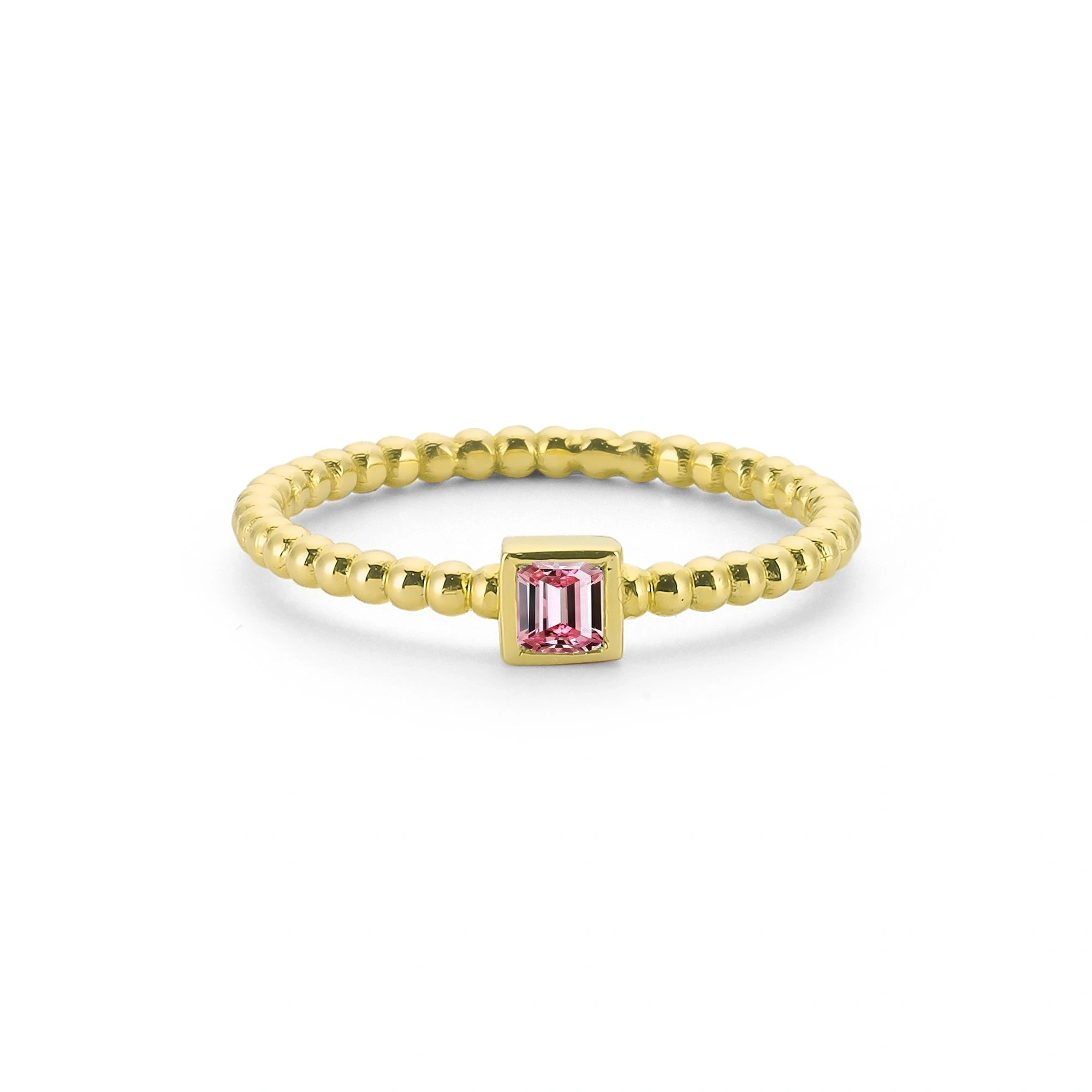 Renkli Pembe Prenses Taşlı Altın Yüzük