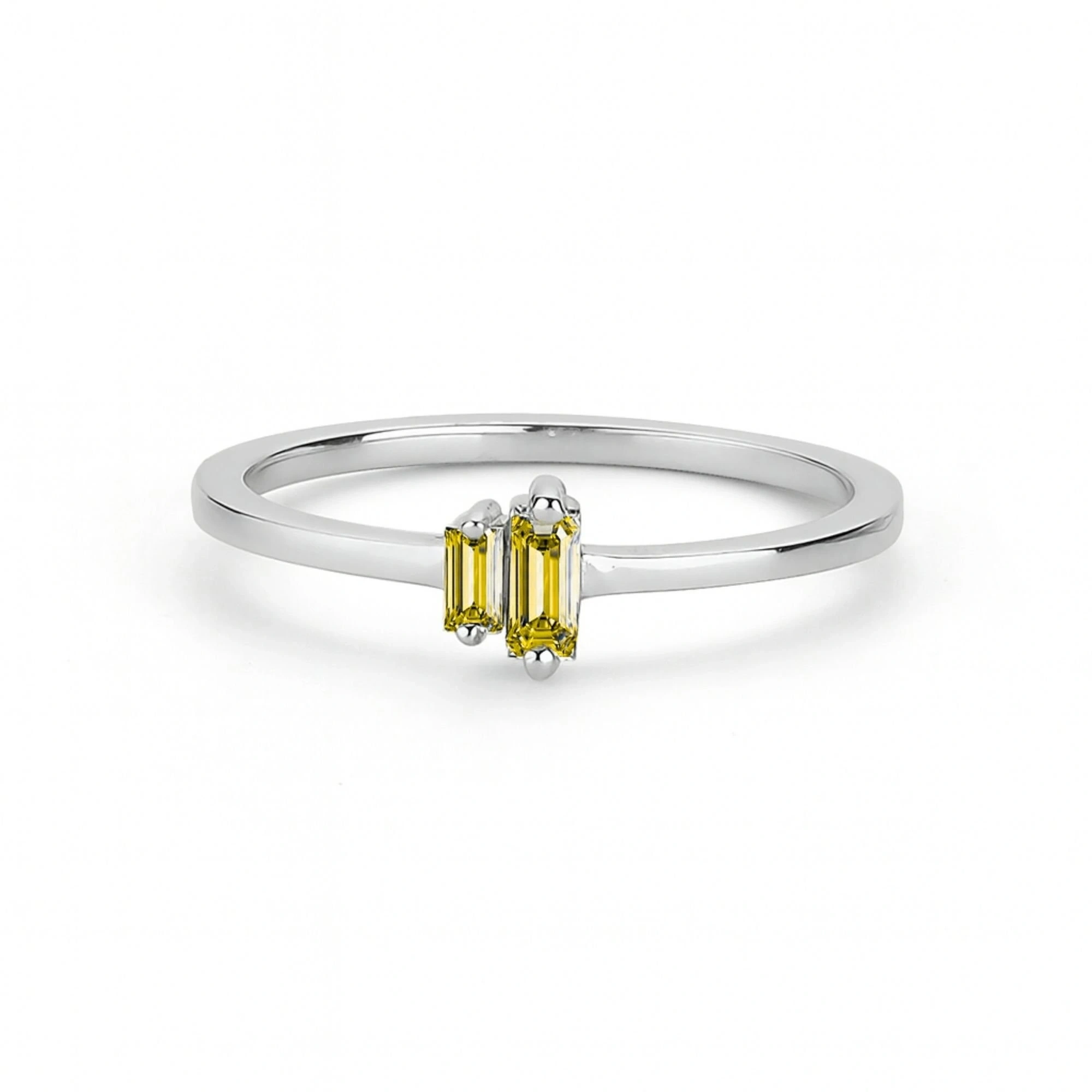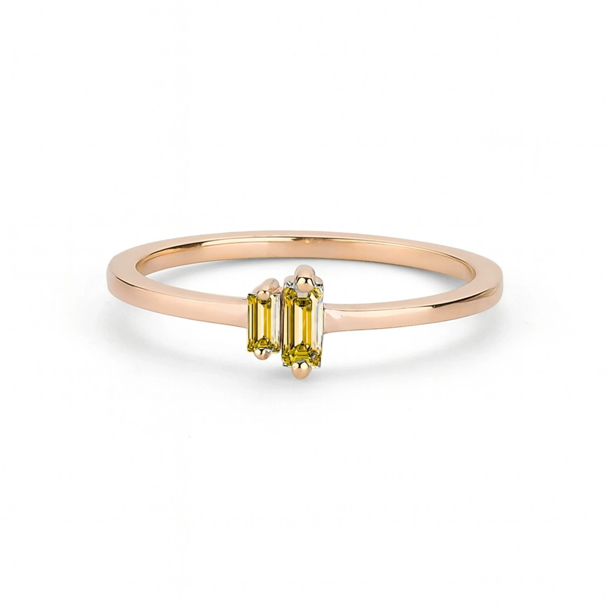 Renkli Sarı Baget Taşlı Altın Yüzük
